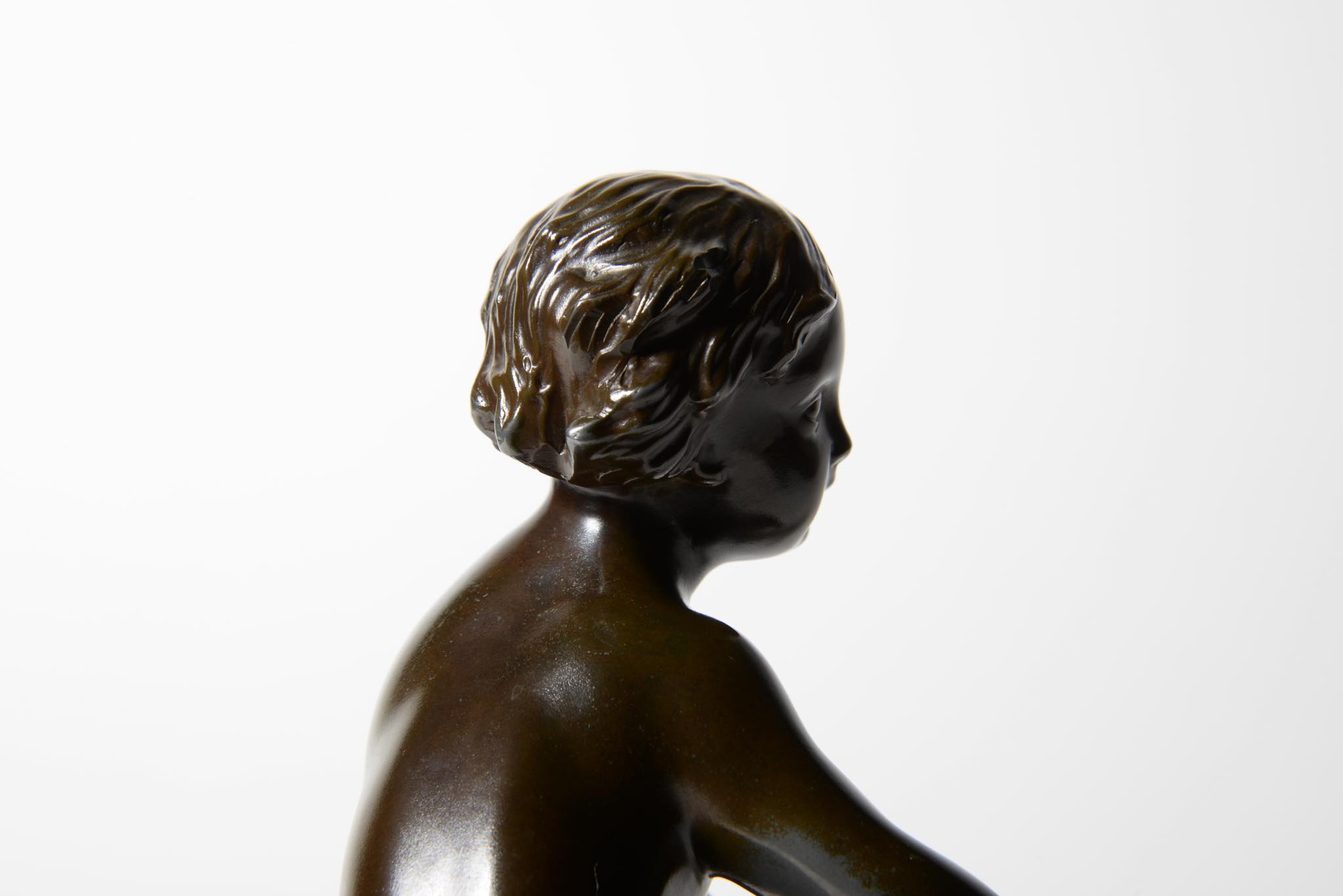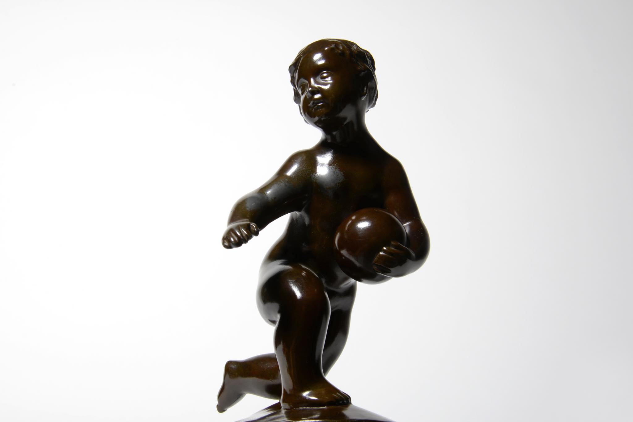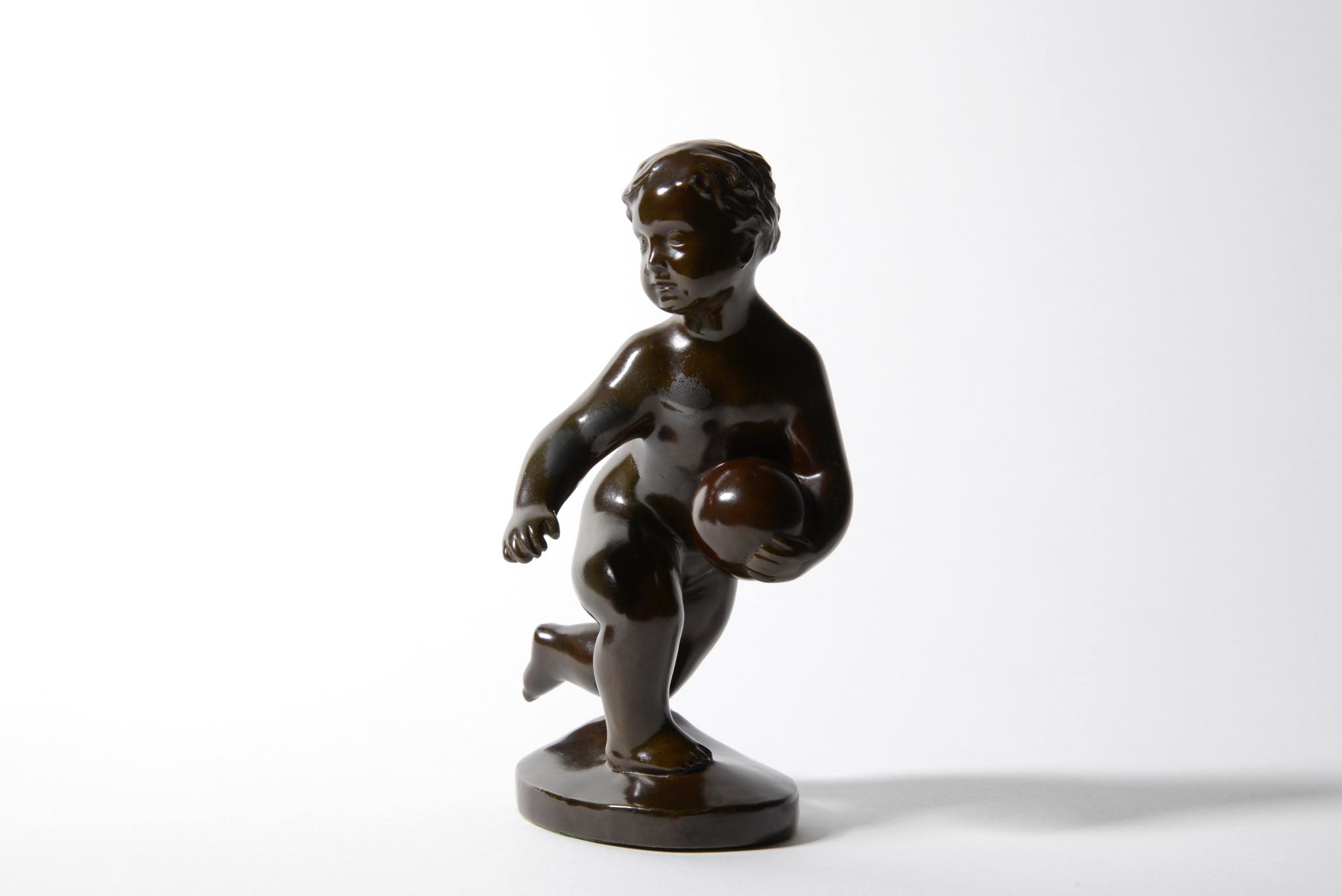 Ib Just Andersen/ユスト・アナセンによるボールを持った女の子 "Pige med bold" のフィギュアです。ディスコメタル製、1930年代頃に作られたものでしょう。胸部や鼻先に若干の擦れがありますが、きれいな状態です。