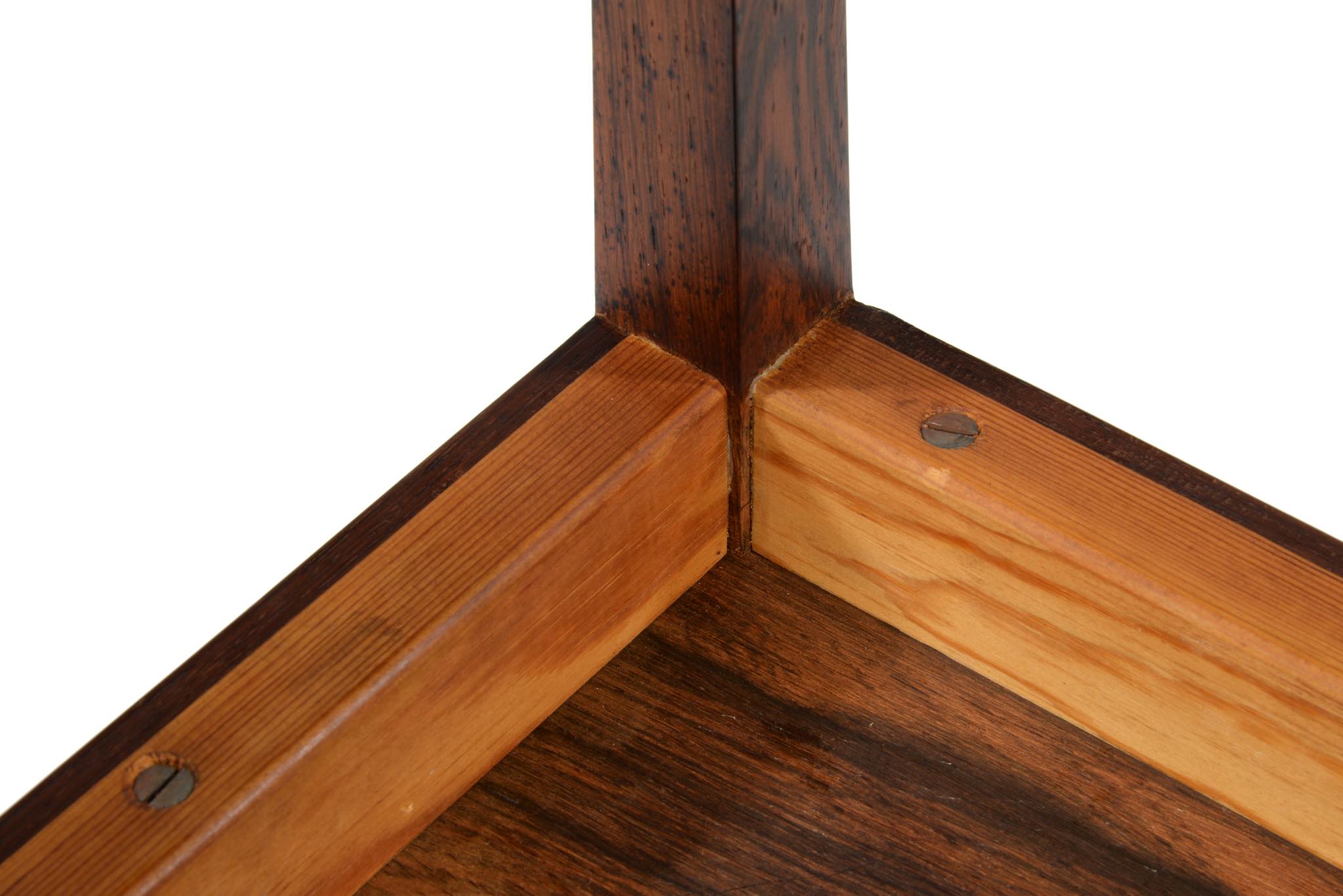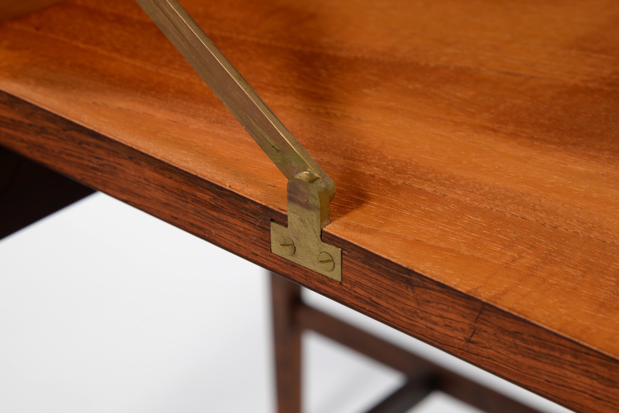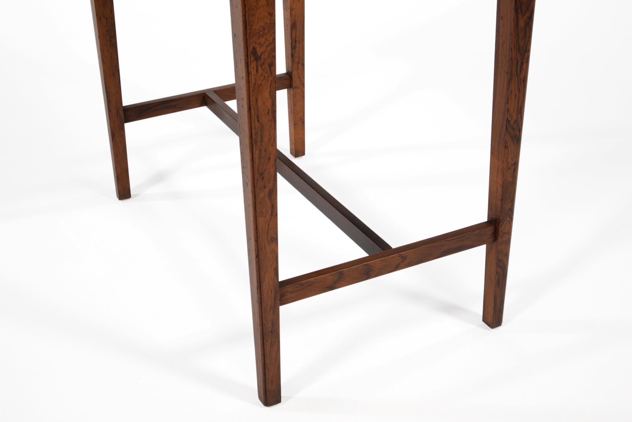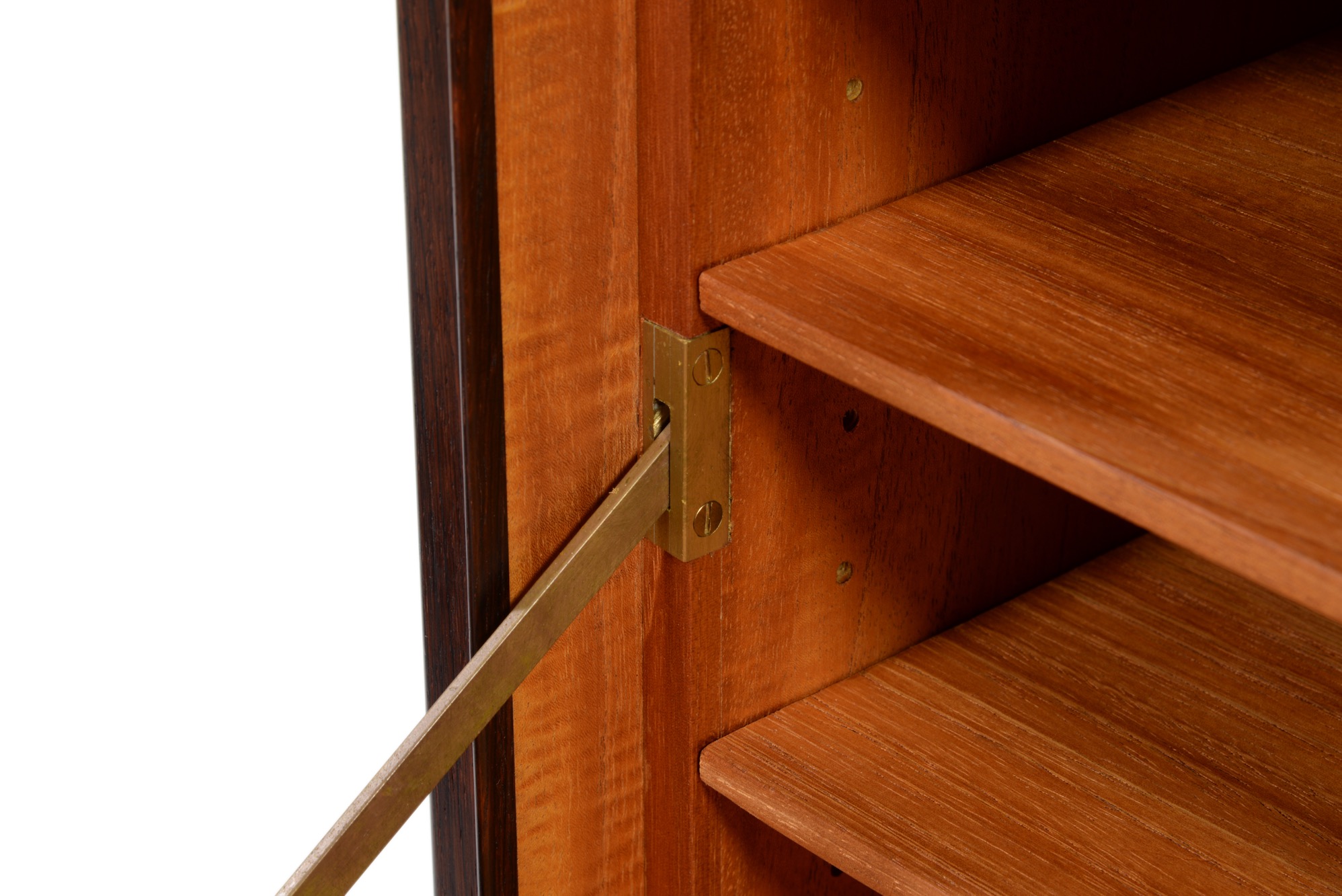 20世紀デンマーク家具デザイン界の礎を築いたデザイナー兼キャビネットメーカーのFrits Henningsen/フリッツ・ヘニングセンによる小さなキャビネットです。具体的な用途はわかりません。ブラジル原産と思しき良質なローズウッド材を用いており、内部はマホガニー材が使われています。棚板は3枚付属し、位置を変えることができます。オリジナルのキーが備わり、コンディションは良好です。