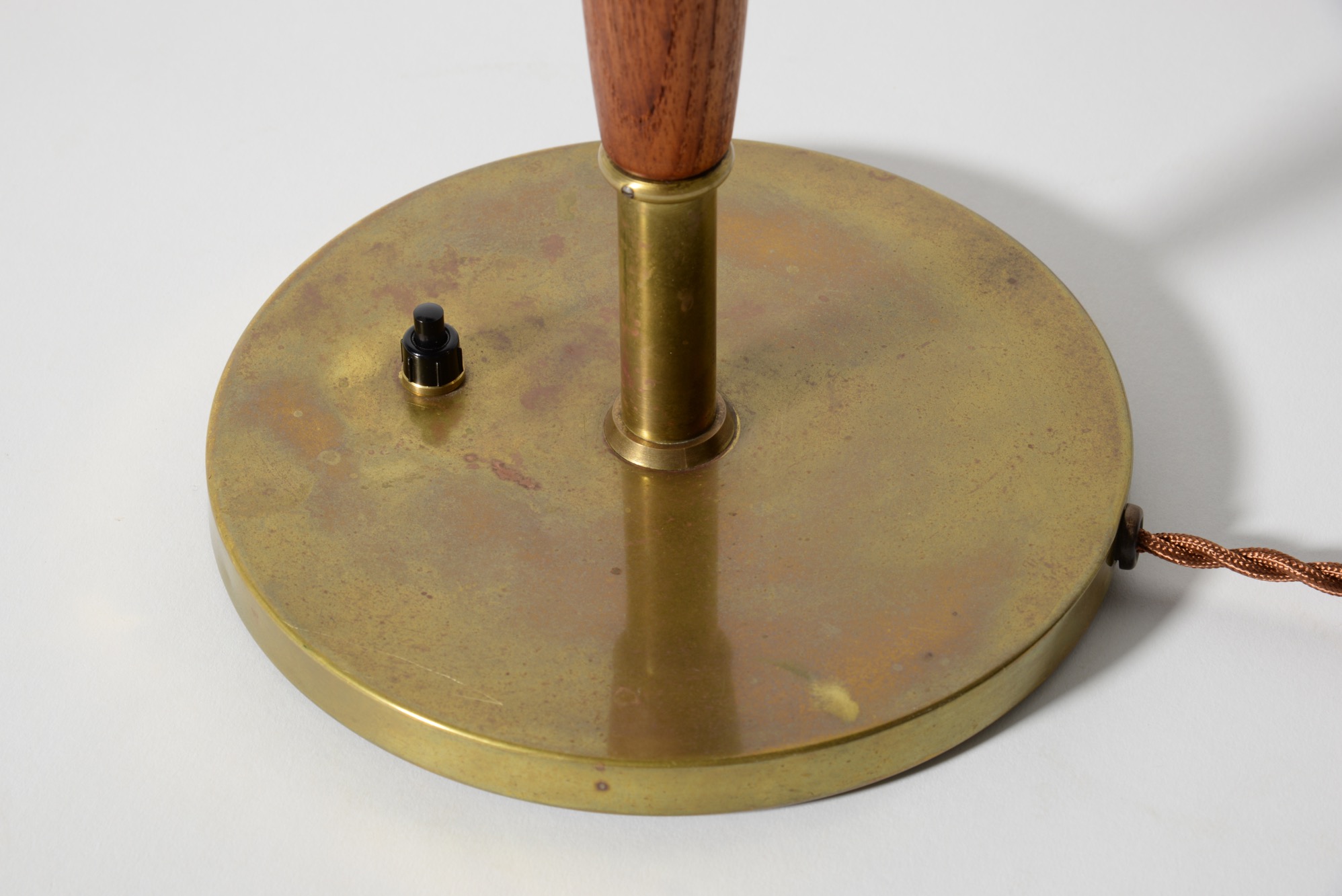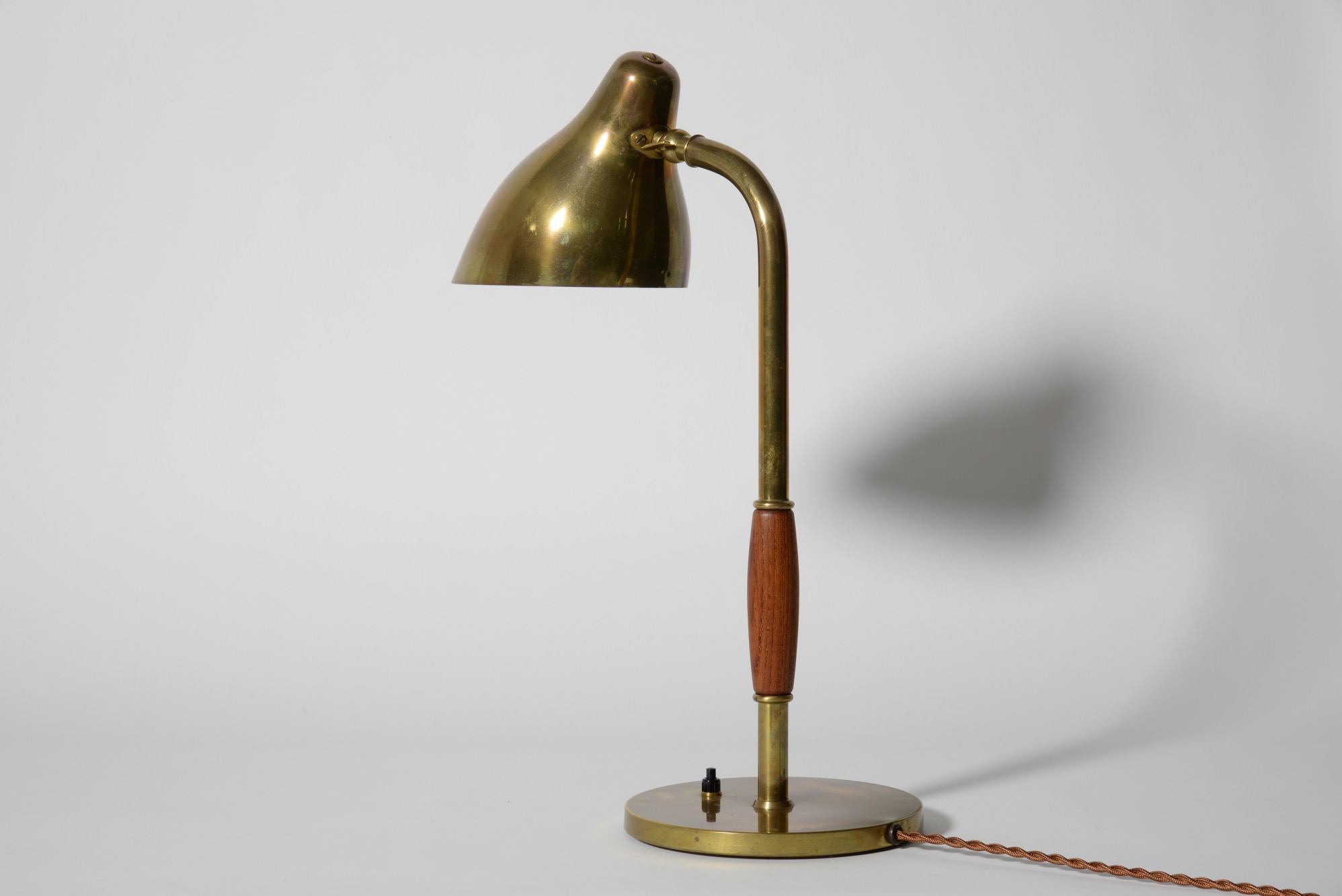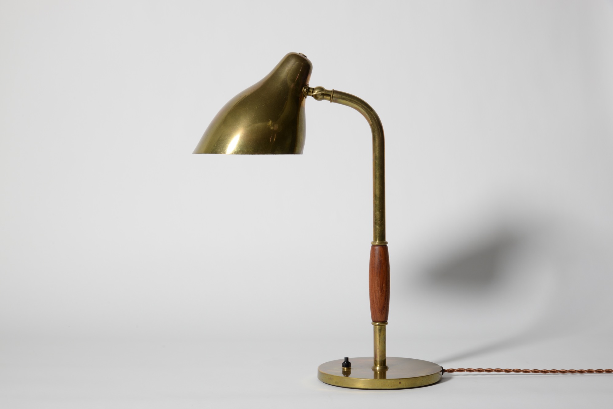 デンマークを代表する建築家、Vilhelm Lauritzen/ヴィルヘルム・ラウリッツェンによってデザインされたテーブルランプです。真鍮の本体にチーク材のハンドルが備わるタイプで、1940年代頃に作られたものでしょう。