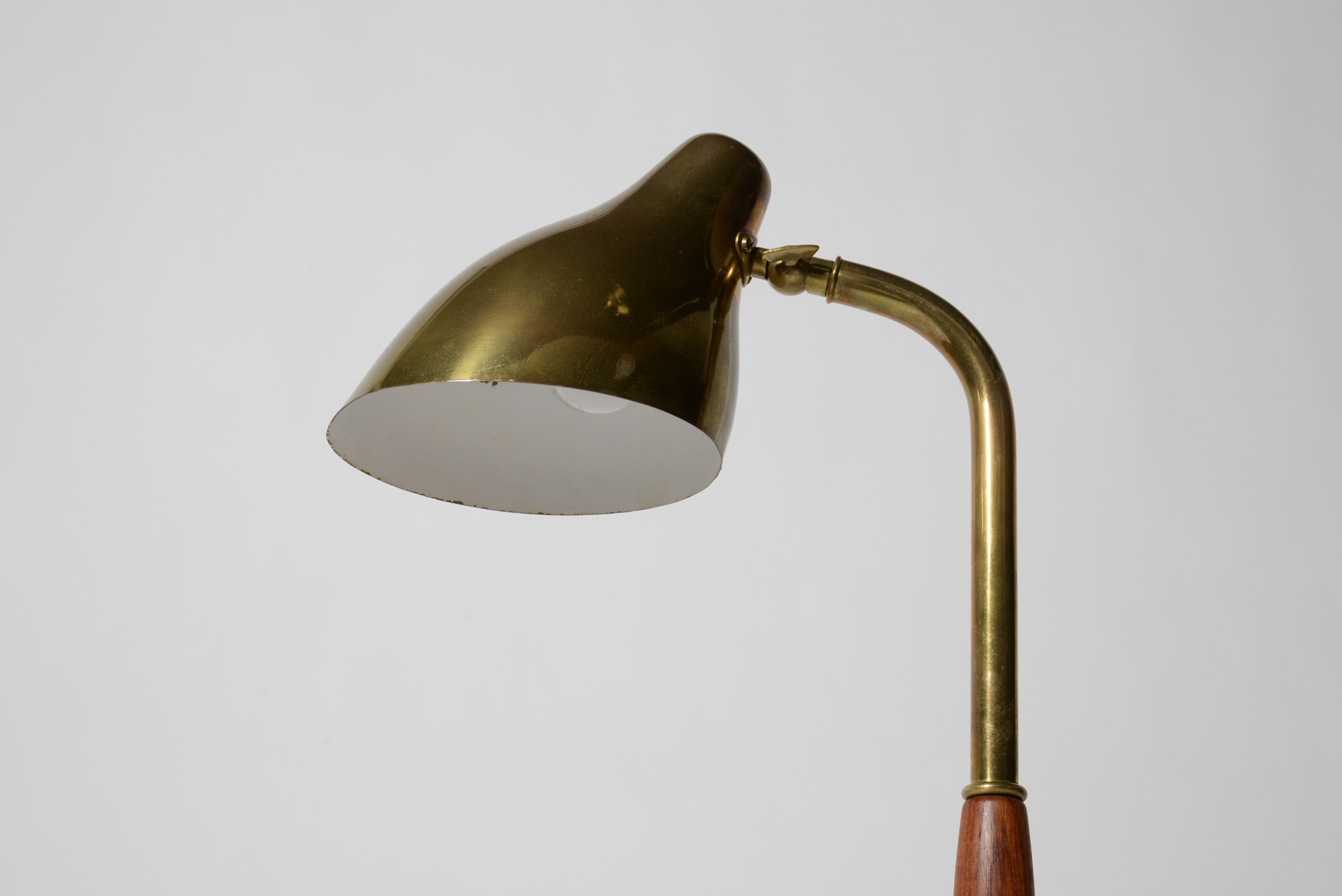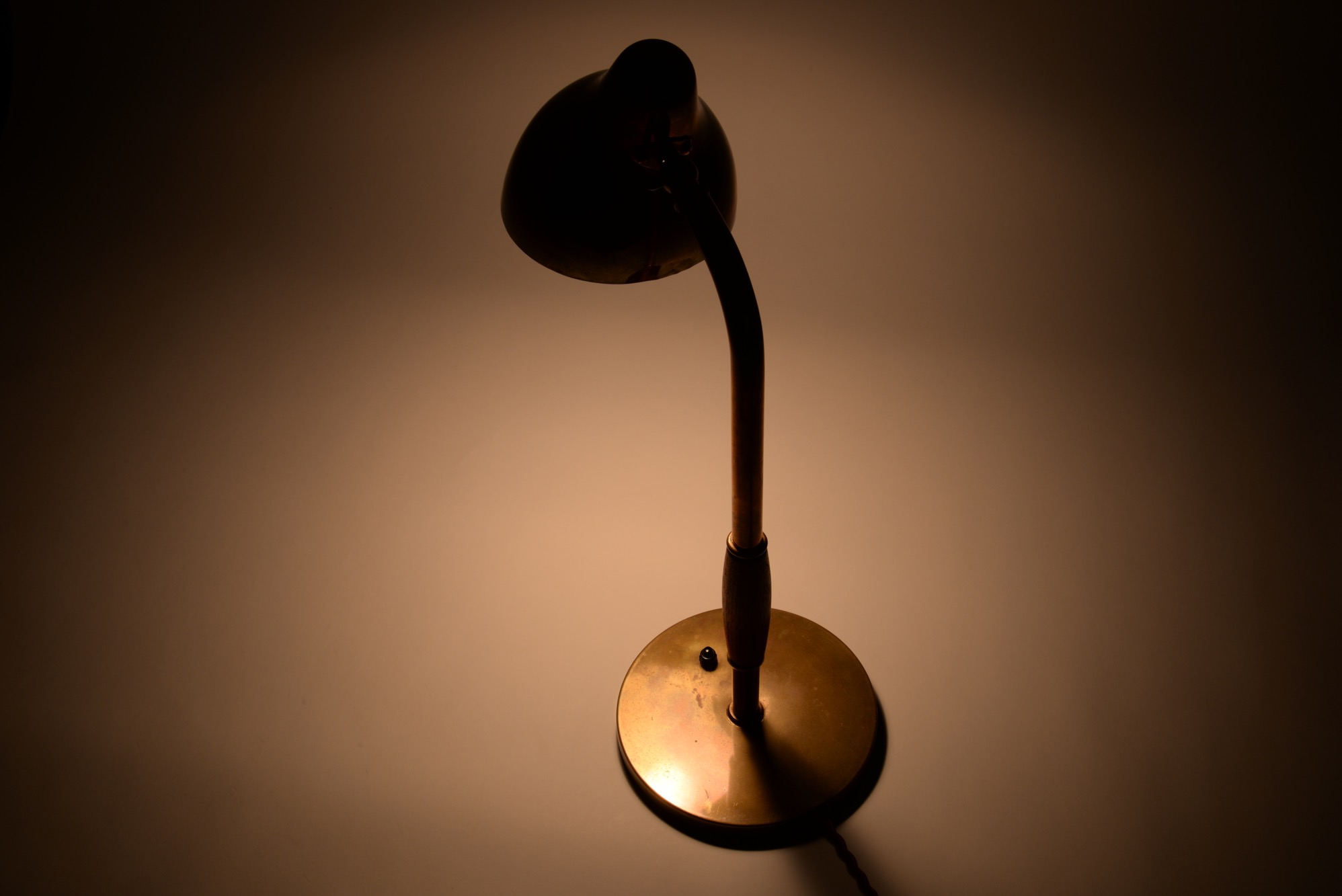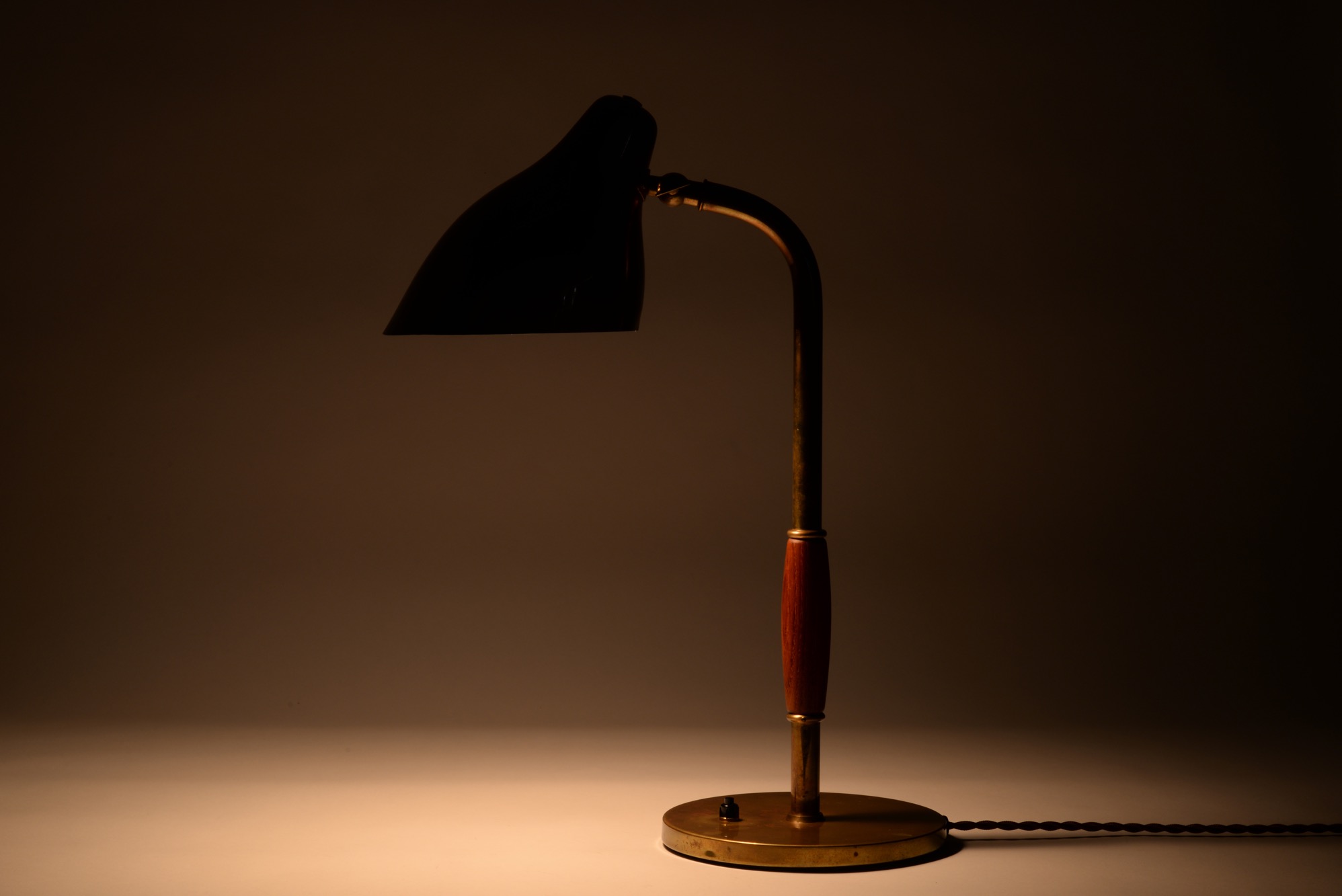デンマークを代表する建築家、Vilhelm Lauritzen/ヴィルヘルム・ラウリッツェンによってデザインされたテーブルランプです。真鍮の本体にチーク材のハンドルが備わるタイプで、1940年代頃に作られたものでしょう。