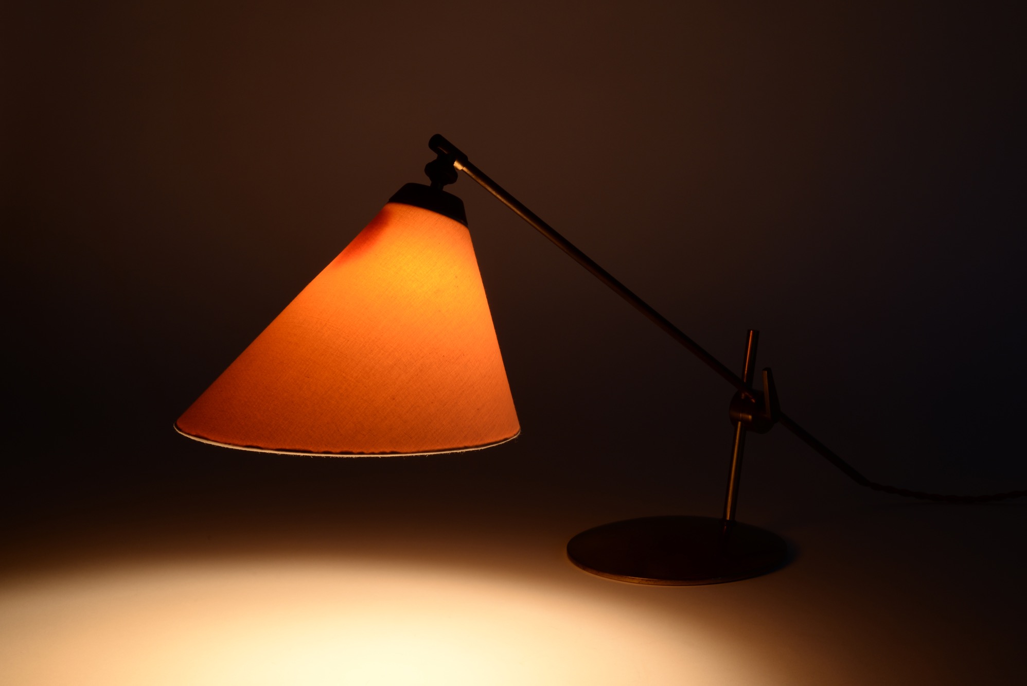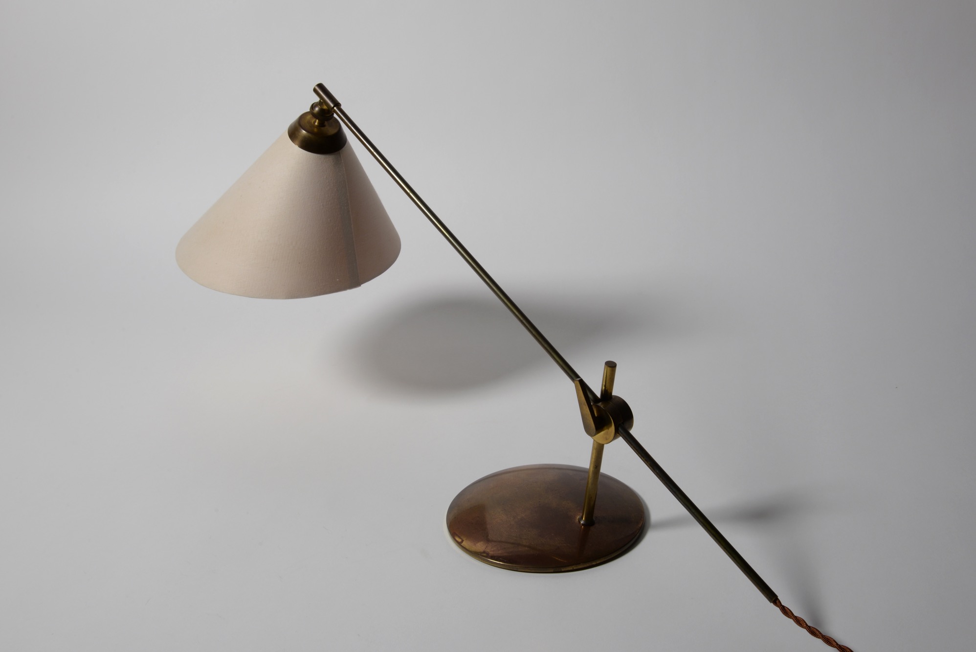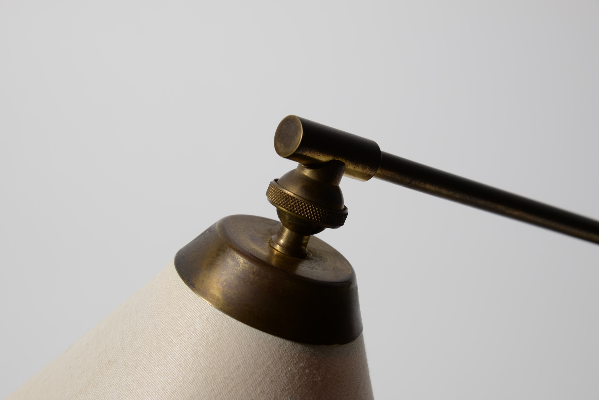 Poul Dinesen/ポール・ディネセンによるテーブルランプです。真鍮で作られたもので、角度を自由に変えることができます。シェードに若干の焼けがありますが、綺麗な状態です。シェードの張替えも可能です。