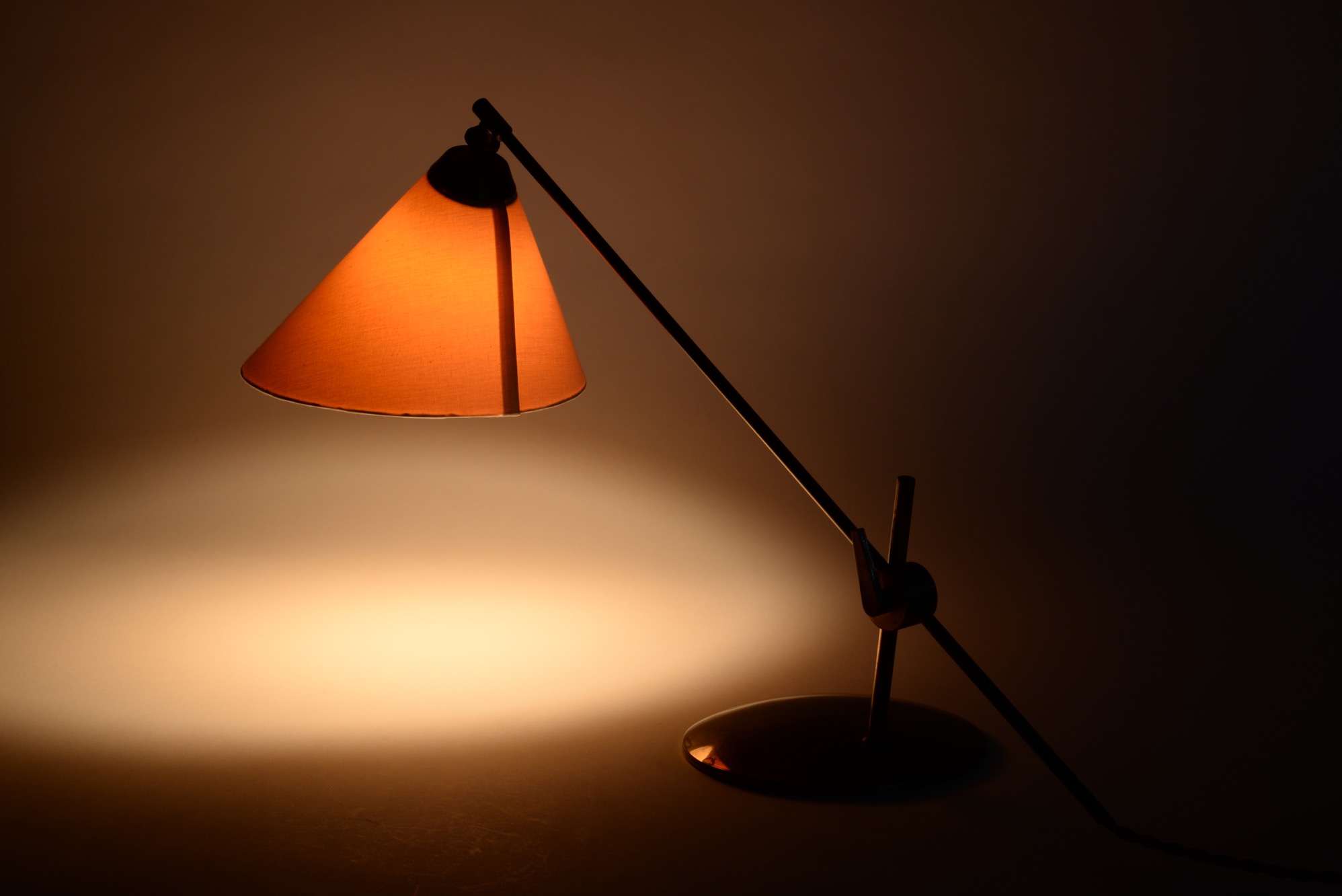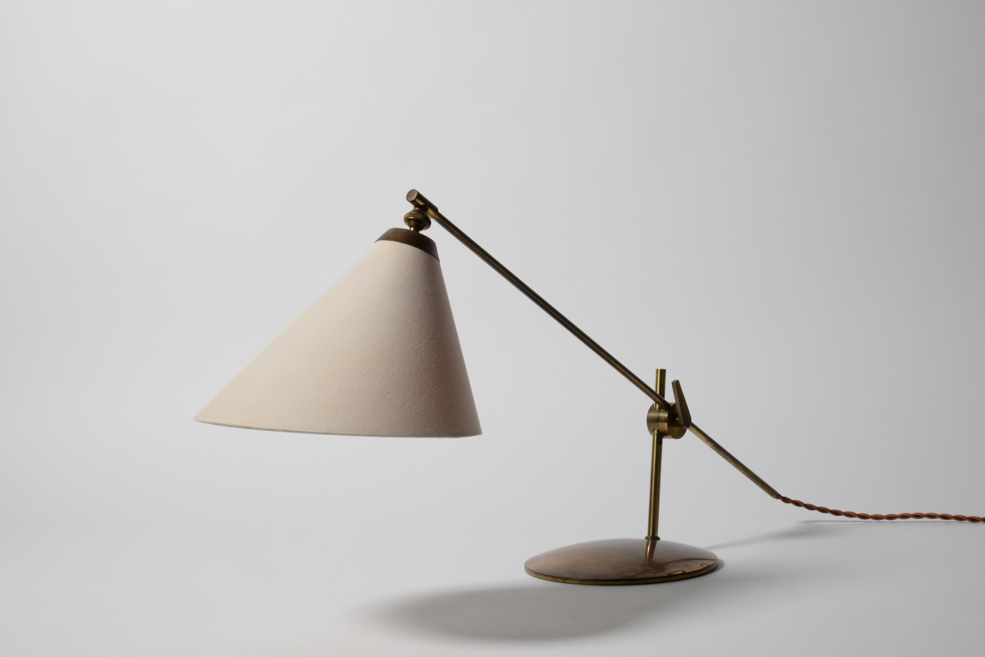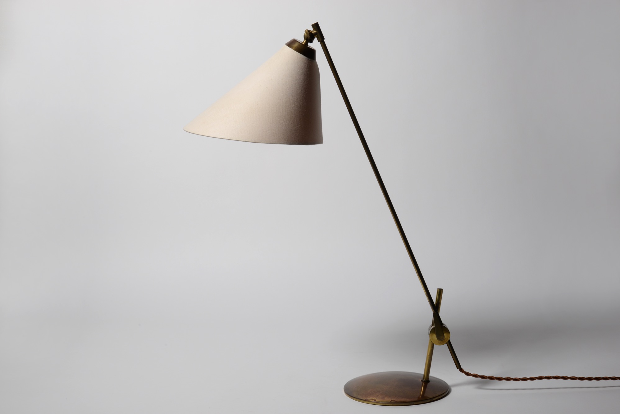 Poul Dinesen/ポール・ディネセンによるテーブルランプです。真鍮で作られたもので、角度を自由に変えることができます。シェードに若干の焼けがありますが、綺麗な状態です。シェードの張替えも可能です。