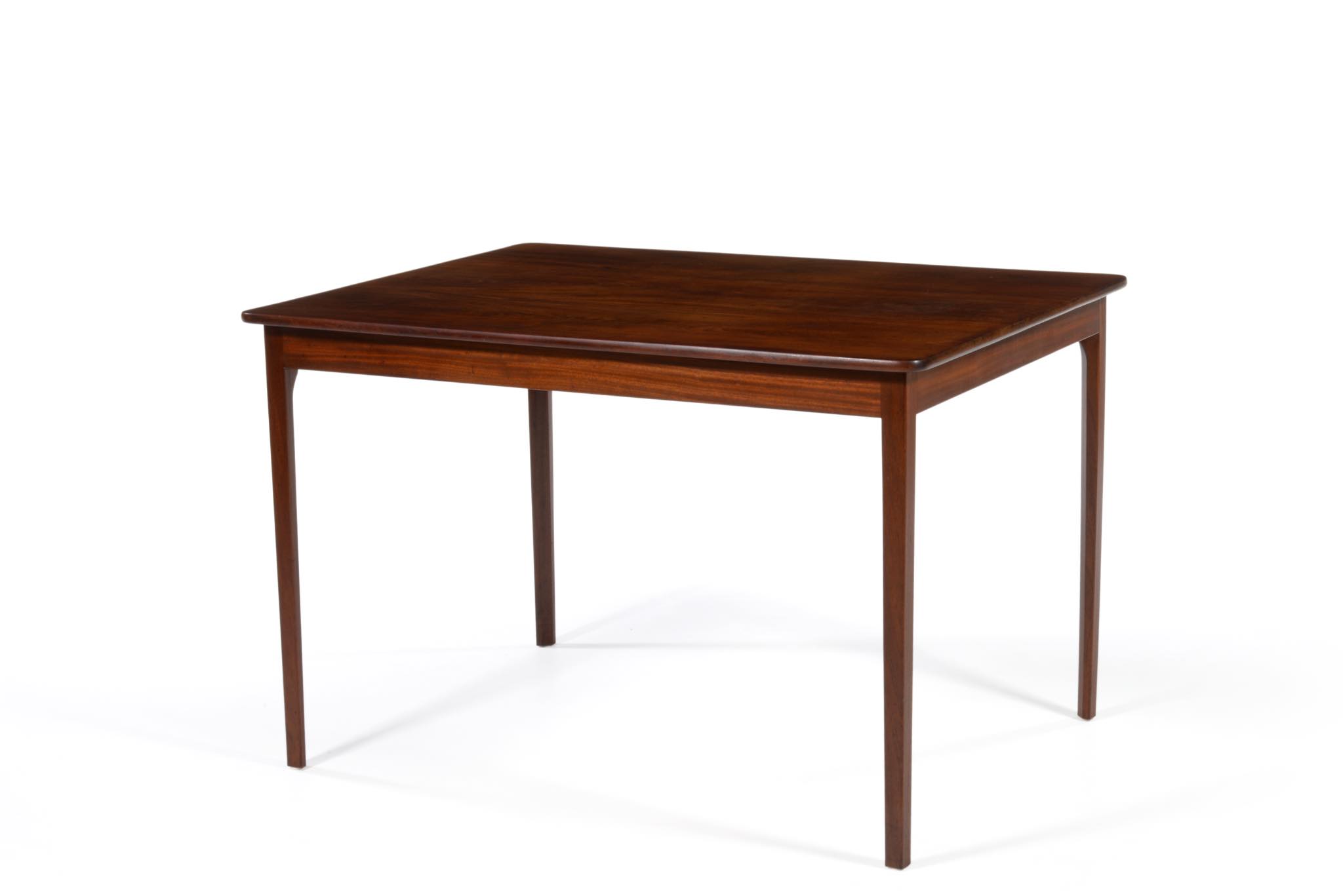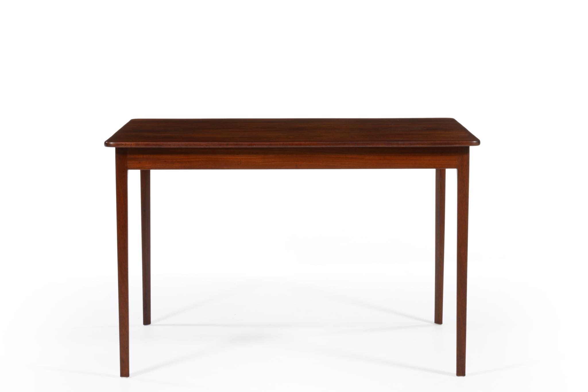 デンマークを代表する家具デザイナー、Ole Wanscher/オーレ・ヴァンシャーの邸宅に於いて、1940年代より長らく使われてきたワークテーブルです。2018年にご子息のヘンリック・ヴァンシャー氏によって売り立てられました。比較的小ぶりなテーブルで、天板、脚共に無垢のキューバンマホガニー材が使われています。天板に遺された煙草の焦げ跡はヴァンシャー本人によるものでしょうか。ワークテーブルの他、ダイニングテーブルとしてもお使い頂けるサイズです。現時点で仕上げ等は行っておりません。天板の仕上げ方法につきましてはご相談ください。