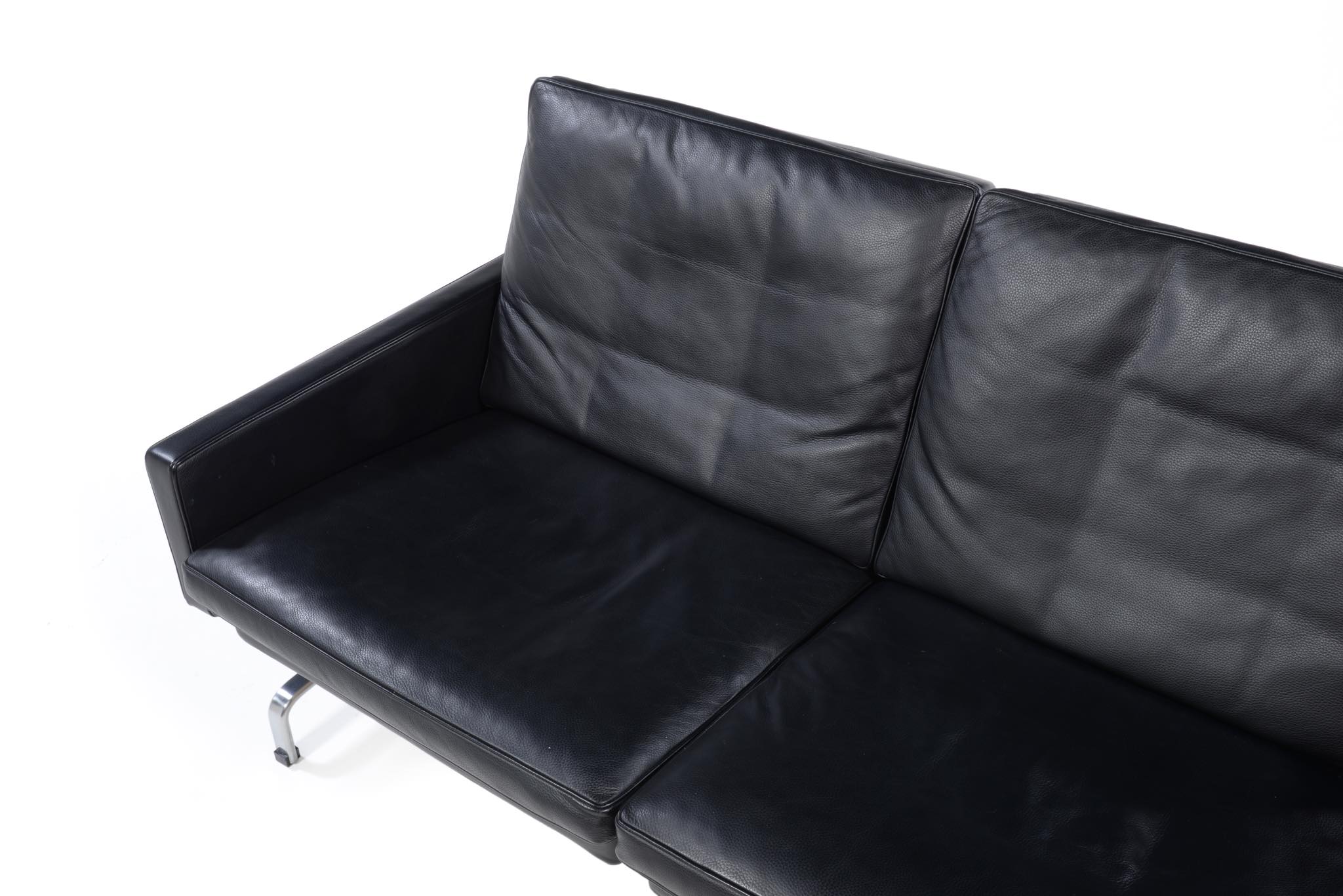 Poul Kjærholm/ポール・ケアホルムによる "PK31" ソファです。皮革は黒色のグレースレザー(旧称エレガンス)が張られています。フリッツ・ハンセン社によって2007年に作られたものですが、これまでの使用頻度は低く、とてもきれいな状態です。
