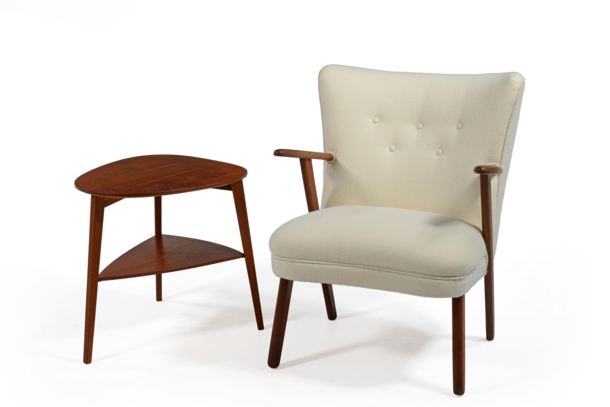 1950年代当時、デンマークでヒットしたサイドテーブル。丸みを帯びた三角形はイージーチェアの側に置けばピタリとハマり便利です。