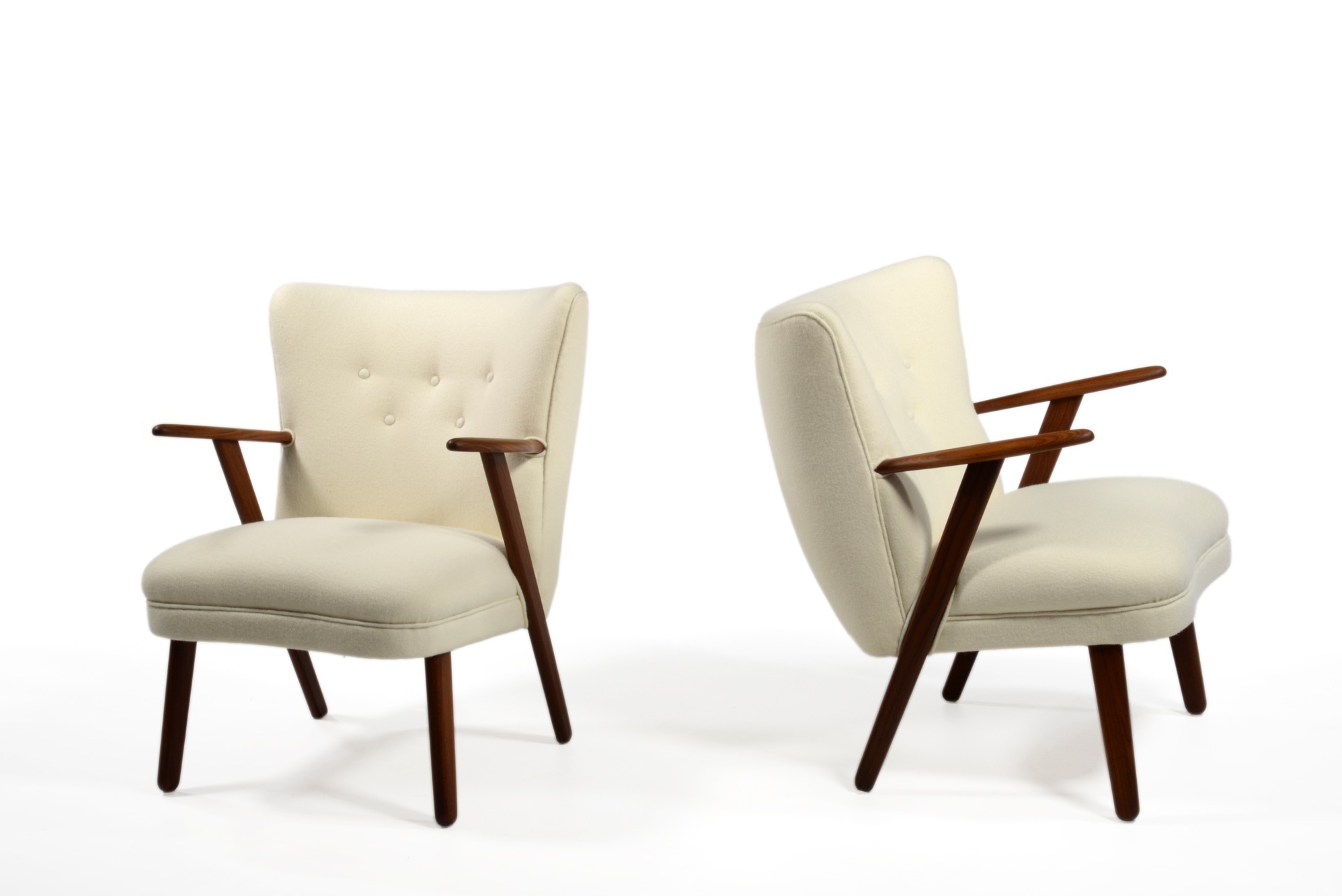 Danish cabinetmakers 1960’s Afrormosia, New wool fabric (Danish Art Weaving) w-62, d-73, h-79, sh-39cm 2脚ともご売約となりました。ありがとうございました。