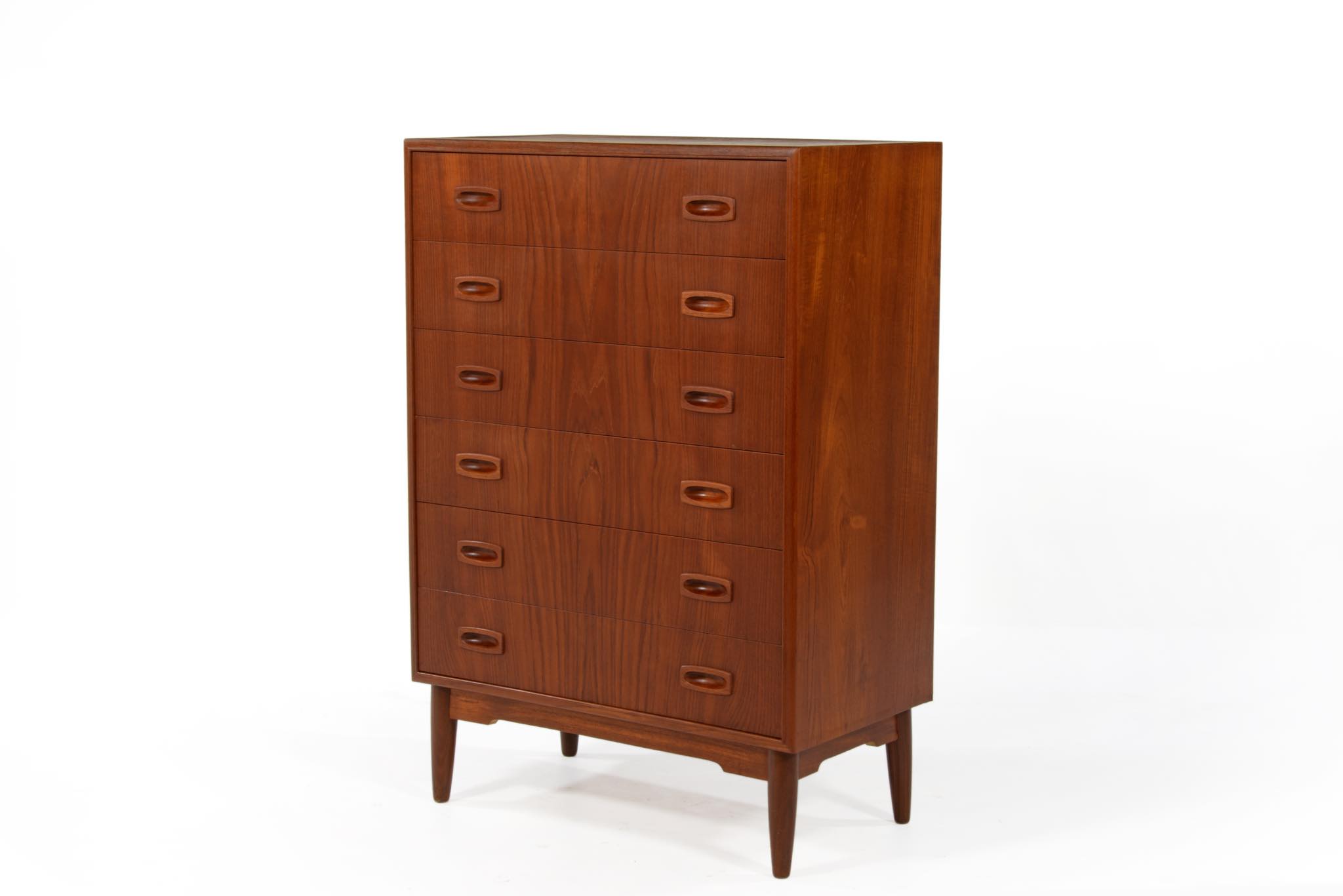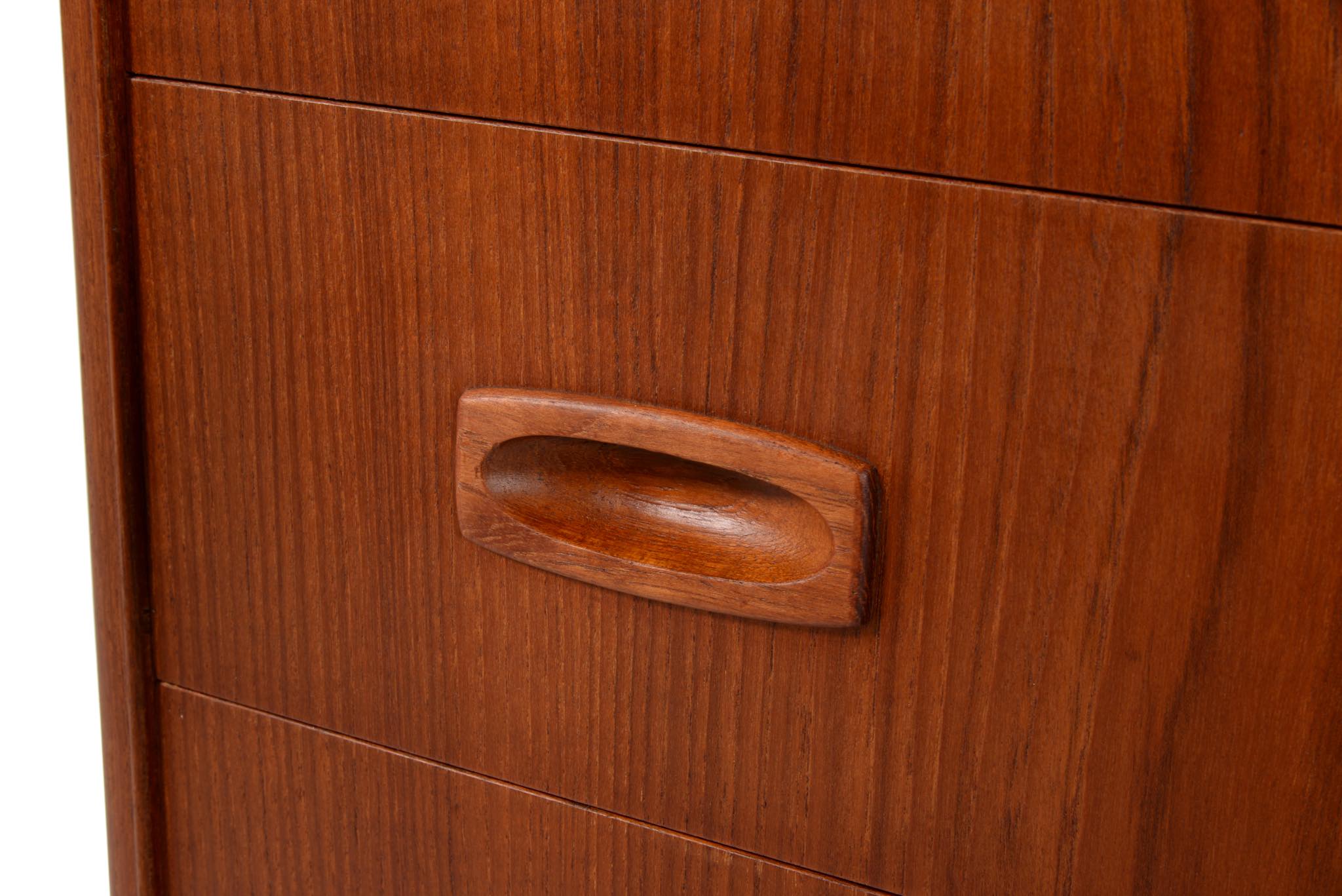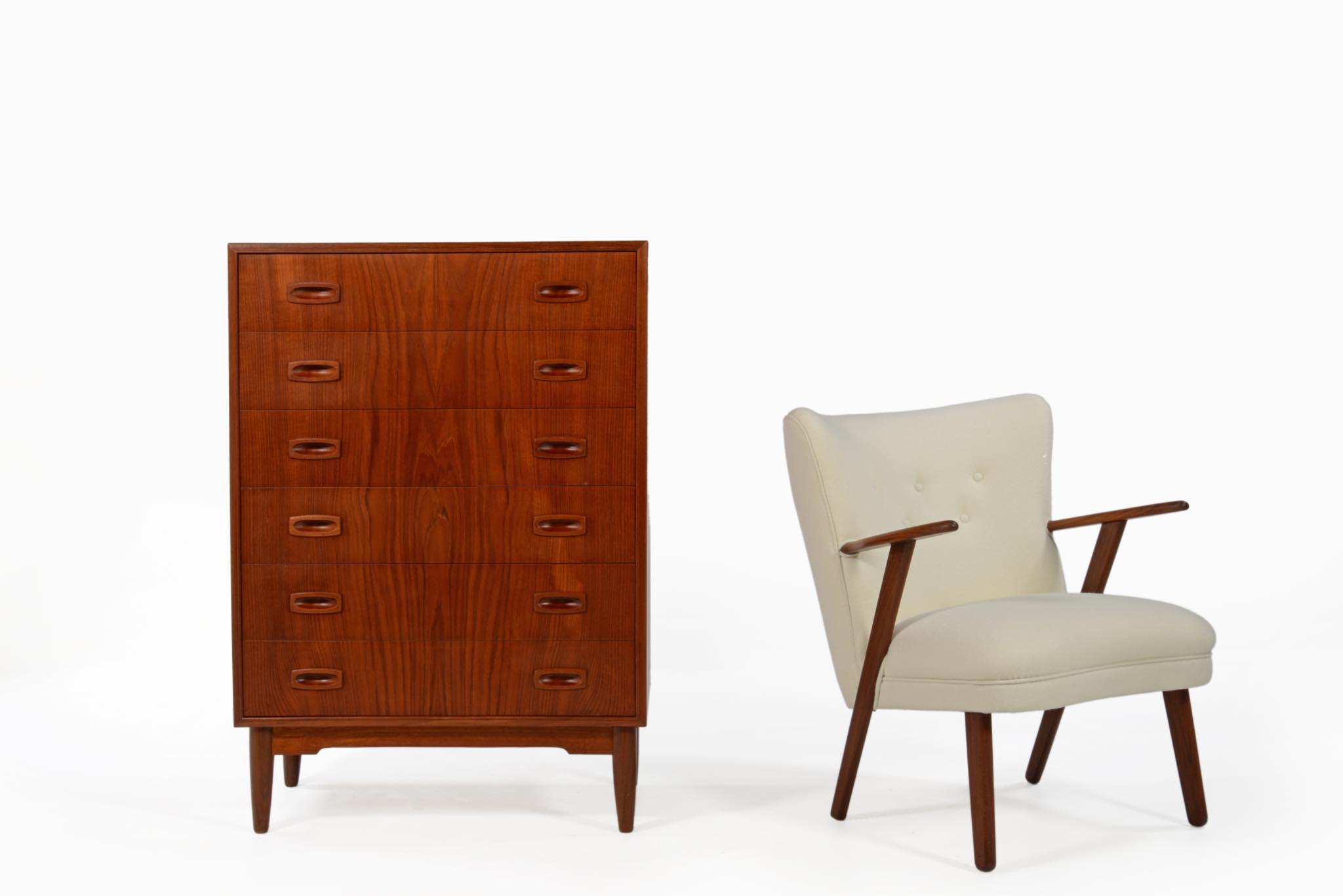 1950~60年代頃に作られたチーク材のチェスト。引手に特徴のあるデザインです。コンディションは良好です。