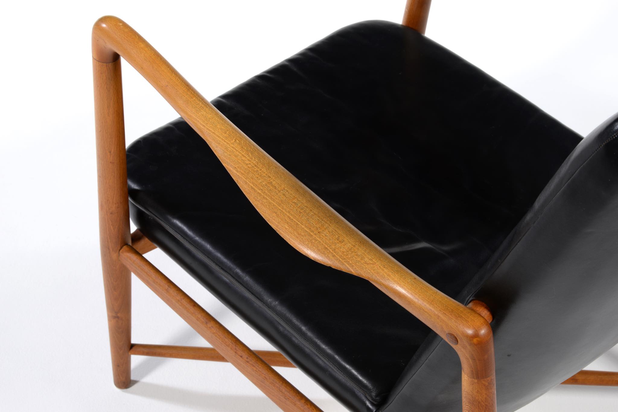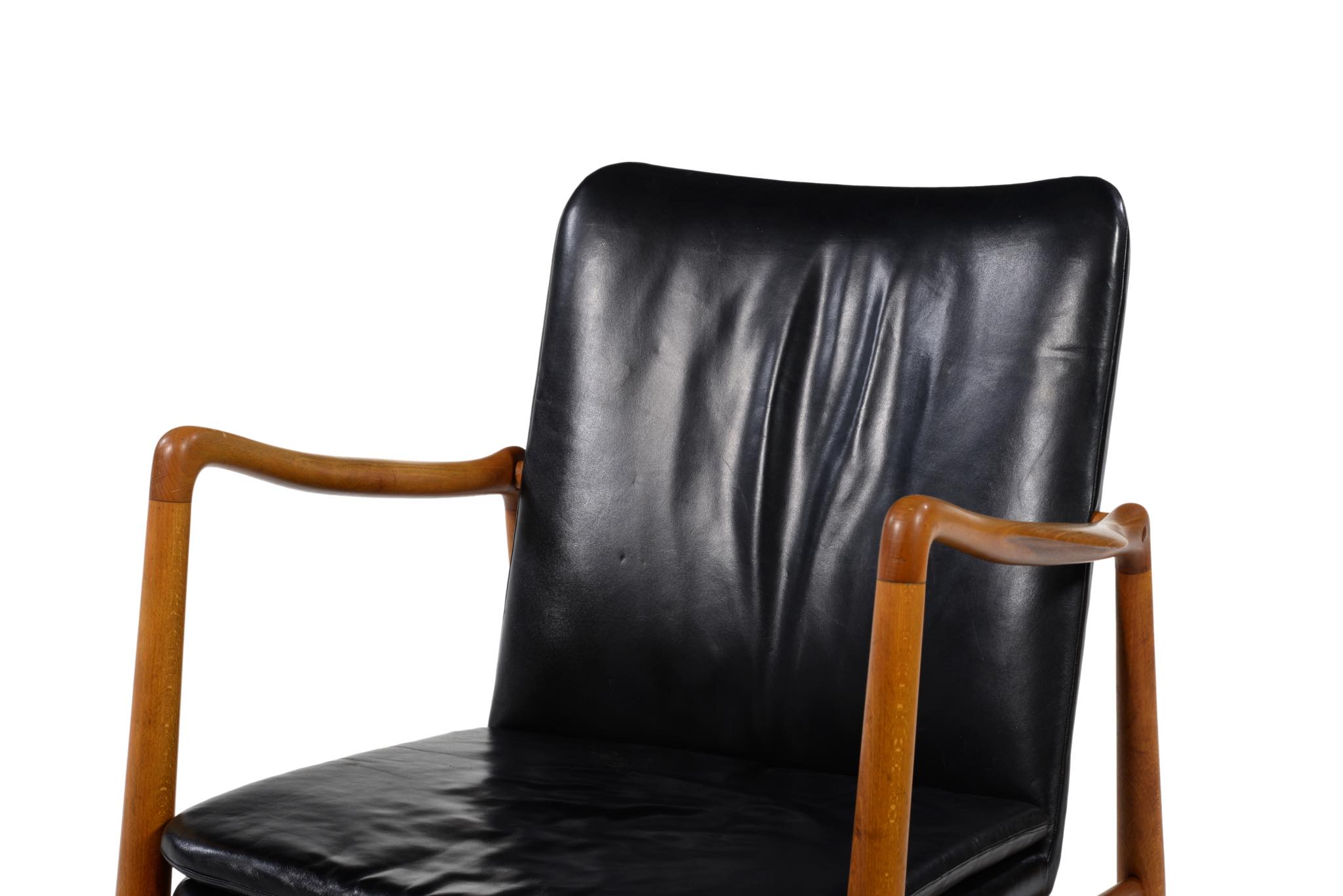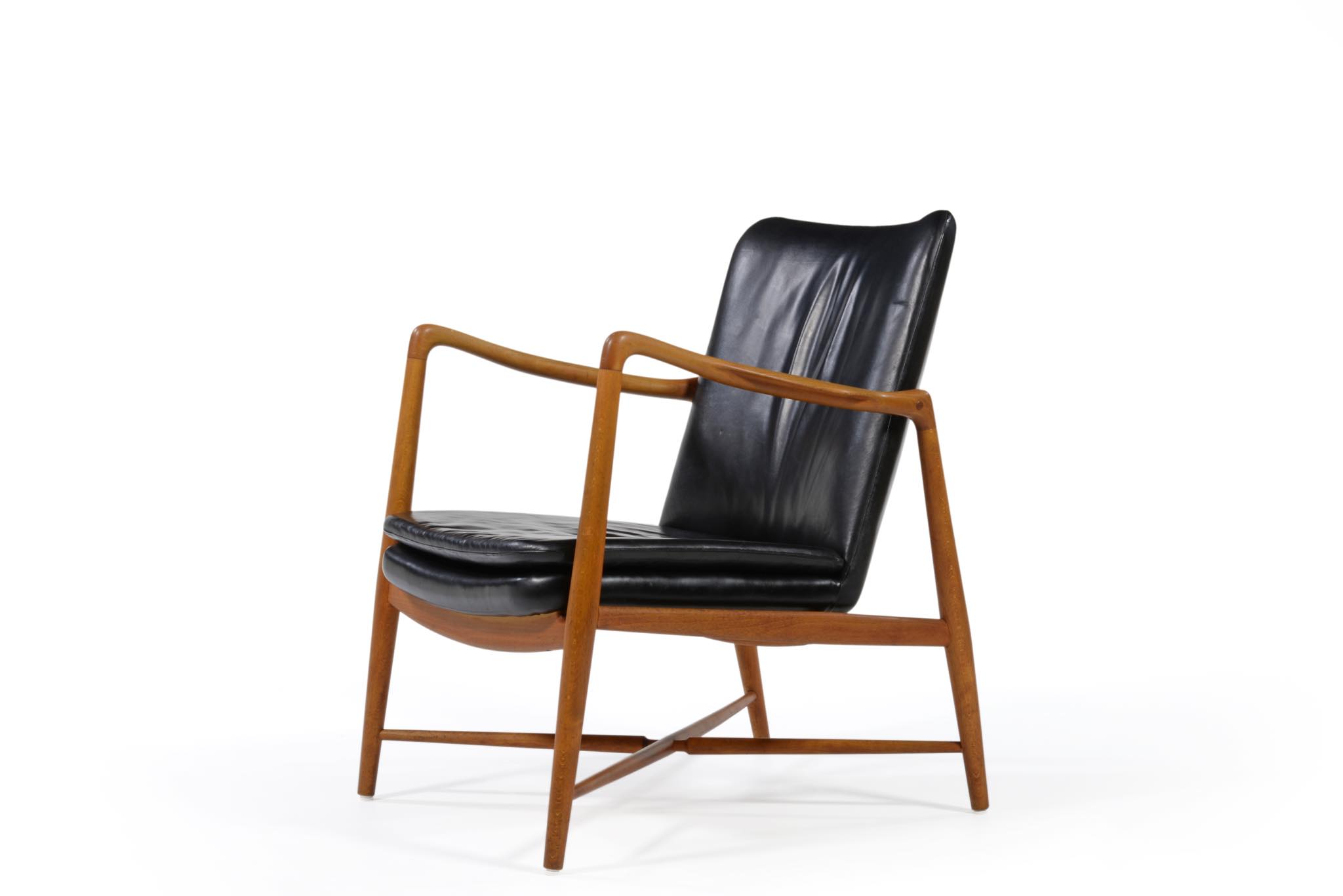 Finn Juhl/フィン・ユールによる、BO59 "ファイヤープレイス” チェア、ビーチ材のモデルです。オリジナルと思われる黒色皮革で張られており、使い込まれた雰囲気が魅力です。皮革、あるいはファブリックでの張替えも可能です。