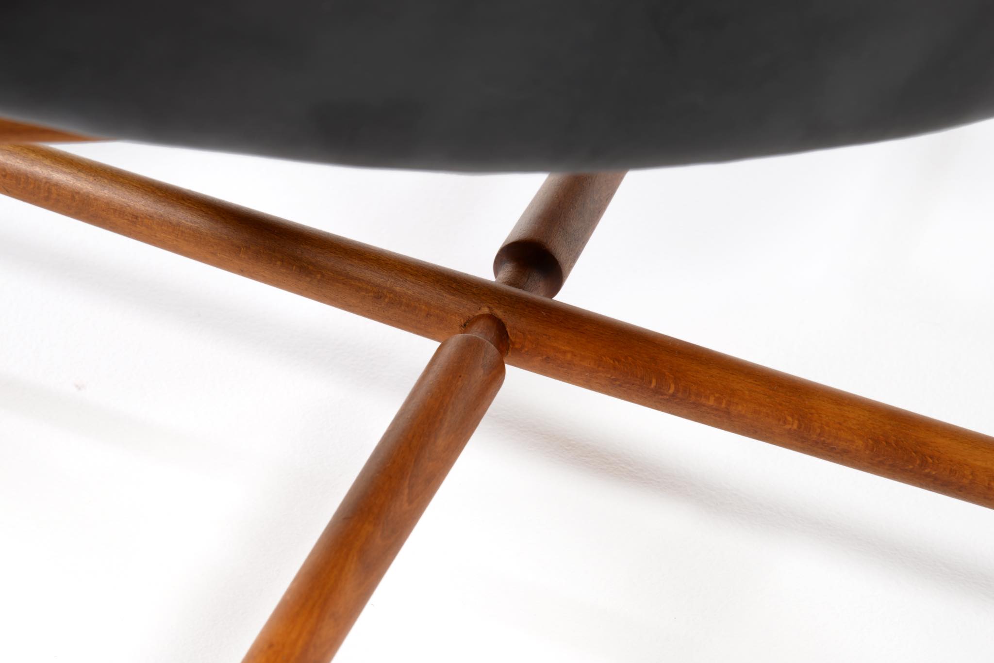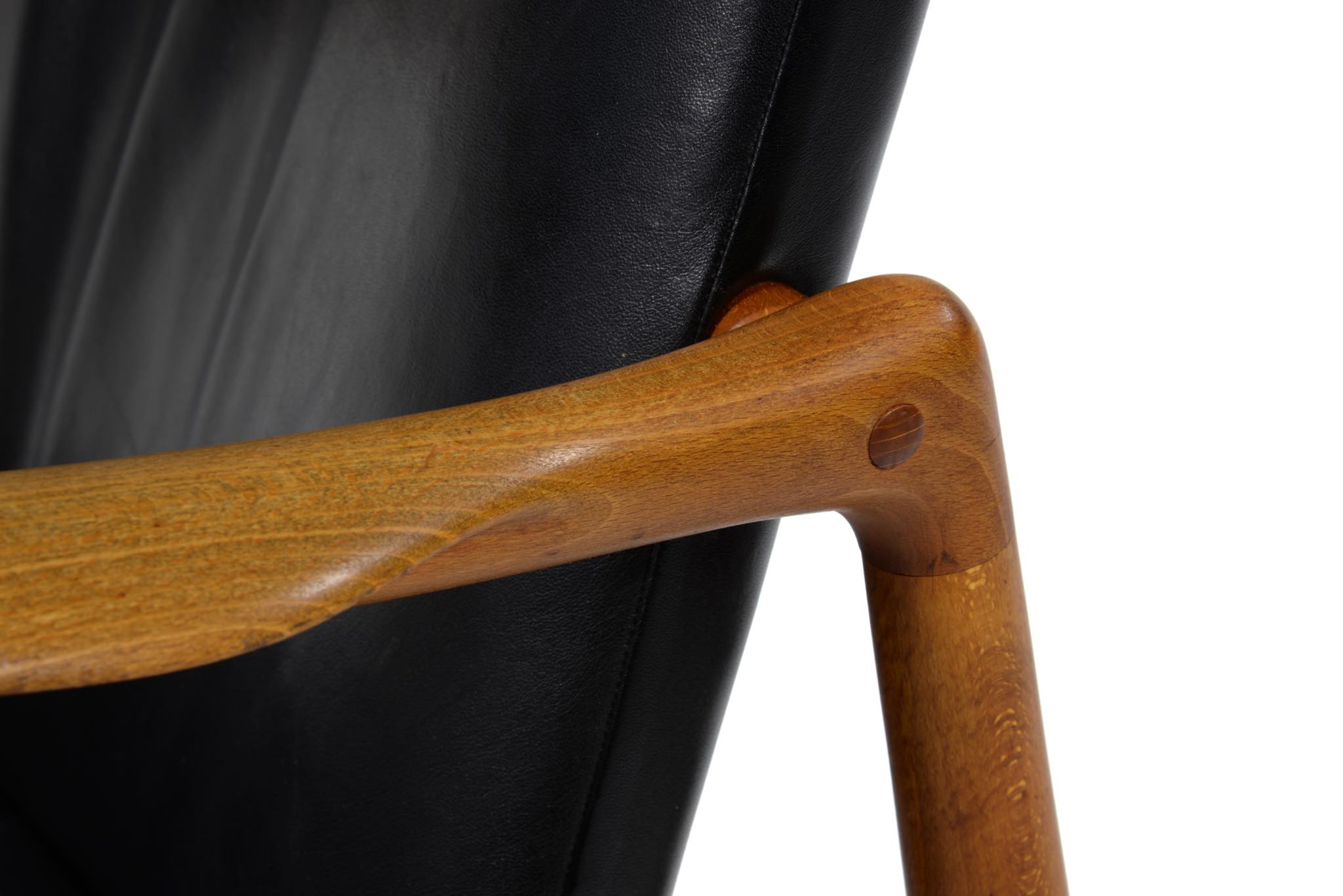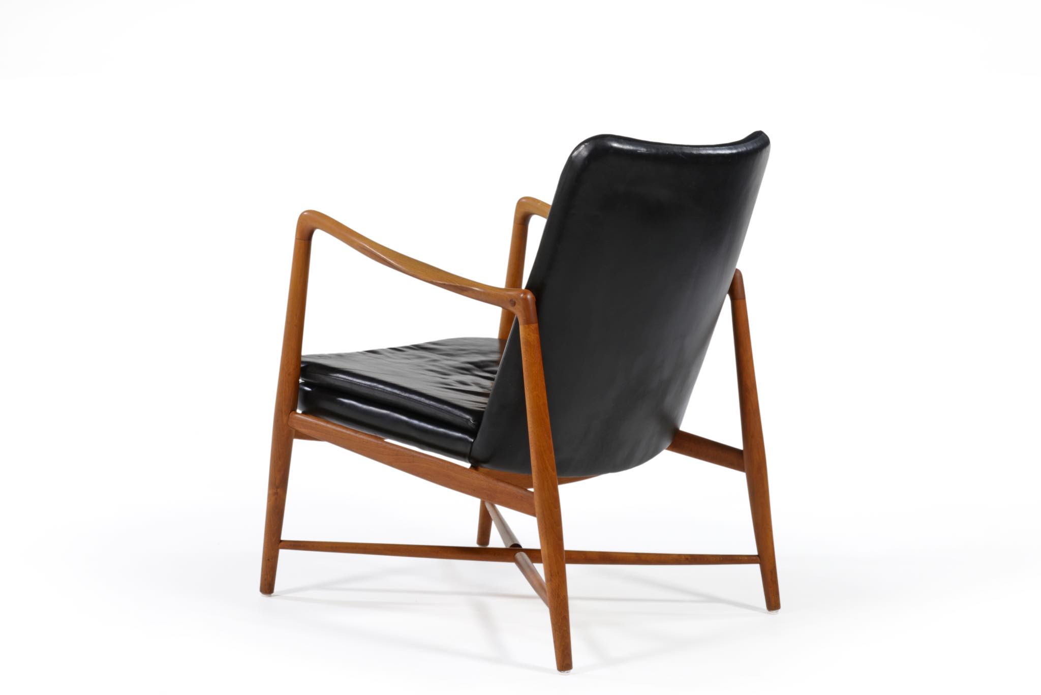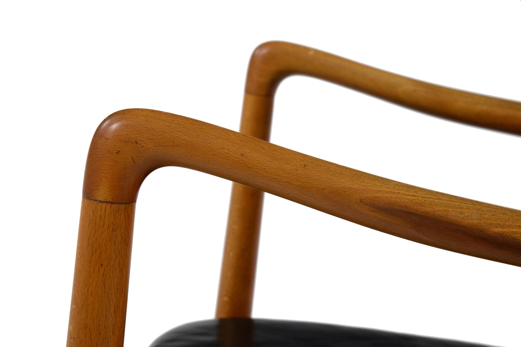 Finn Juhl/フィン・ユールによる、BO59 "ファイヤープレイス” チェア、ビーチ材のモデルです。オリジナルと思われる黒色皮革で張られており、使い込まれた雰囲気が魅力です。皮革、あるいはファブリックでの張替えも可能です。