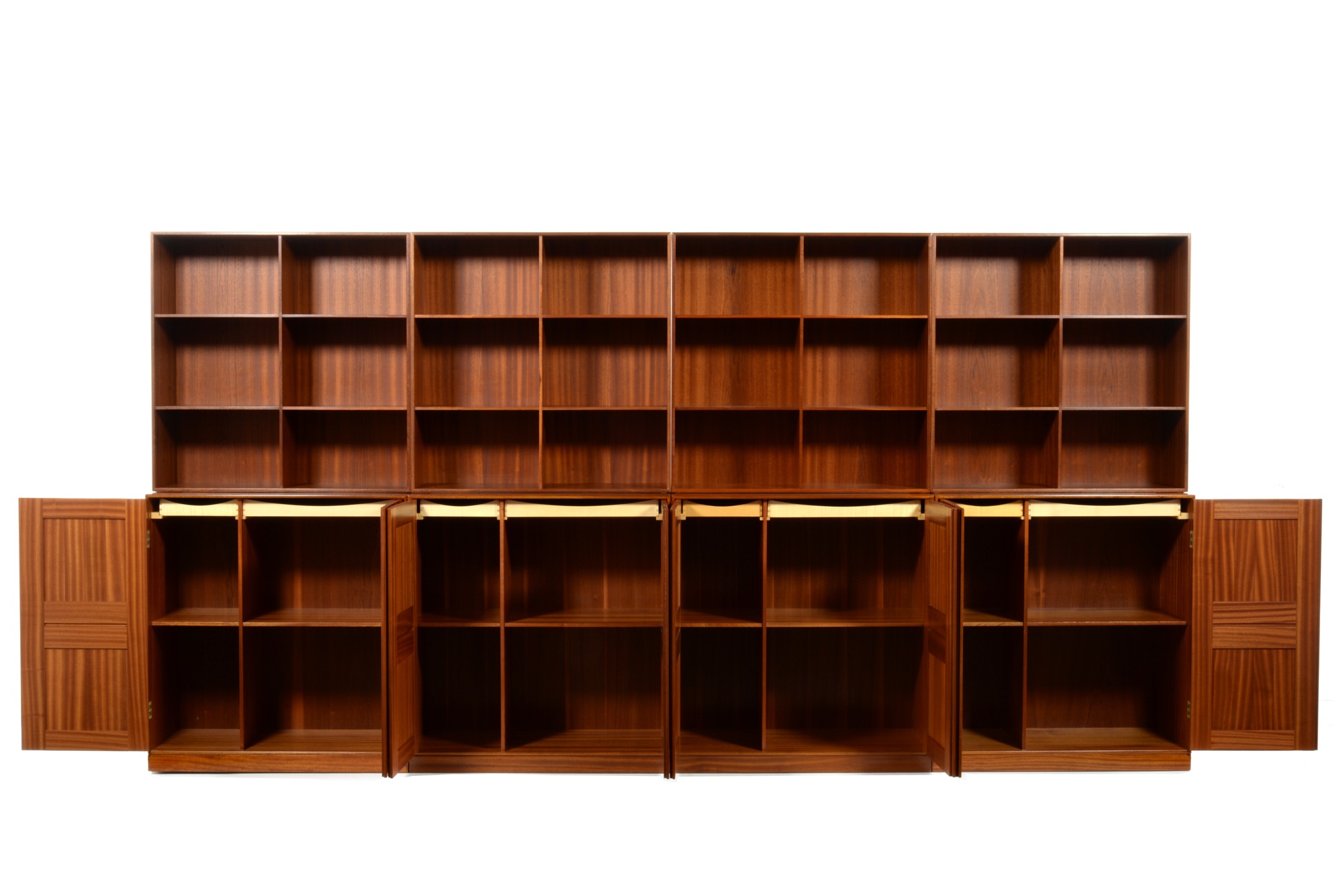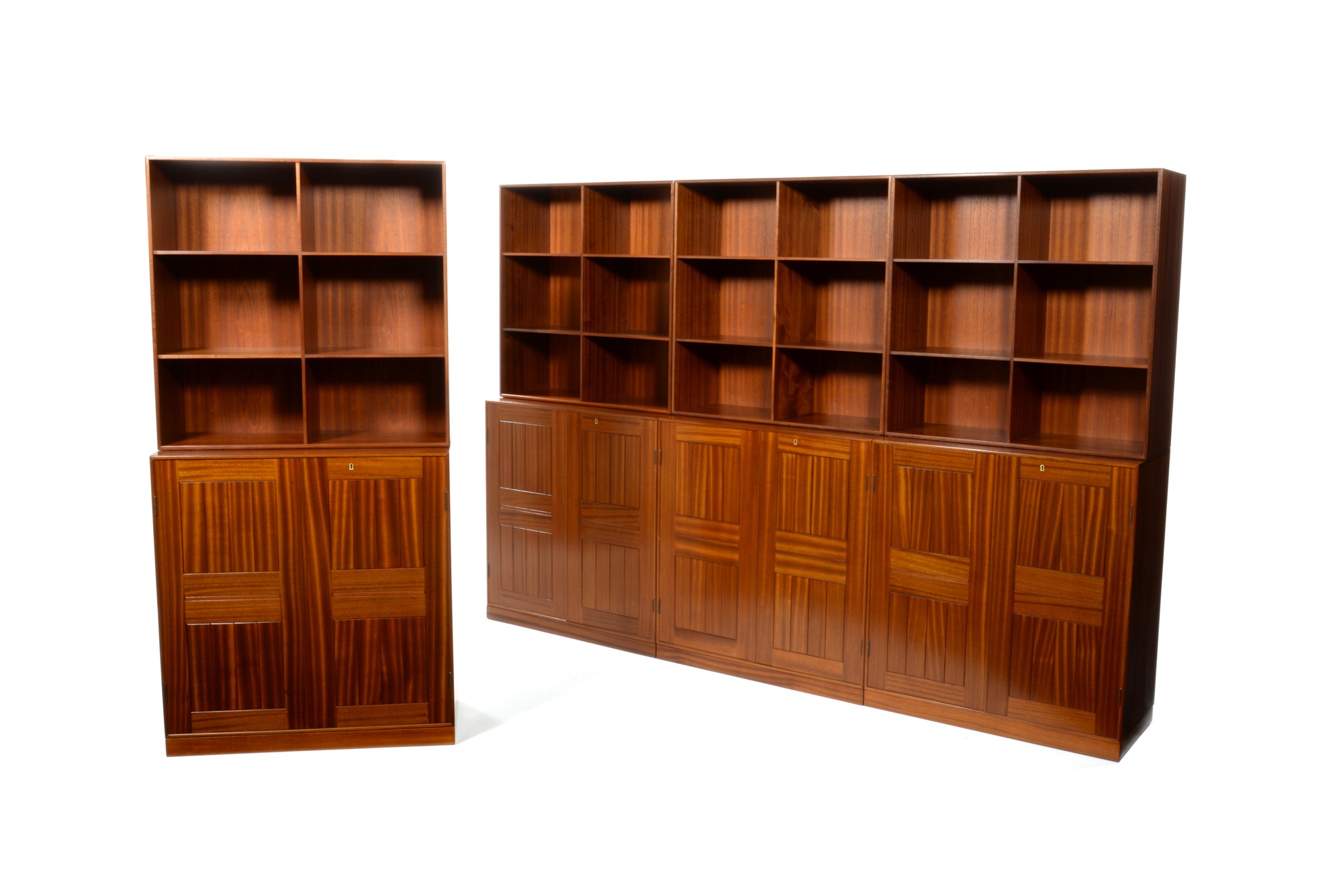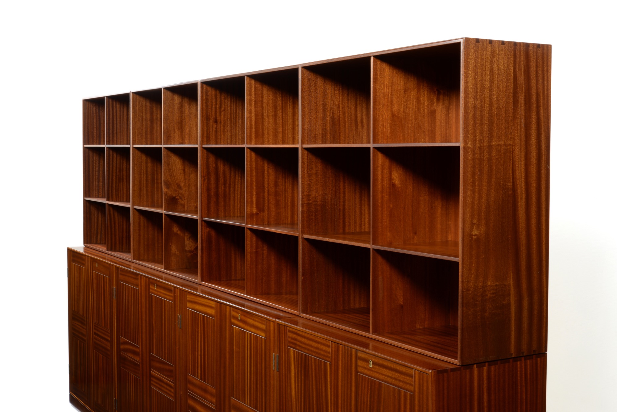 ルド・ラスムッセン工房製、モーエンス・コッホによるブックケースキャビネットです。おそらく1970年代頃に作られたものでしょう。無垢マホガニーの木取りは良く、コンディションも良好です。オーディオ装置に使えるディープシェルフもございますので、詳しくはお問い合わせください。