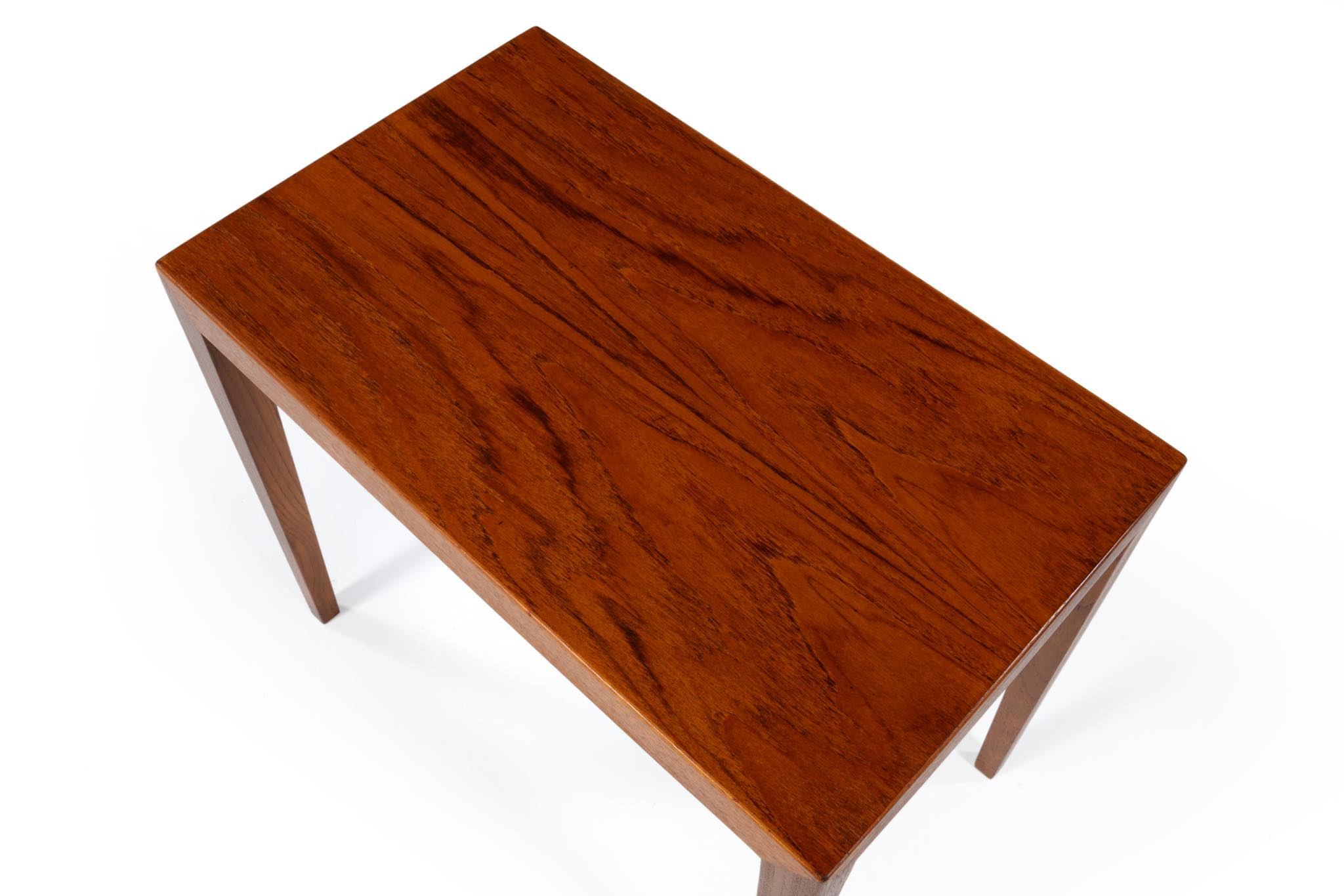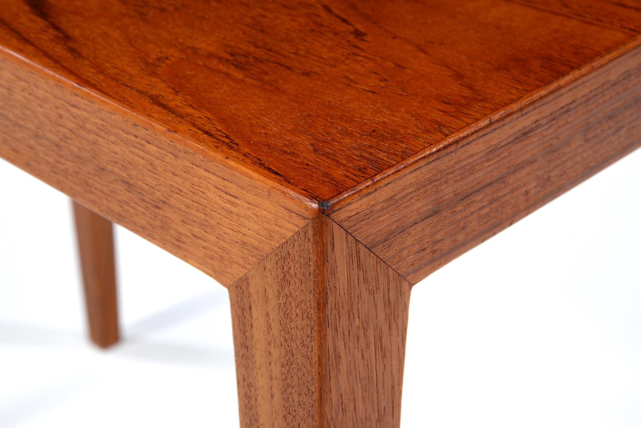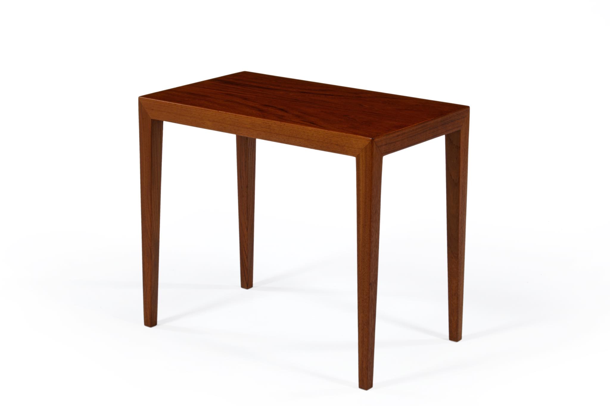 デンマークのデザイナー、Severin Hansen Jr./セヴェリン・ハンセンによるテーブルシリーズは、1960〜70年代にかけてライティングデスクやコーヒーテーブル、サイドテーブルなどが展開され、構造が見えにくく空間を邪魔しないミニマルな姿が当時人気を博しました。こちらはチーク材を用いたサイドテーブルで、オイルによって仕上げています。