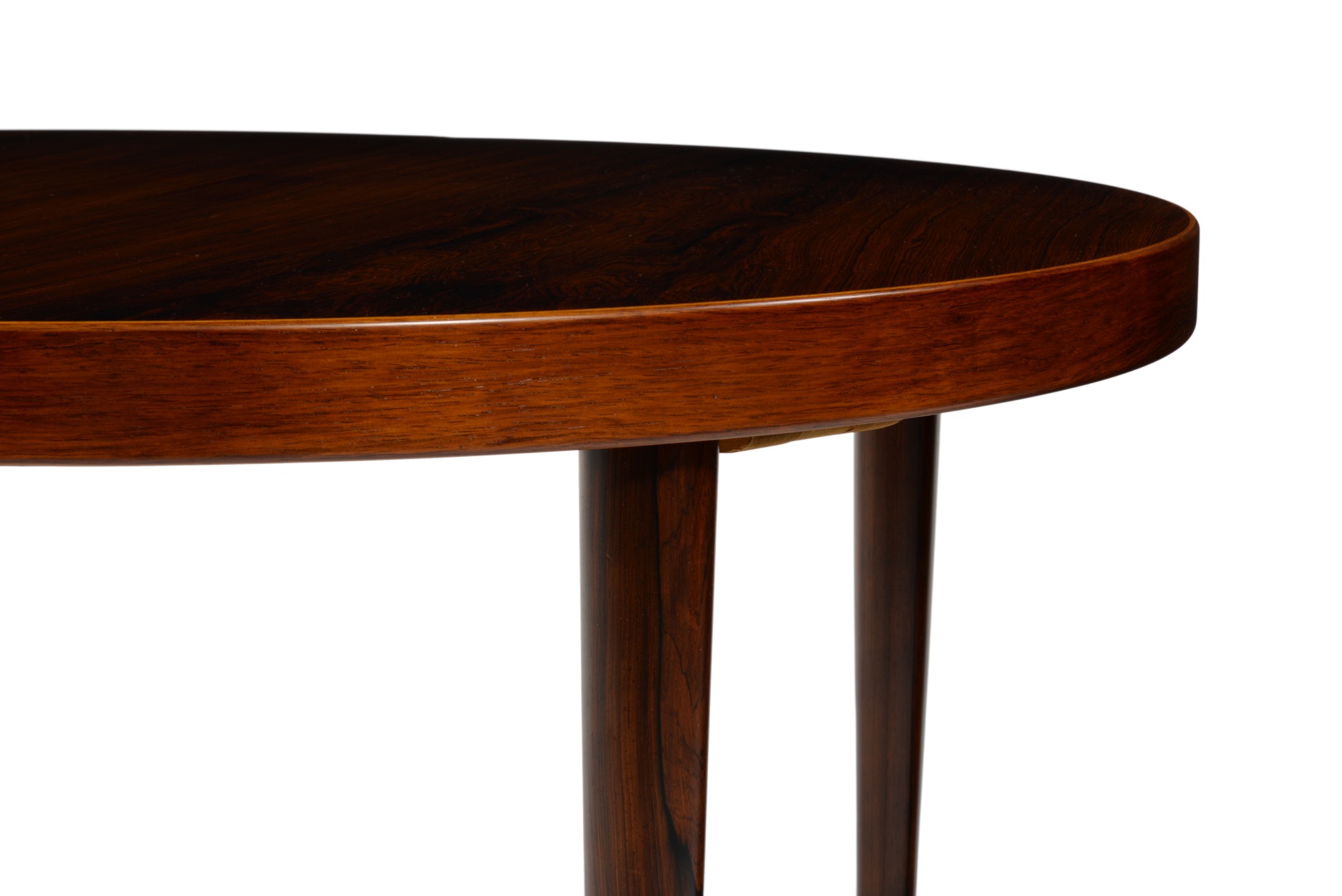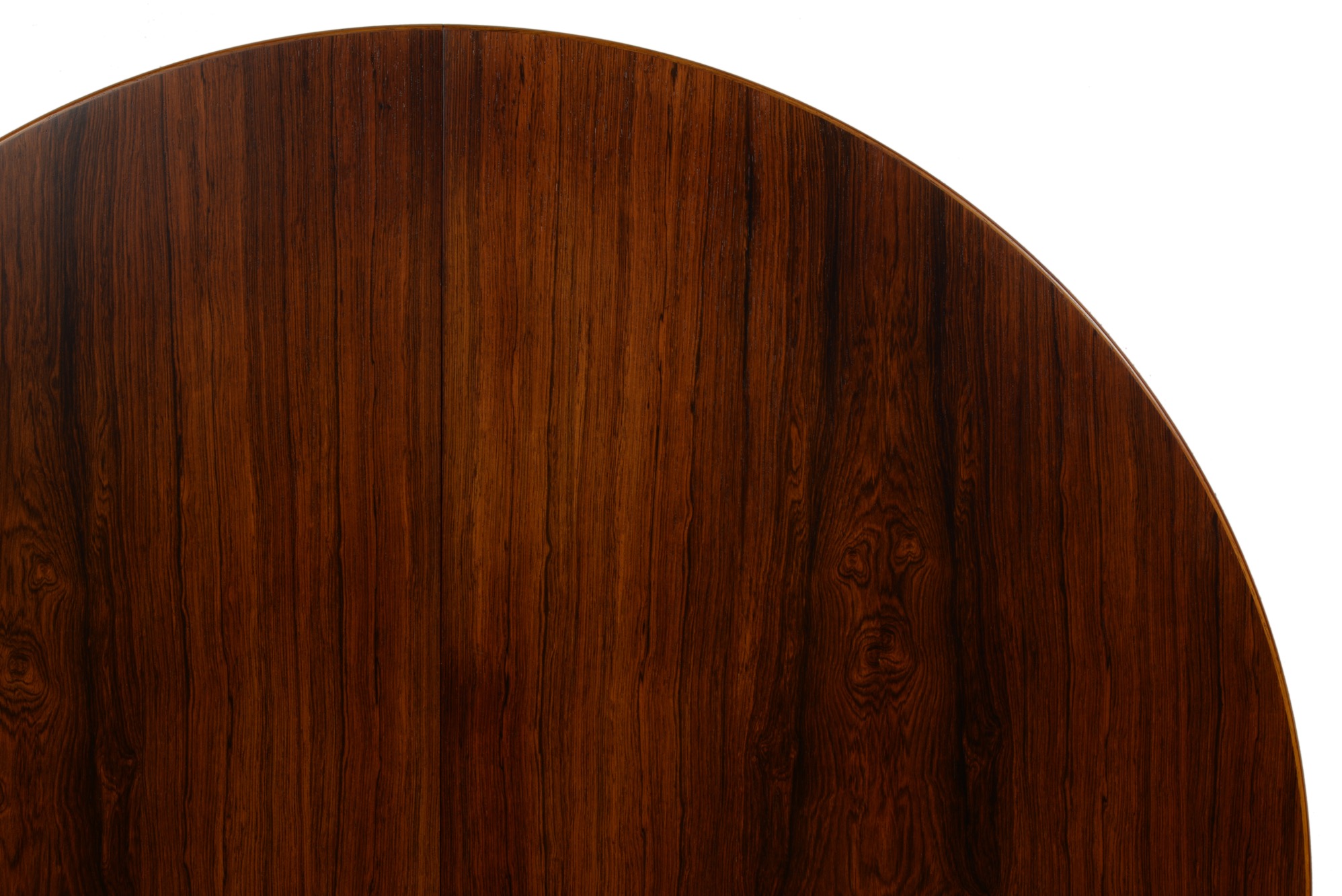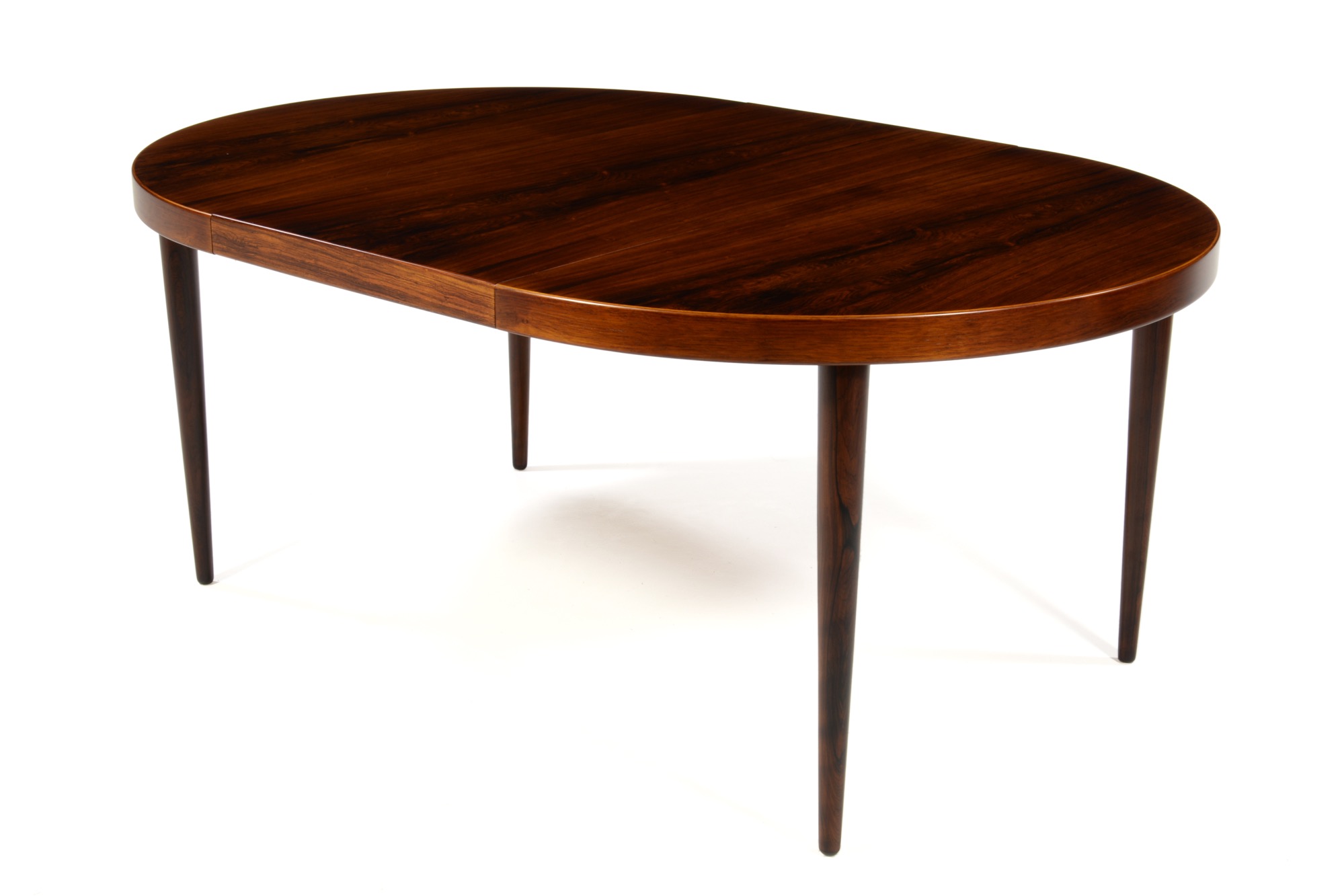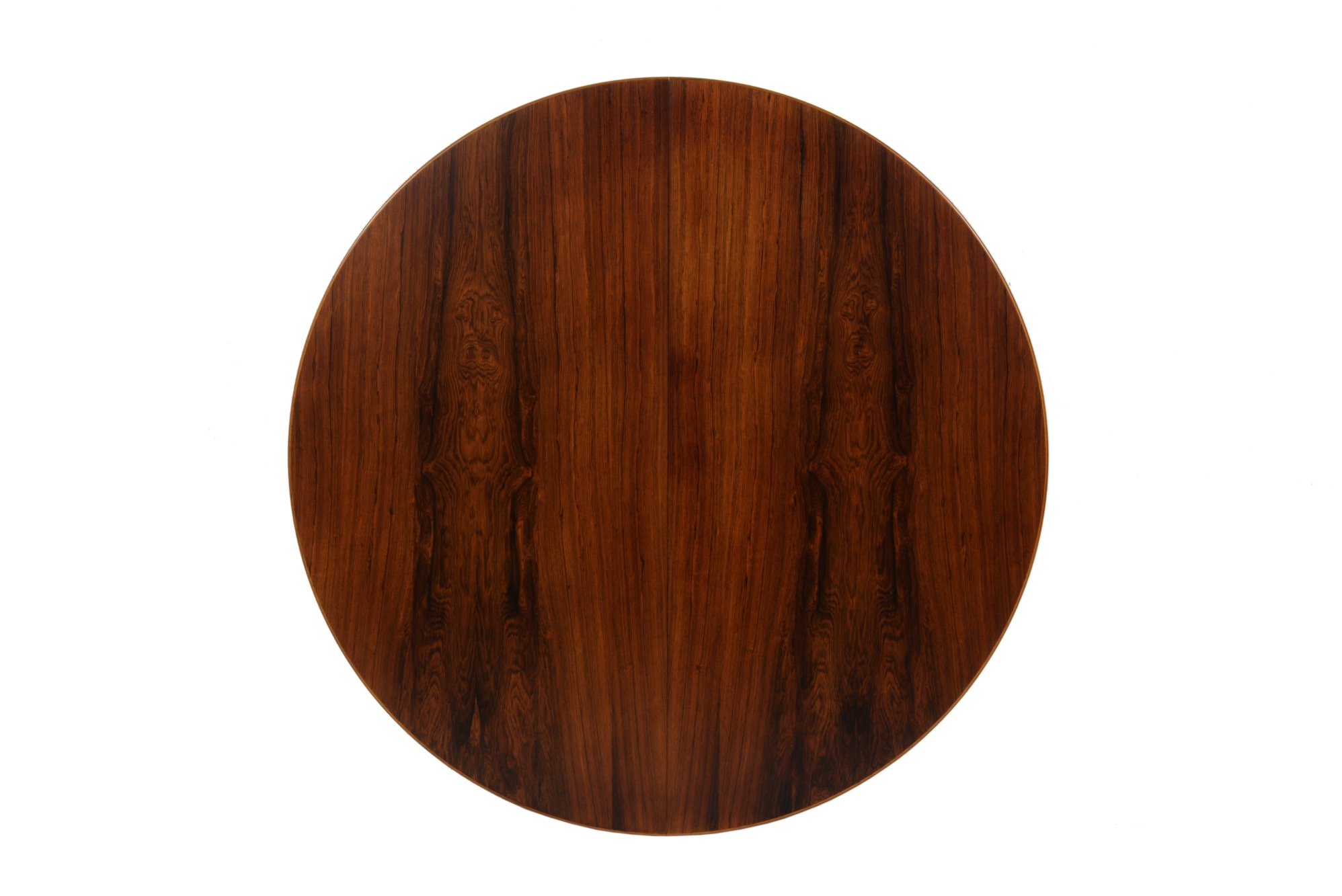 デンマークの家具デザイナー、カイ・クリスチャンセンによるブラジリアンローズウッドのダイニングテーブル、1960年代頃の製作品です。直径115cmは、当時のデンマーク家具としてはひとまわり小ぶりです。エクステンションリーフが1枚付属し天板の面積が拡張できます。(各サイズは下記をご参照ください)