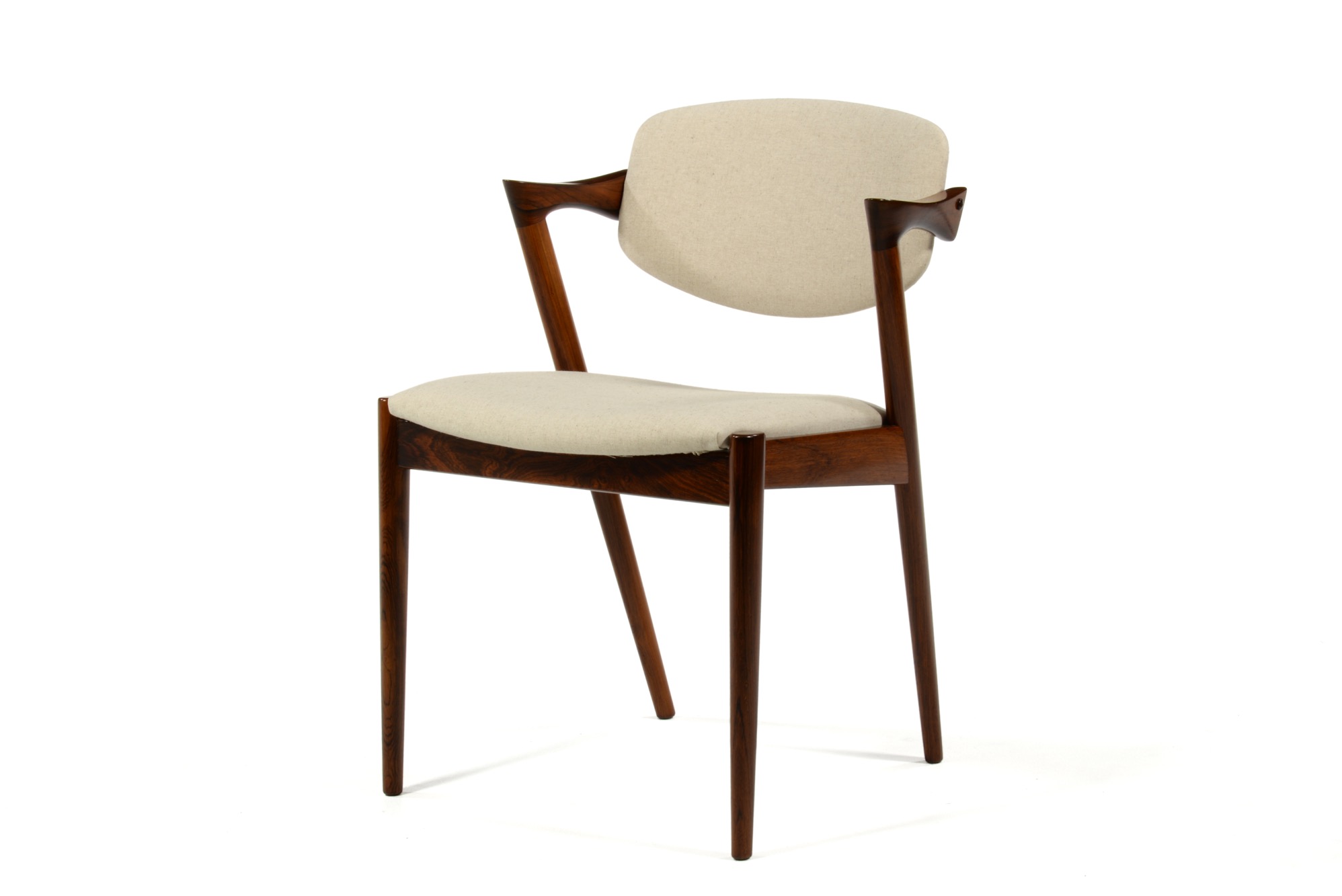 デンマークの家具デザイナー、Kai Kristiansen/カイ・クリスチャンセンによる名作椅子 ”no.42” ブラジリアンローズウッドのモデルです。シートは現在仮張り状態で、各種ファブリックや皮革などお選び頂けます。