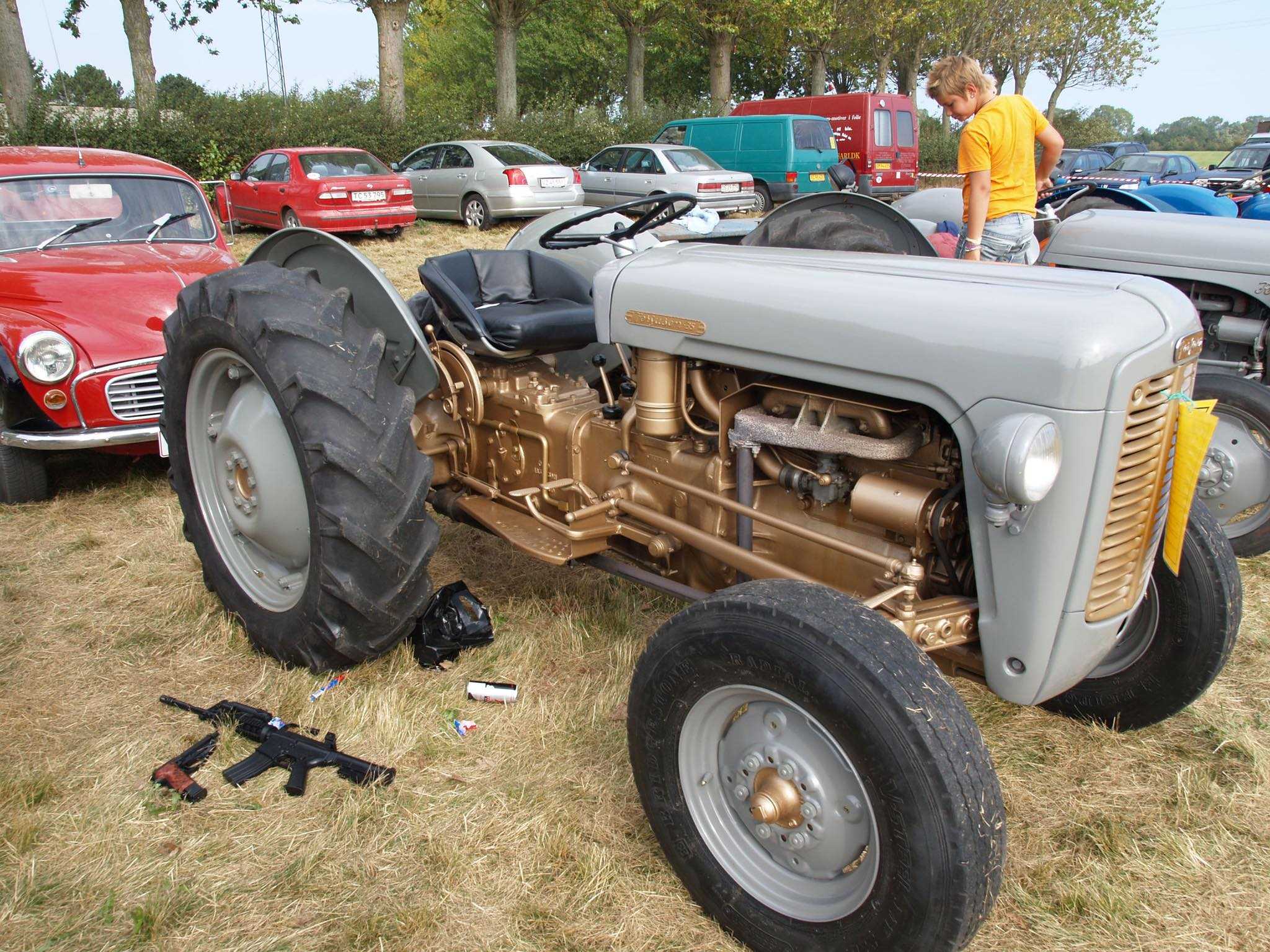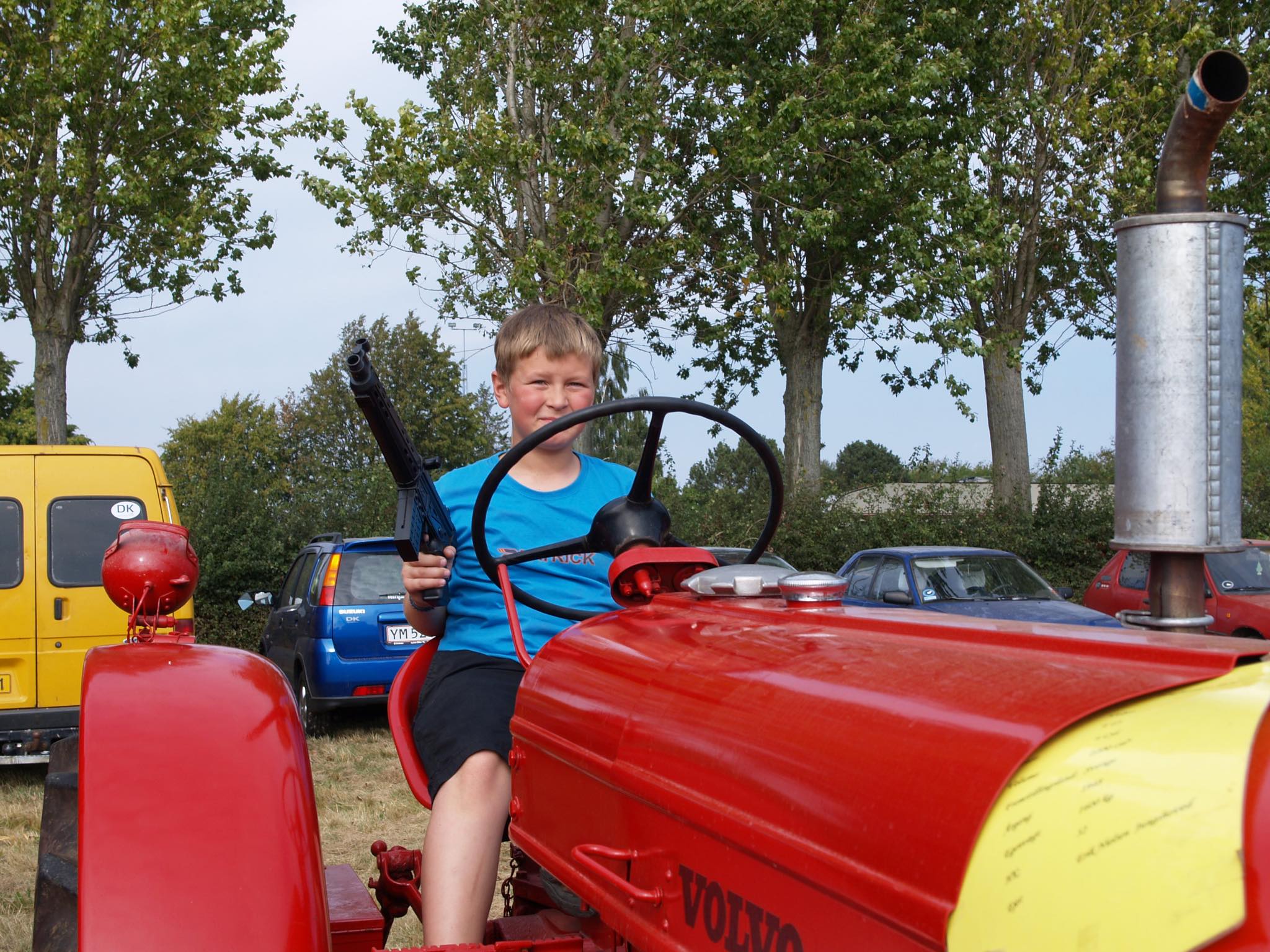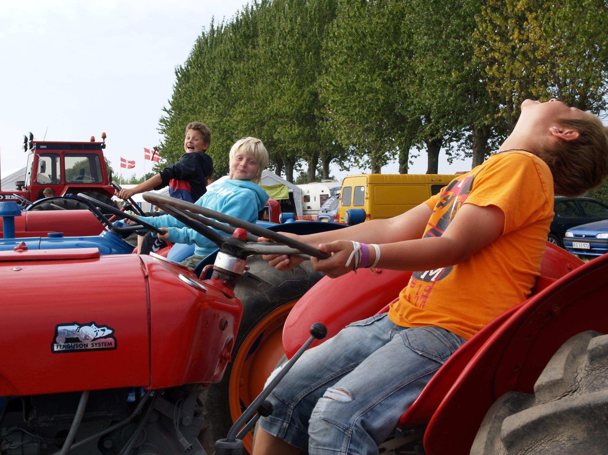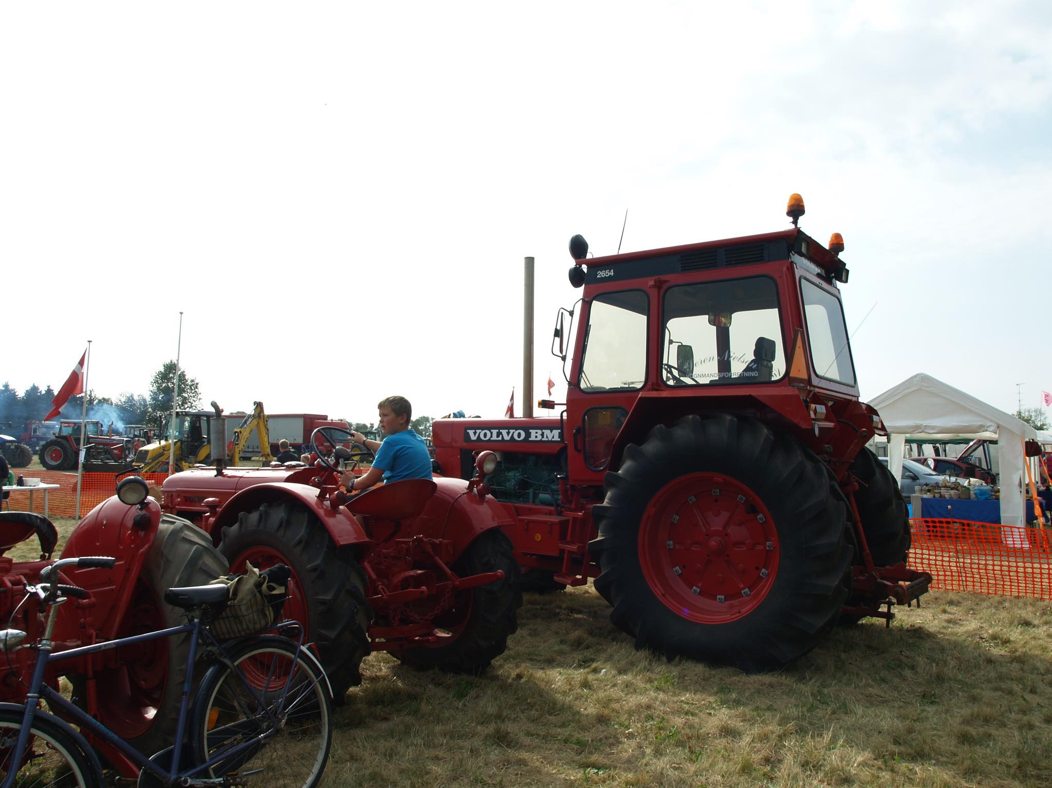 在りし日の秋の日曜日、予てからお世話になっているアンティークディーラーの Christianと田舎道をトラックで走っていると、畑を耕すパワフルなトラクターで重いそりを引っ張りその距離を競う ”TRAKTORTRÆK”トラクター牽引レースが行われていました。一年の農作業を終えた農家の方々にとって、このお祭りは収穫祭のようなイベントなのでしょう。参加者たちはこの日のためにコンディションを整えた自慢のトラクターで、引けば引くほど錘が前方向へ移動し重量が嵩む「そり」をアクセル全開で引っ張り、その引っ張れた移動距離を競います。勝者にはトロフィーが贈られ、もれなく参加者全員へも贈呈されたようです。きっと参加者たち自宅のキャビネットには、これまで獲得した自慢のトロフィーがずらっと並んでいることでしょう。年代物の貴重なトラクターの展示では、未来の「勝者」たちがギャング映画さながらに遊んでいました。