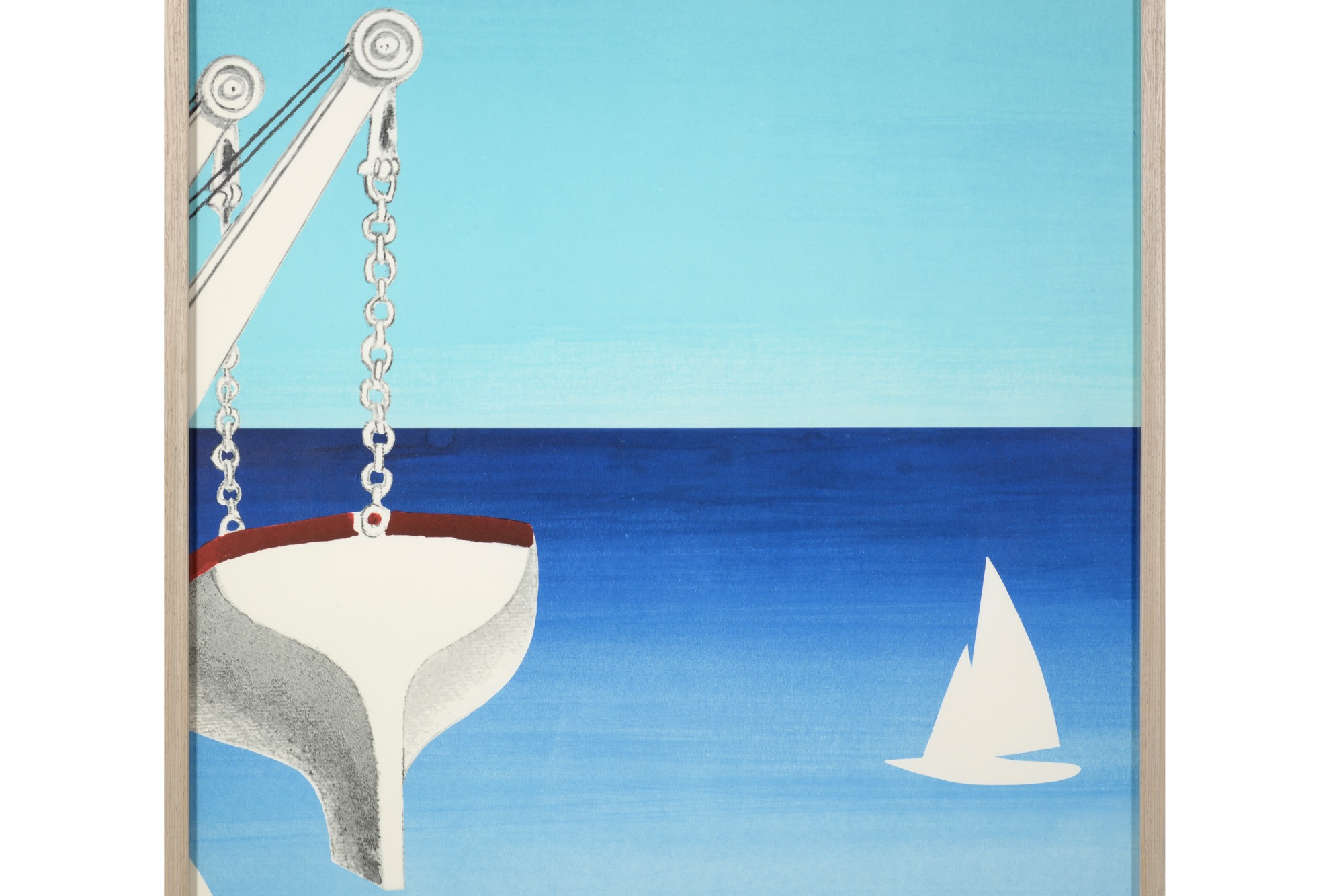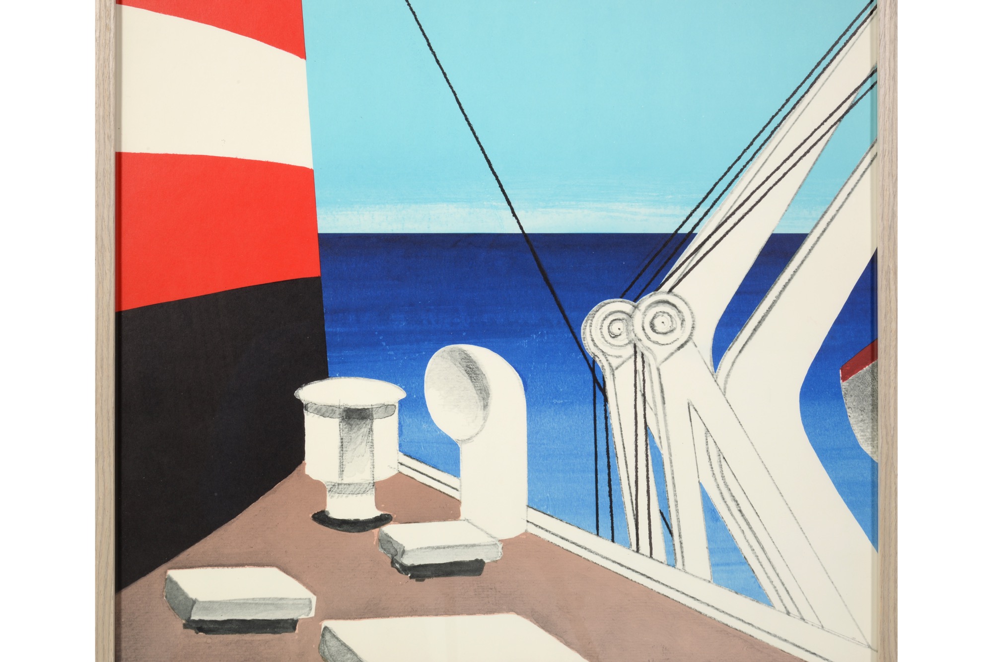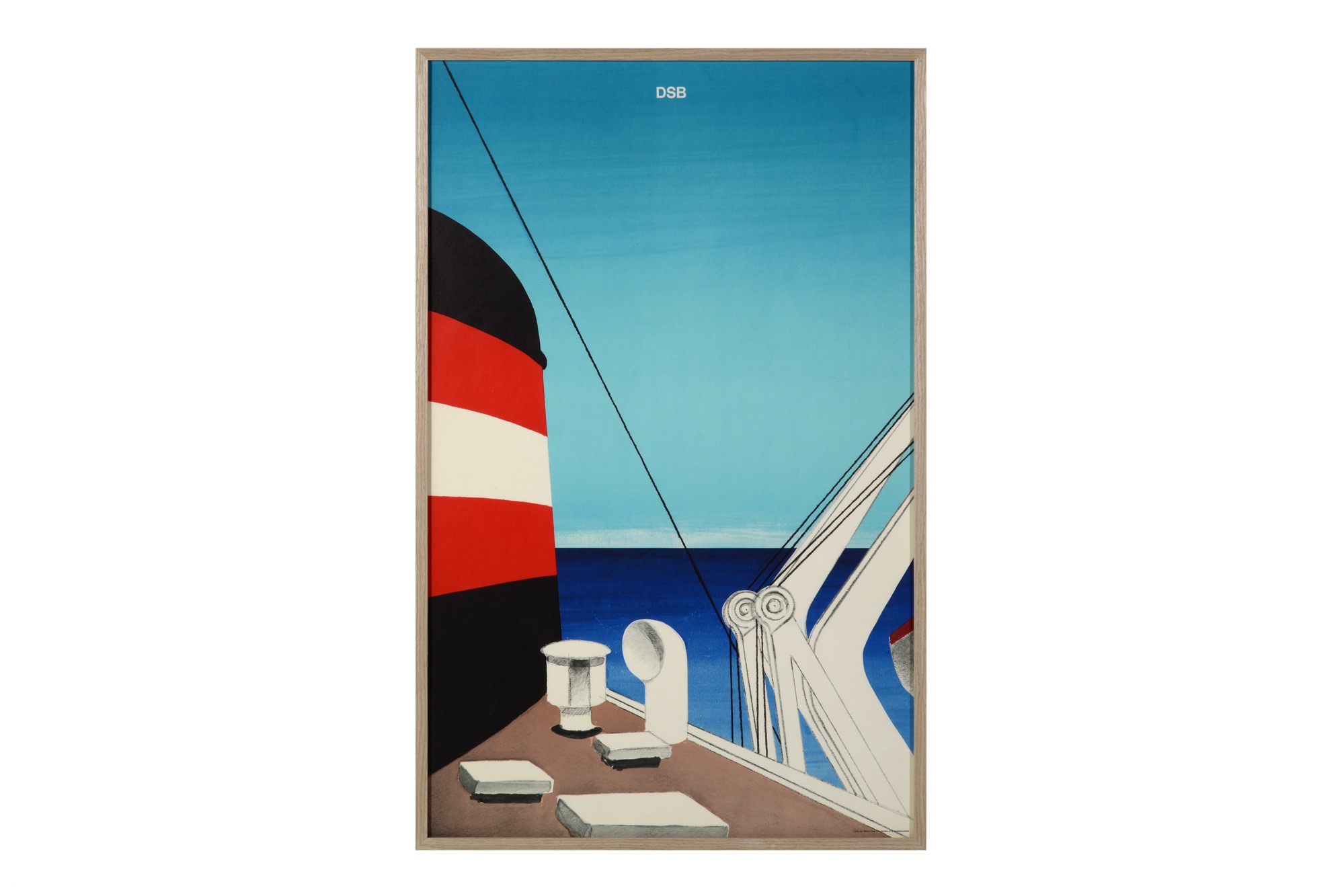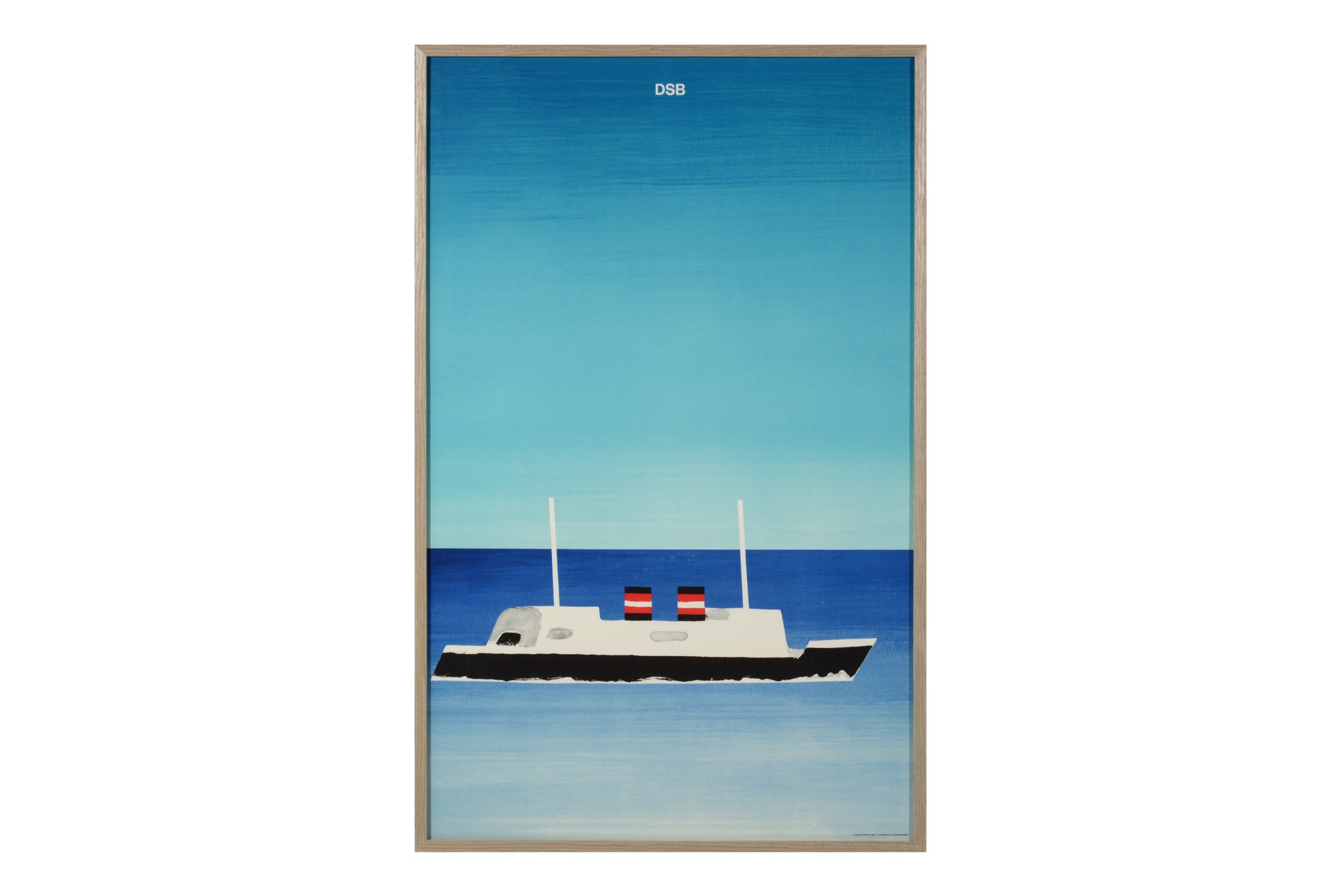 DSB (デンマーク国有鉄道) のポスター6枚綴りの大判作品です。客船から眺める大海原が描かれており、横幅390センチもの大きさと鮮やかな色彩に圧倒されます。コンディションは良好で、印刷はオフセットリトグラフのようでとても綺麗な印刷です。