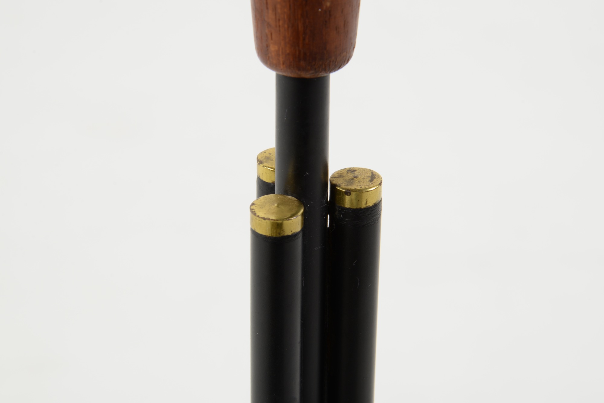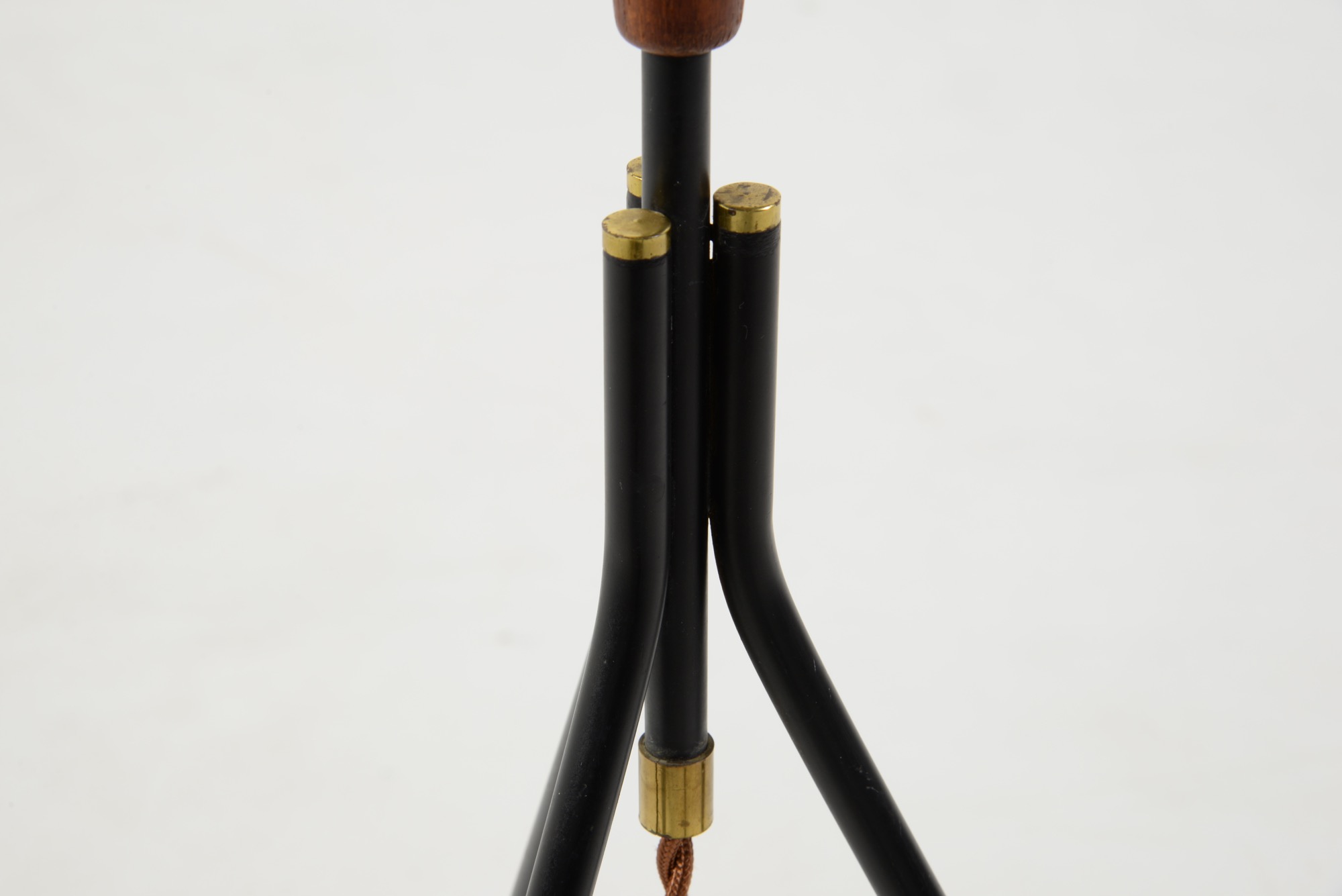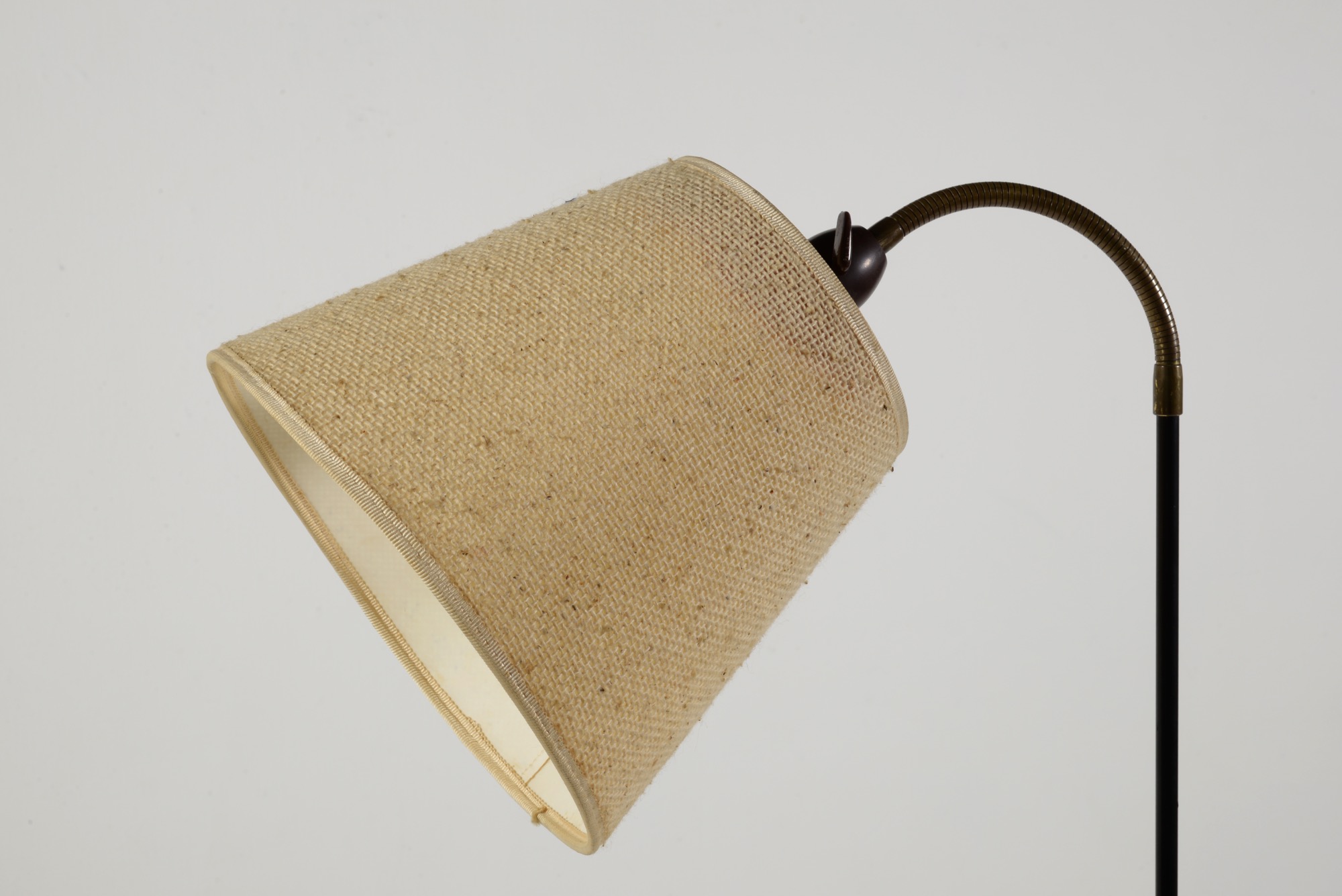 デンマーク製、1950年代のリーディングランプ、椅子に座って本を読むときに使う照明です。移動させるためにフレームが持ちやすいようチーク材が巻かれており、首は自在に動かせます。シェードの張替えも可能です。
