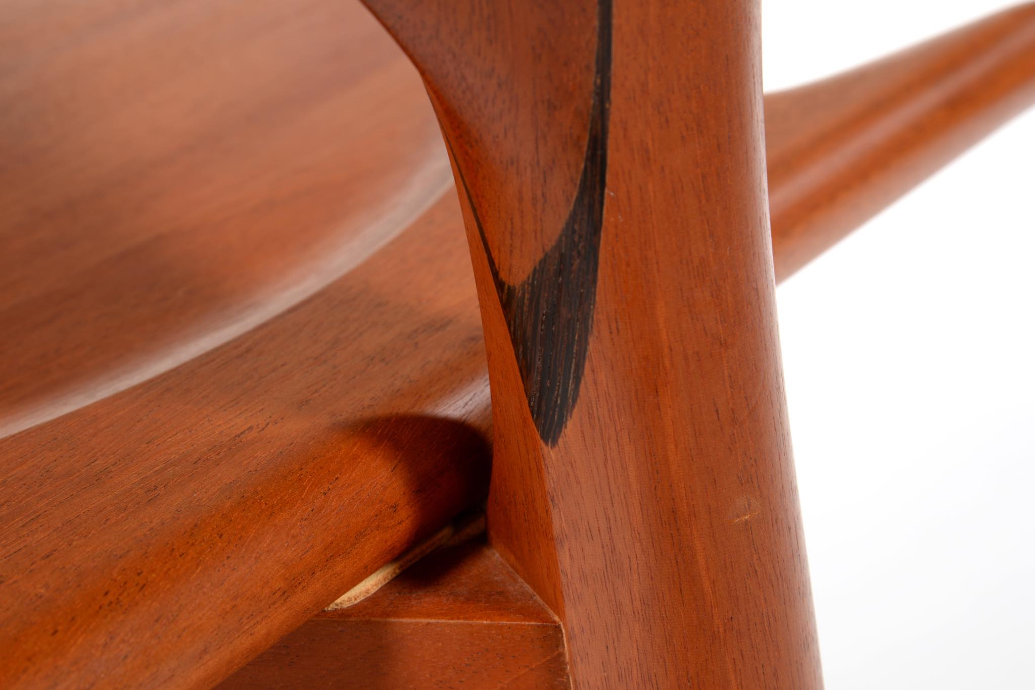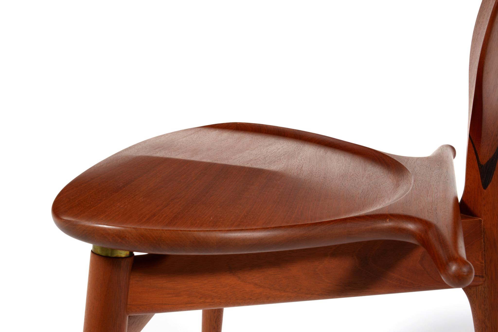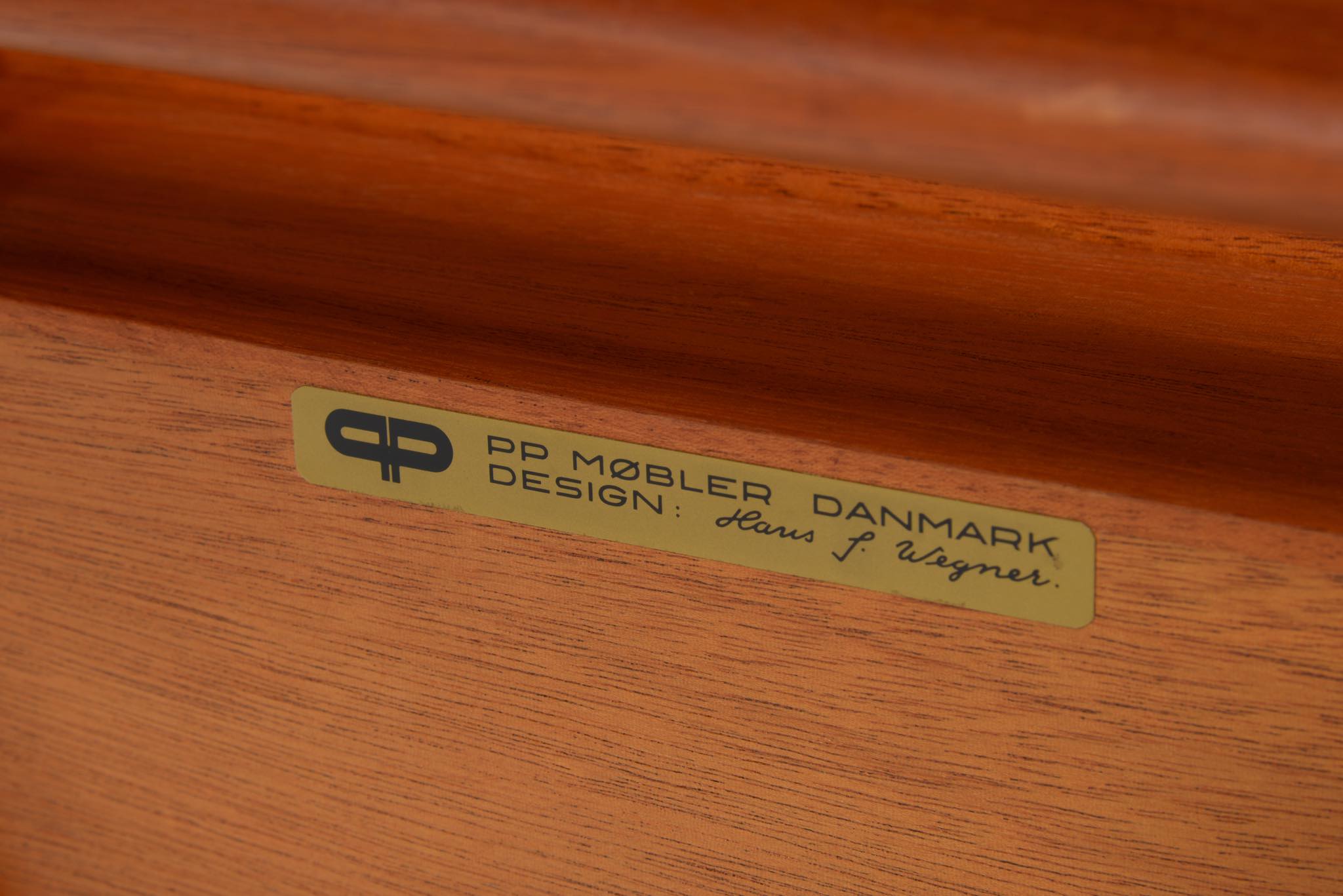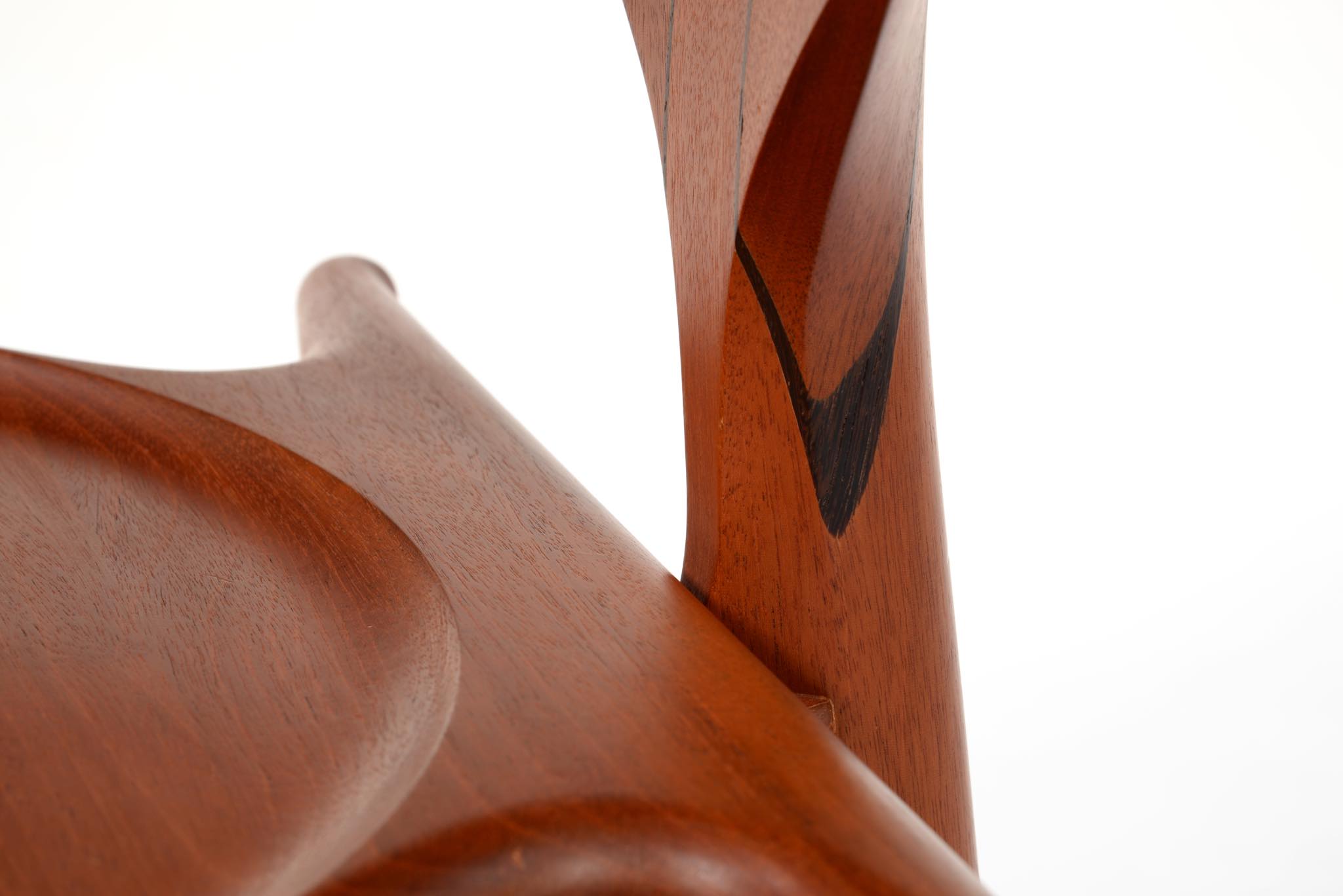 家具職人のハンス・ウェグナー、建築学教授のスティーン・アイラー・ラスムセン、デザイナーのカイ・ボイスンの三人によって衣類の収納方法について協議したことががきっかけとなり、考案された名作椅子”ヴァレットチェア”。笠木はハンガー、座を起こせばパンツが掛けられ、座の下のボックスへは小物も入れられるというユニークなモデルです。寝室や玄関に、あるいはオフィスの隅に映える一脚です。こちらは1982年以降にPPモブラー社によって製作されたもので、現在では廃番となっているマホガニー材が用いられています。コンディションは極めて良好です。