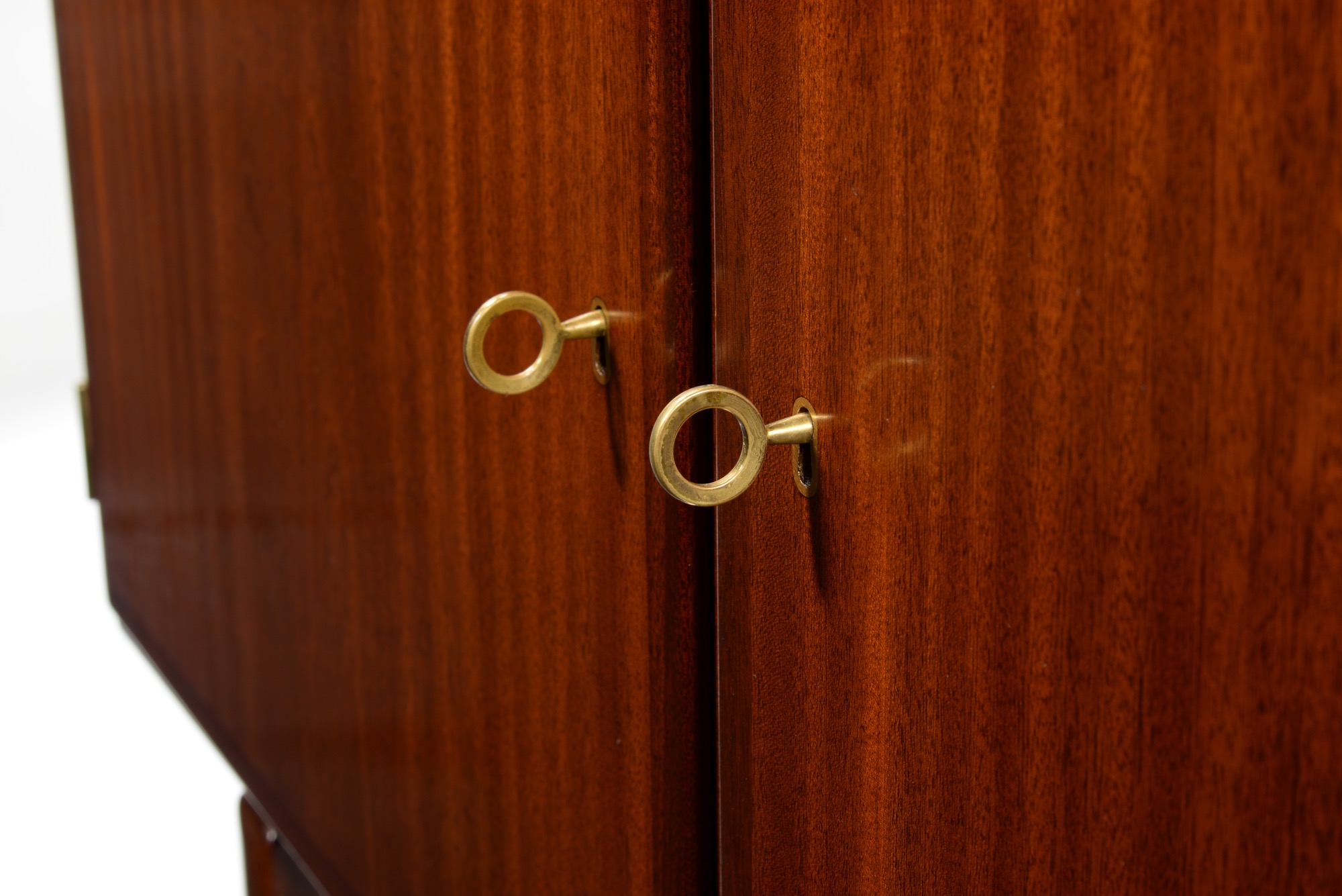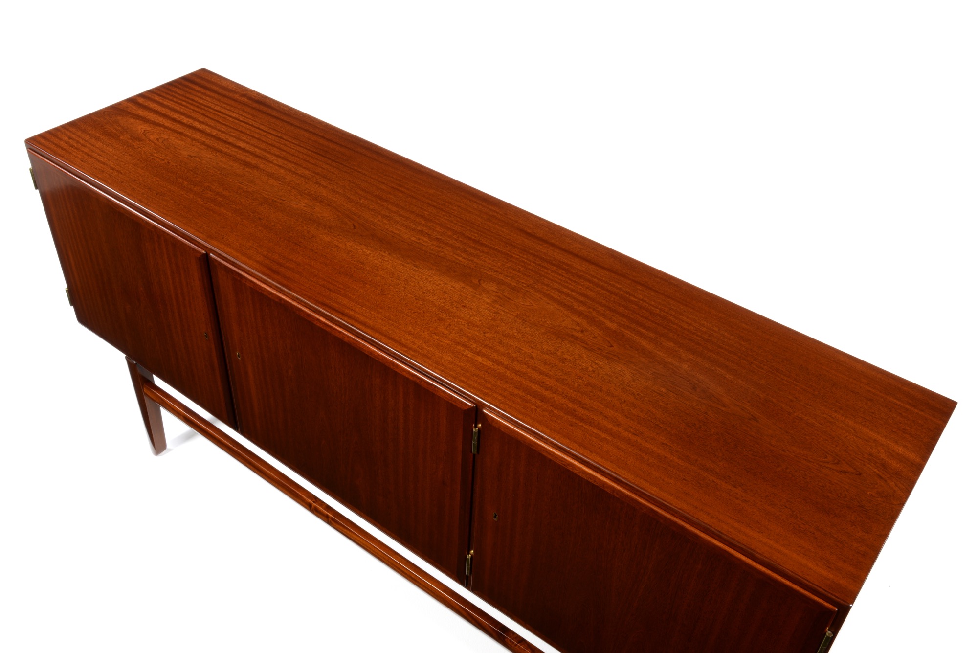 20世紀のデンマークを代表する文豪、Baroness Karen von Blixen-Finecke/カリン・ブリクセンの邸宅にちなんで名付けられた “Rungstedlund/ルンステッドランド” シリーズのサイドボードです。クラシックな趣を有するデザインは当時人気を博したようで、マホガニーを用いたモデルはたくさんの製品が作られました。こちらは明るめの色調のマホガニー材を用いたサイドボードです。かつて猿楽町のデンマーク王国大使館でもこのモデルが使われていました。コンディション、木取り、共に良好です。