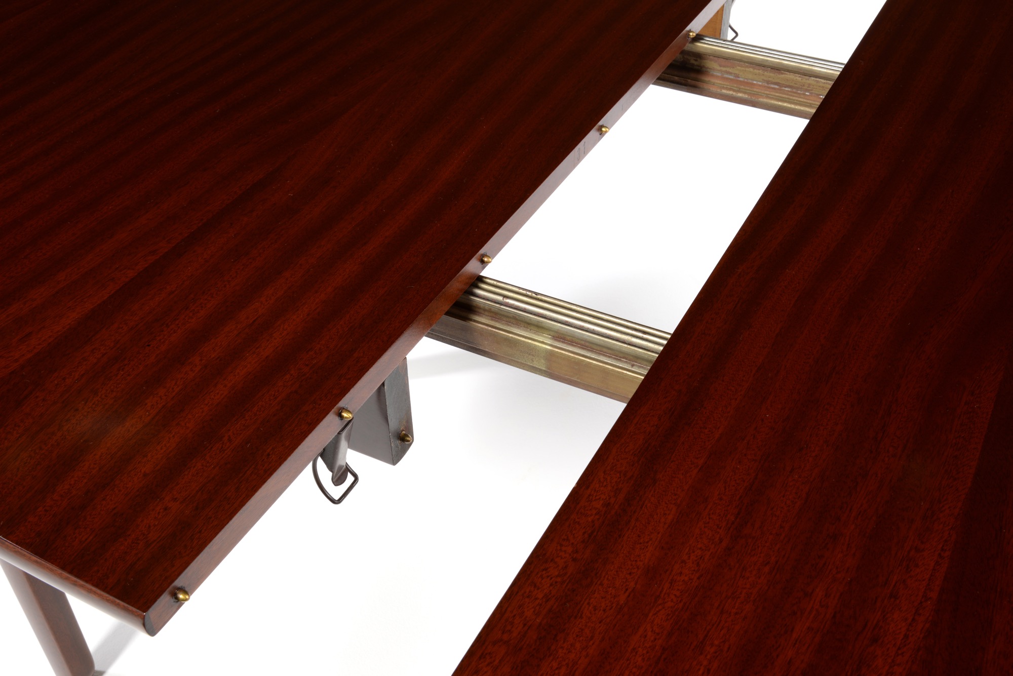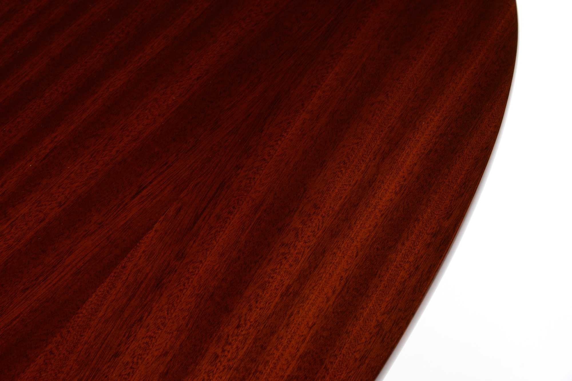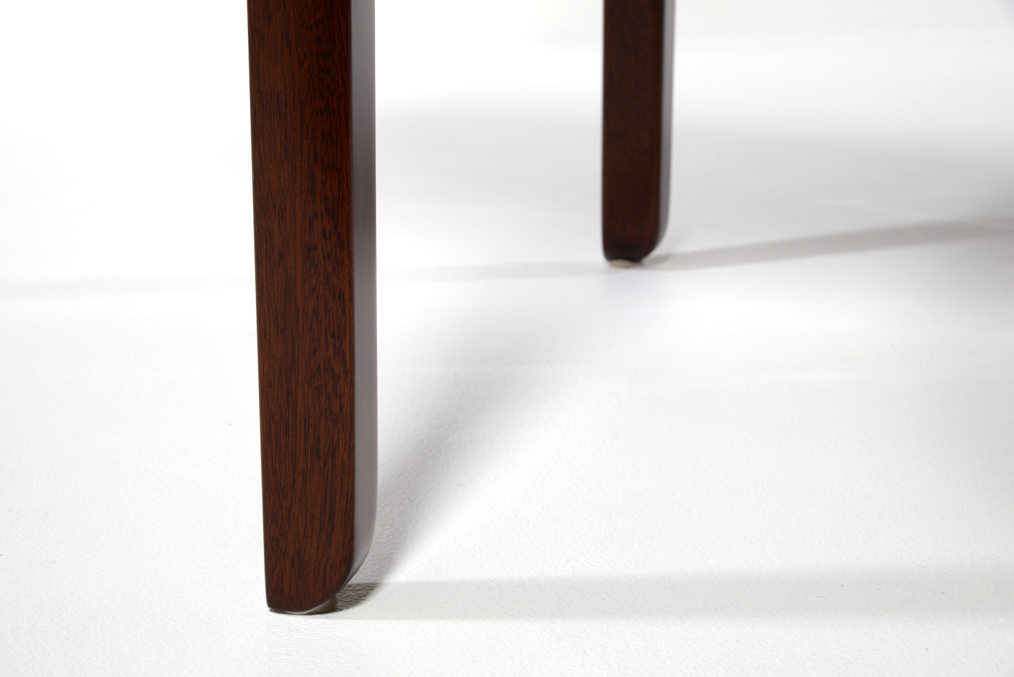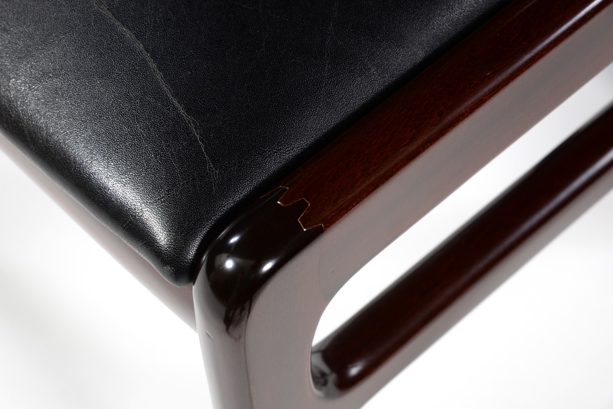 20世紀のデンマークを代表する文豪、Baroness Karen von Blixen-Finecke/カリン・ブリクセンの邸宅にちなんで名付けられた “Rungstedlund/ルンステッドランド” シリーズのダイニングセットです。クラシックな趣を有するデザインは当時人気を博したようで、マホガニーを用いたモデルはたくさんの製品が作られました。こちらはエクステンション(伸張式)のテーブルと椅子6脚との7点セットとなります。写真での座面は古い黒色皮革が張られたままの状態で、使い込まれた雰囲気はヴィンテージ感を醸していますが、お好きな生地や皮革で張り替えることも可能です。テーブルのエクステンションは2枚のリーフが備わり、最大で275センチまで伸ばすことができます。
