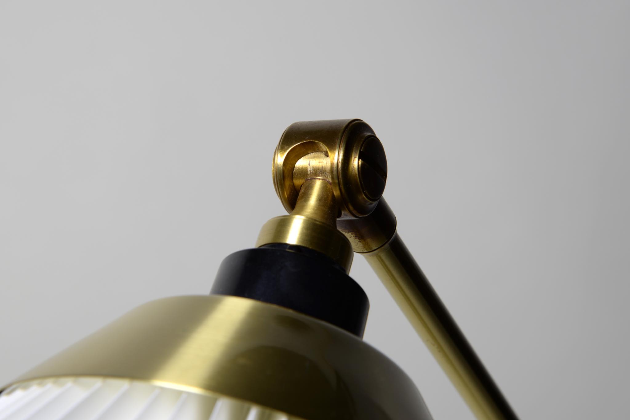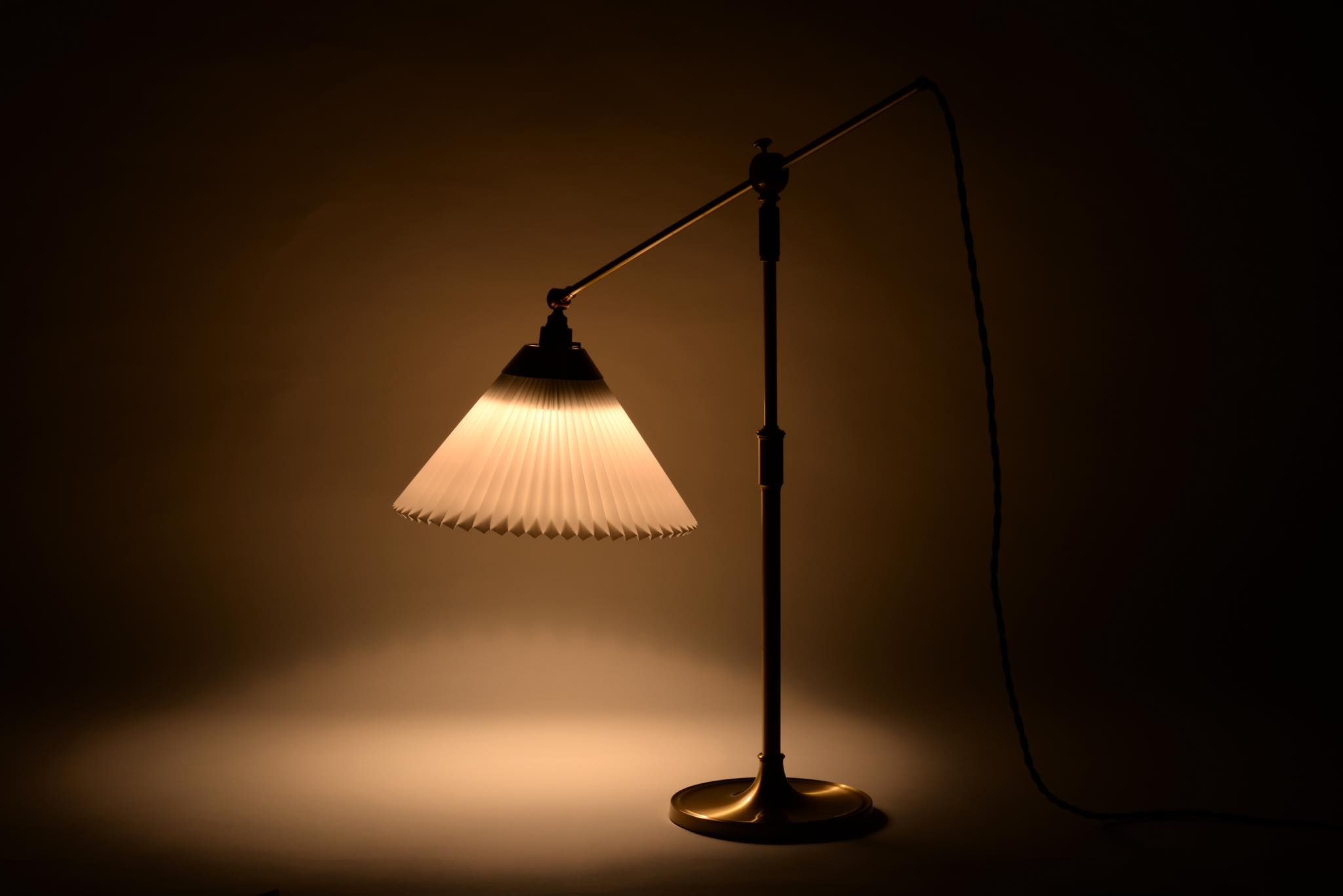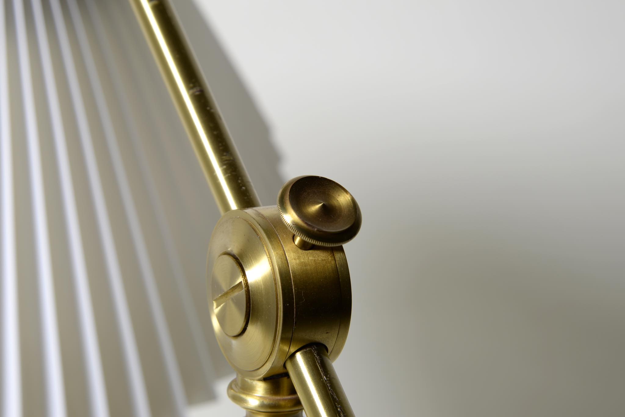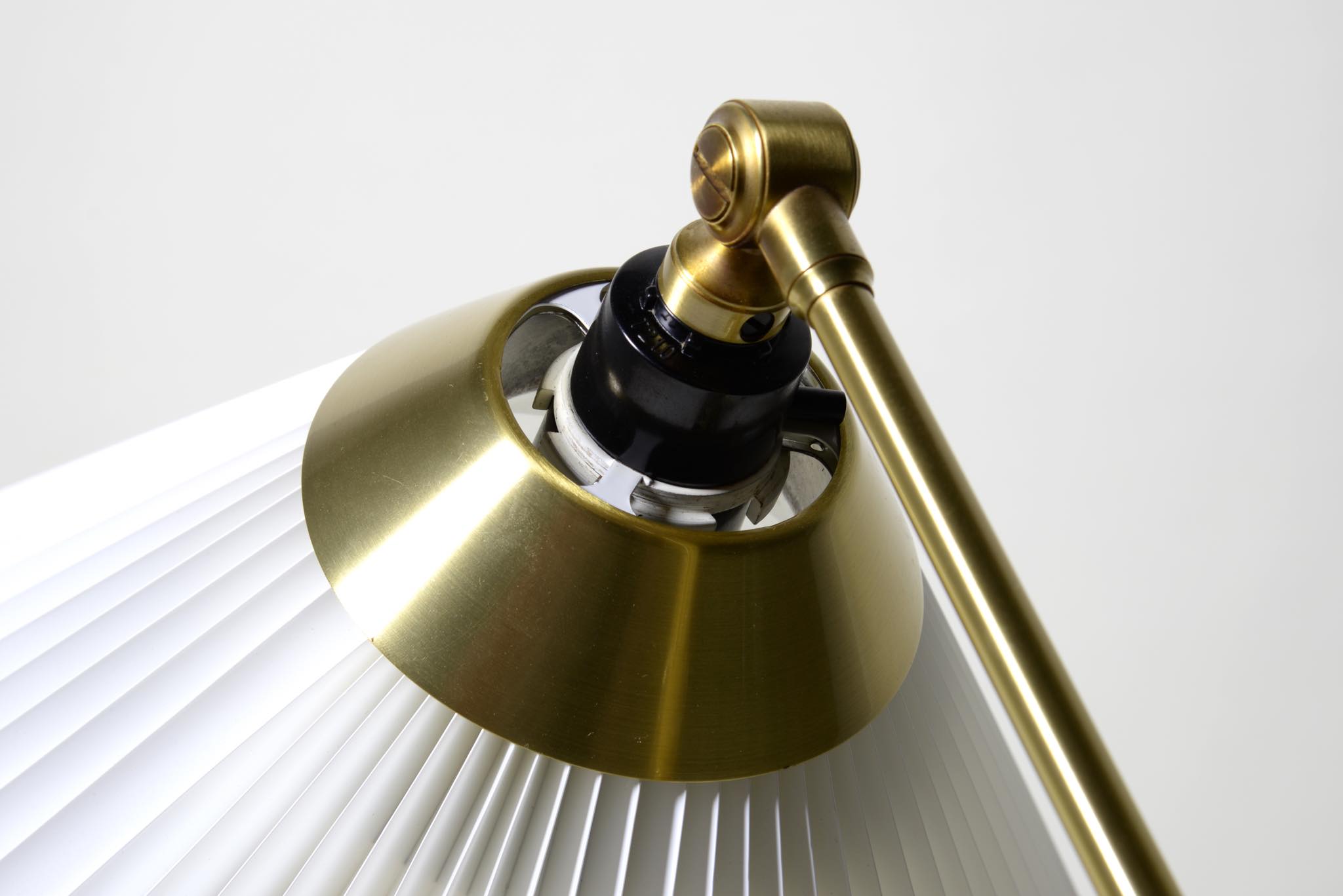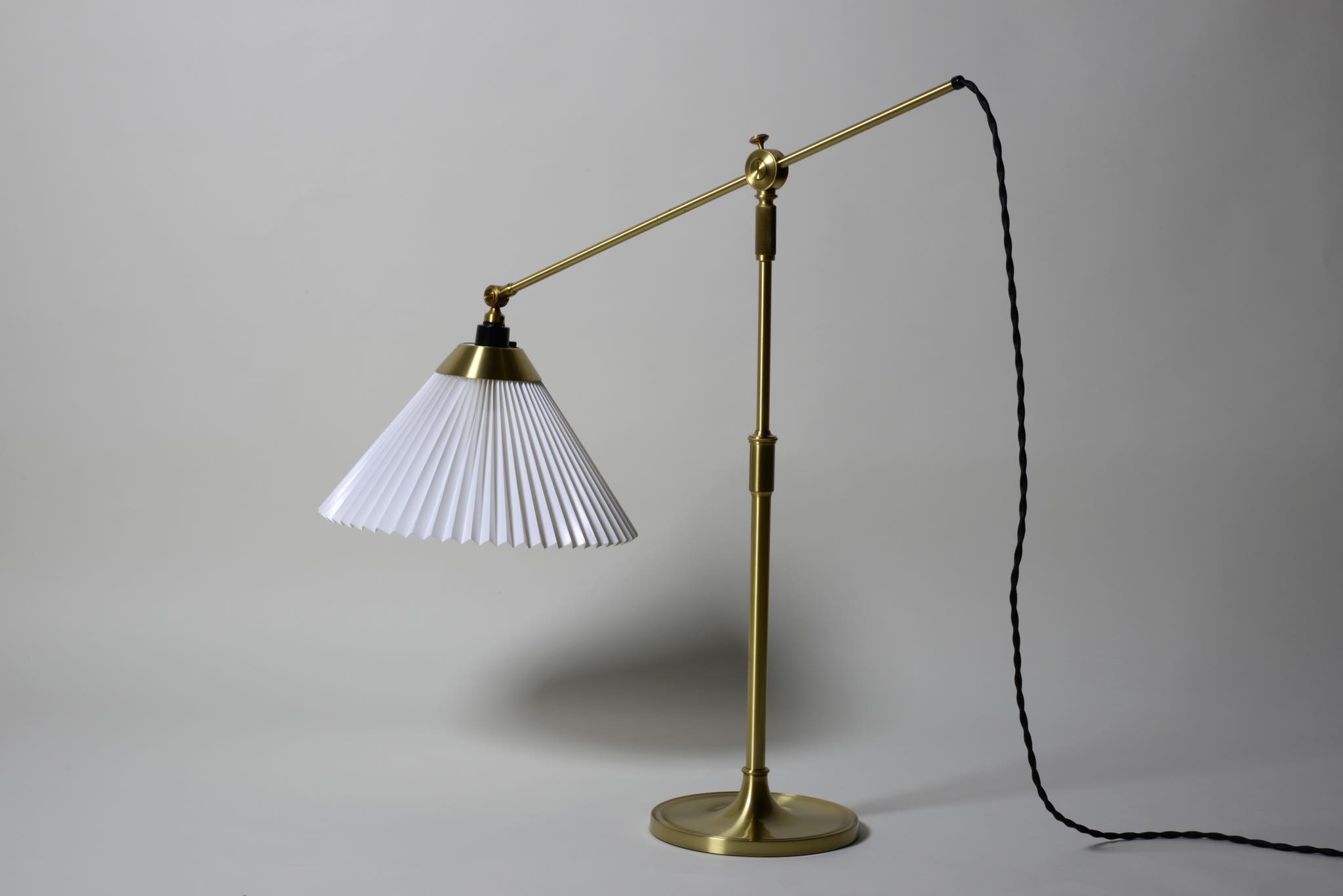 デンマークの照明ブランド、レ・クリント社製のテーブルランプです。真鍮のフレームに樹脂製のシェードが備わり、十文字に交わるフレームの構造が特徴的なモデルです。目立った傷や劣化も見られず綺麗な状態です。