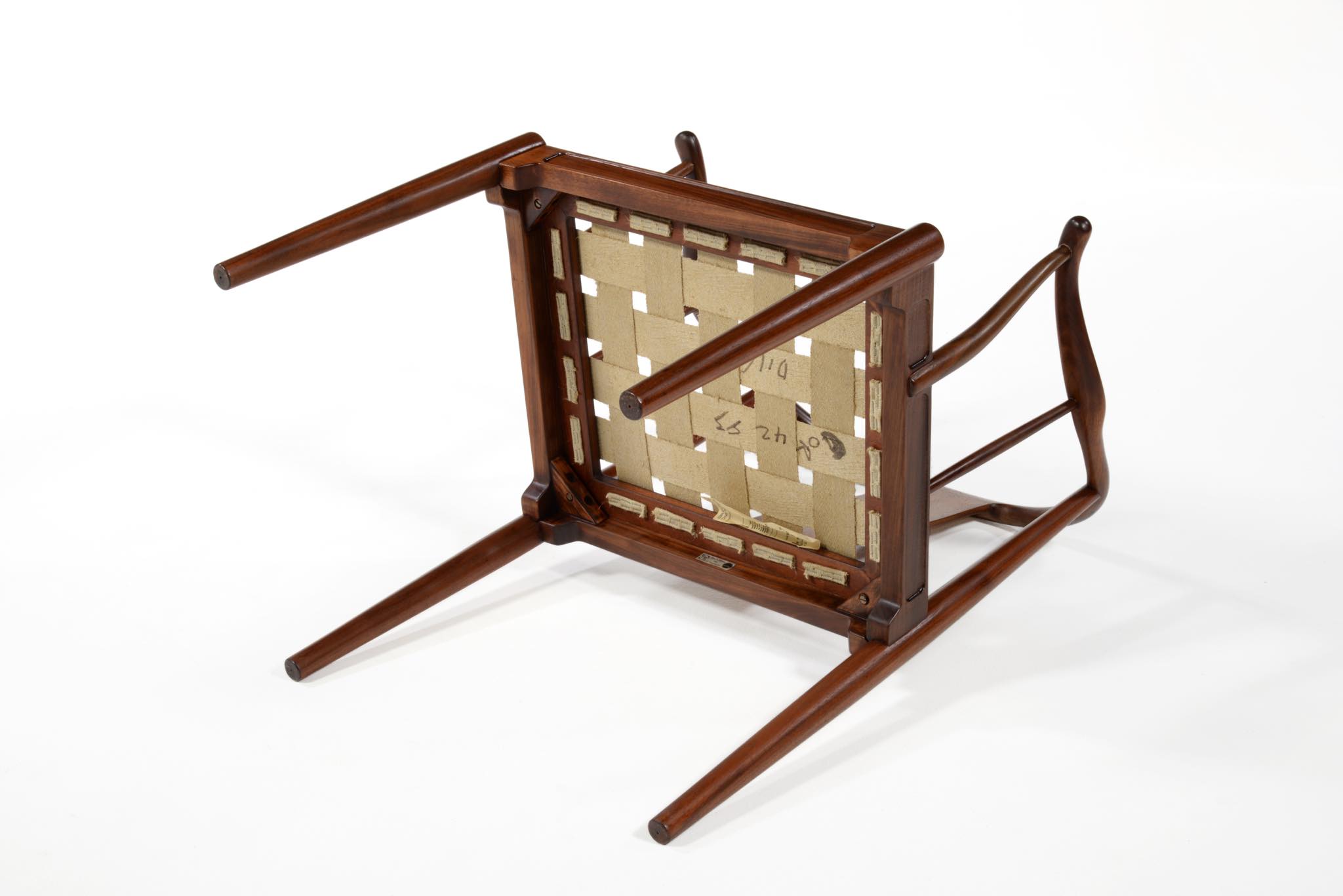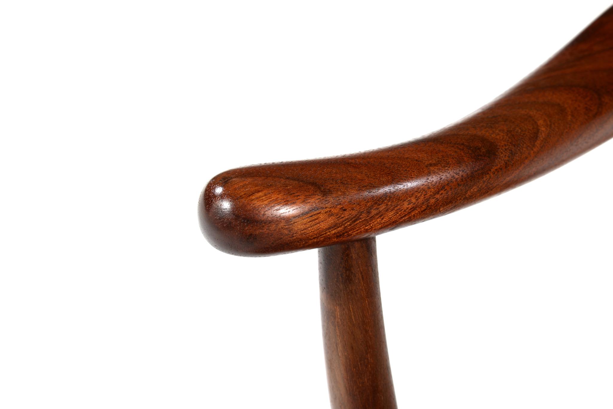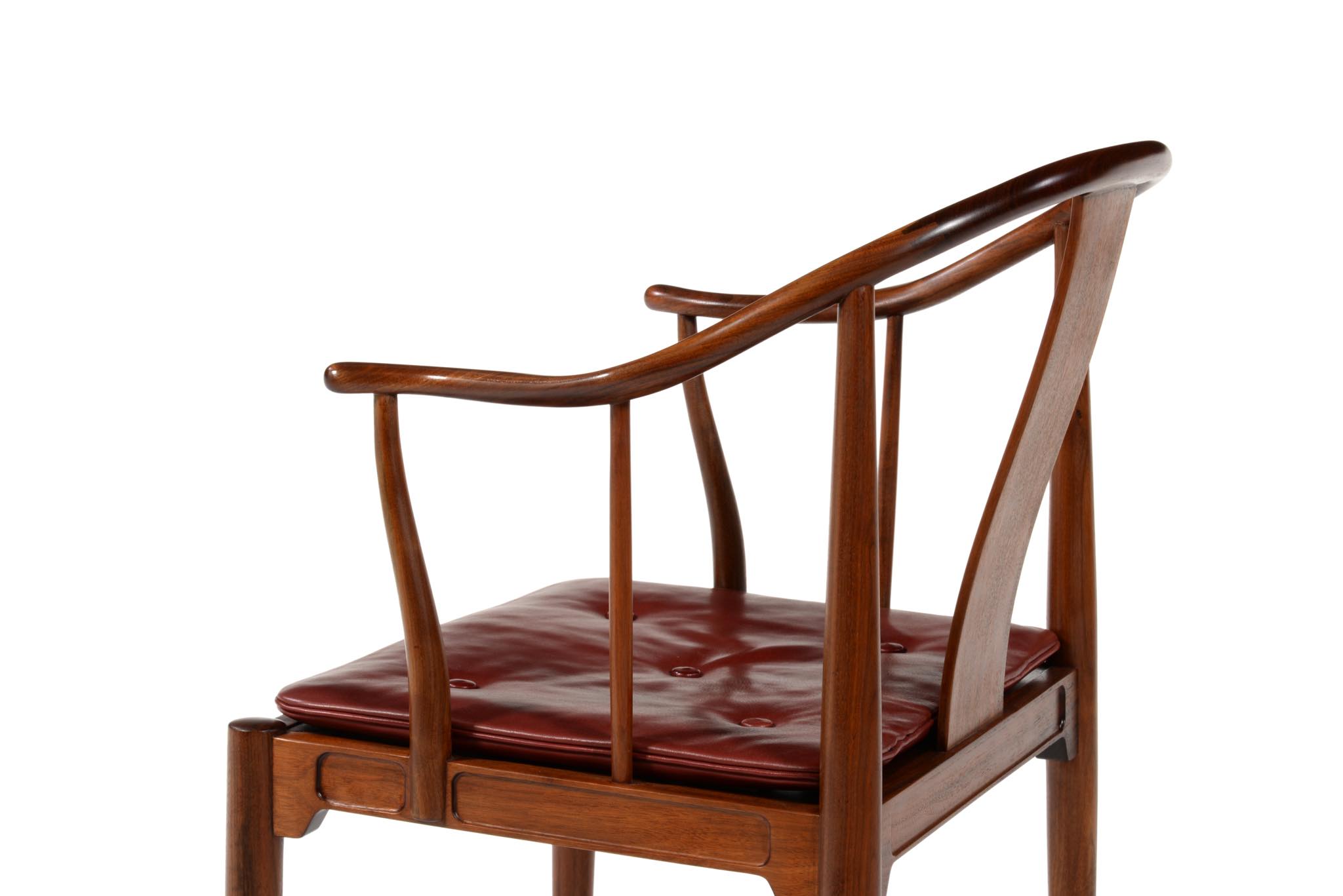 デンマークの家具デザイナー、ハンス・ウェグナーによる代表作のひとつ ”チャイナチェア” 同ロットで作られたペアとなり、1960~70年代頃に作られたものと思われます。コーカサス地方原産と思しきウォールナット材を用いたモデルは比較的希少なようで、シートは後にソーレンセンレザー社製の皮革”エレガンス”にて張られています。木取り、皮革、コンディション全て良好です。