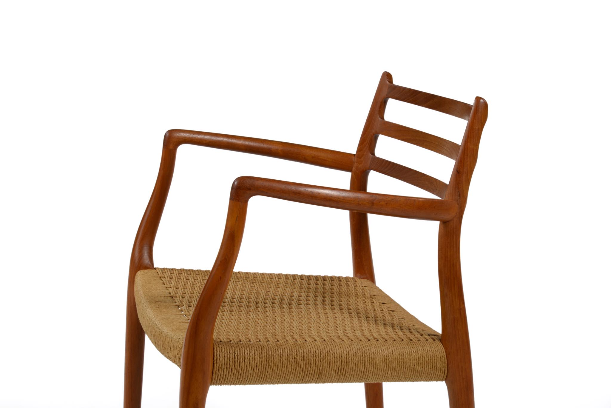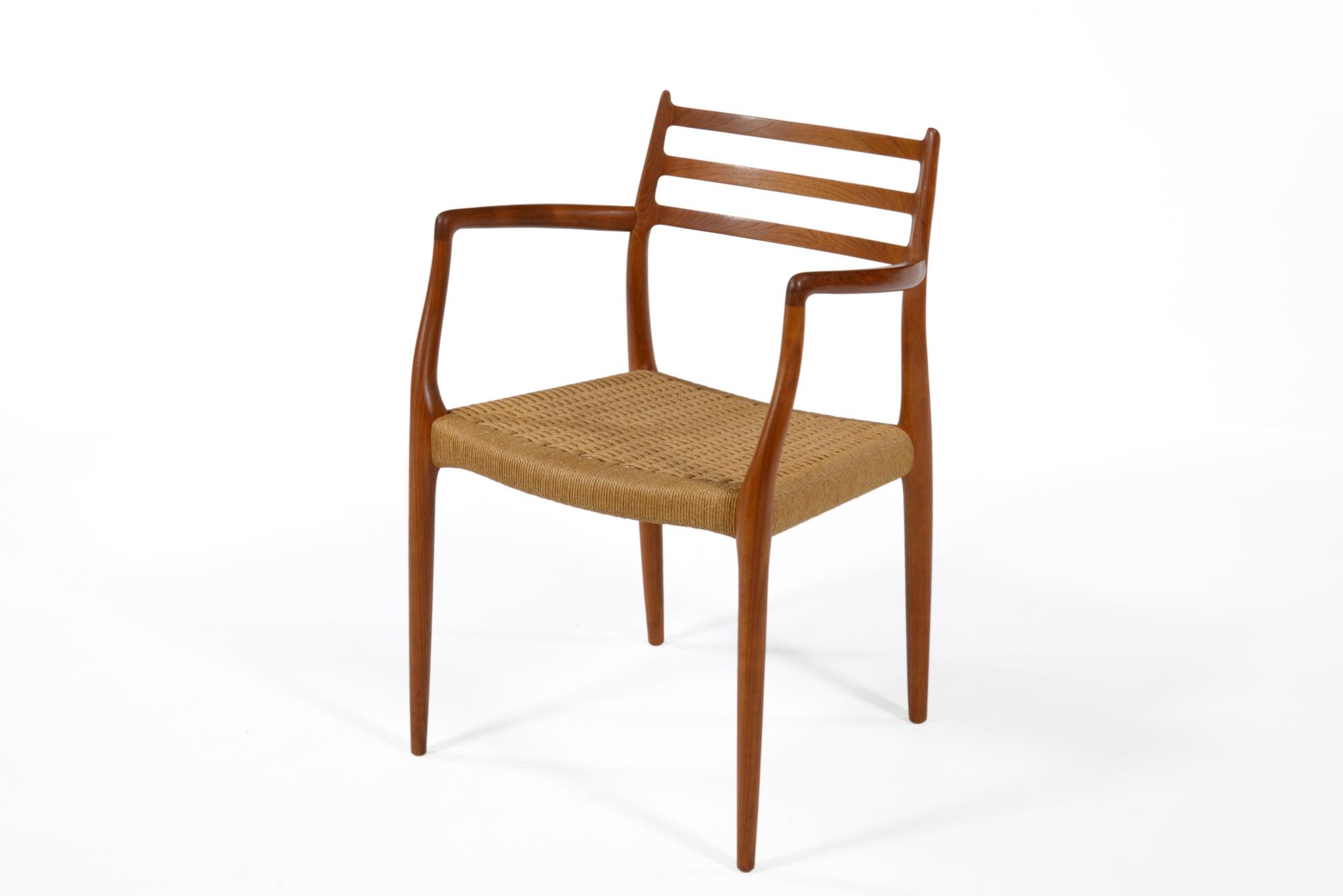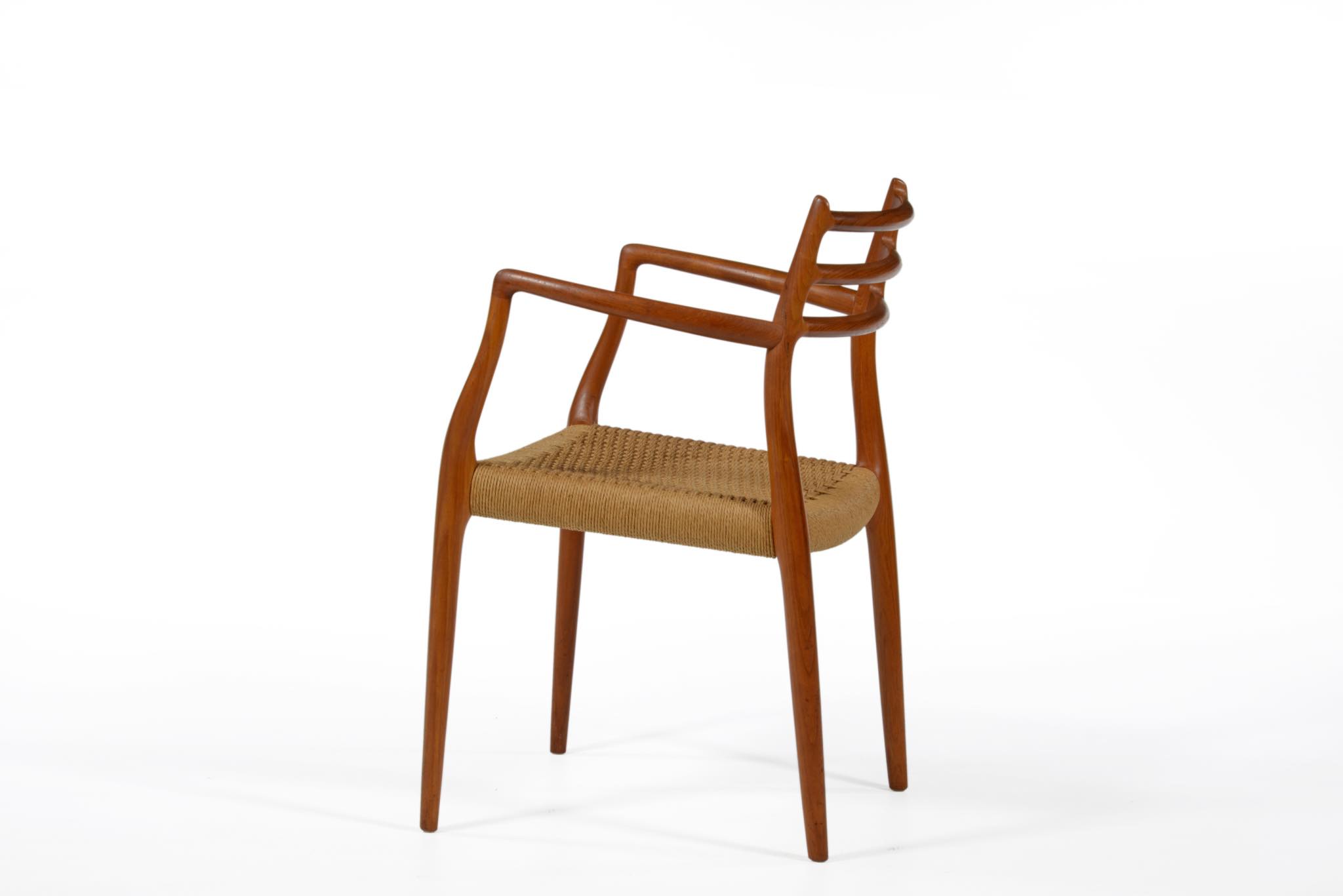 N.O. Møller/ニルス・モラーによる名作椅子 "Model 62" アームチェアです。チーク材のモデルで良い木取りが成されています。ペーパーコードに擦れや解れがありますが、このまま当面お使いいただけそうです。価格には将来的な張り替え費用を含みますので、いつでもお申し付けください。