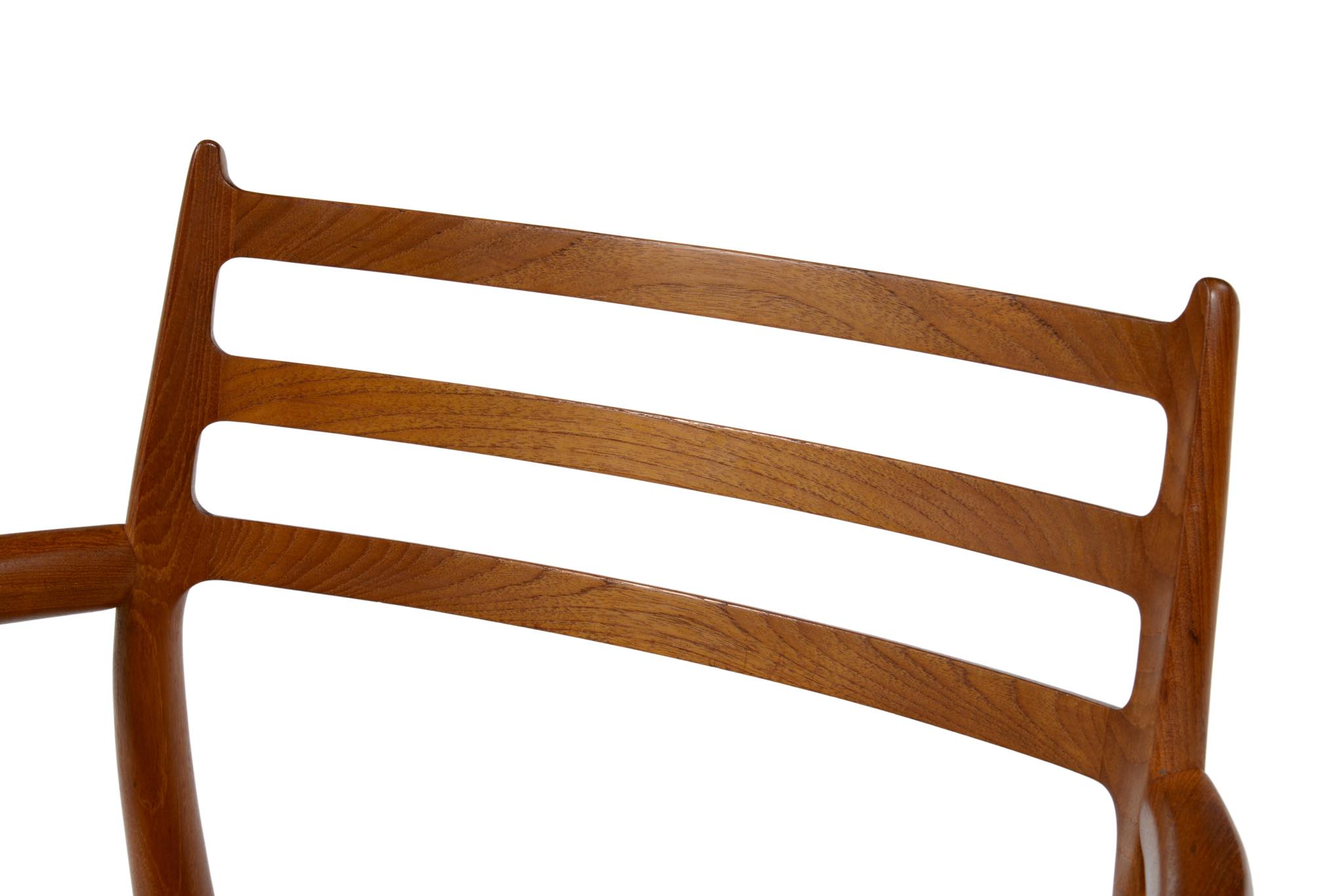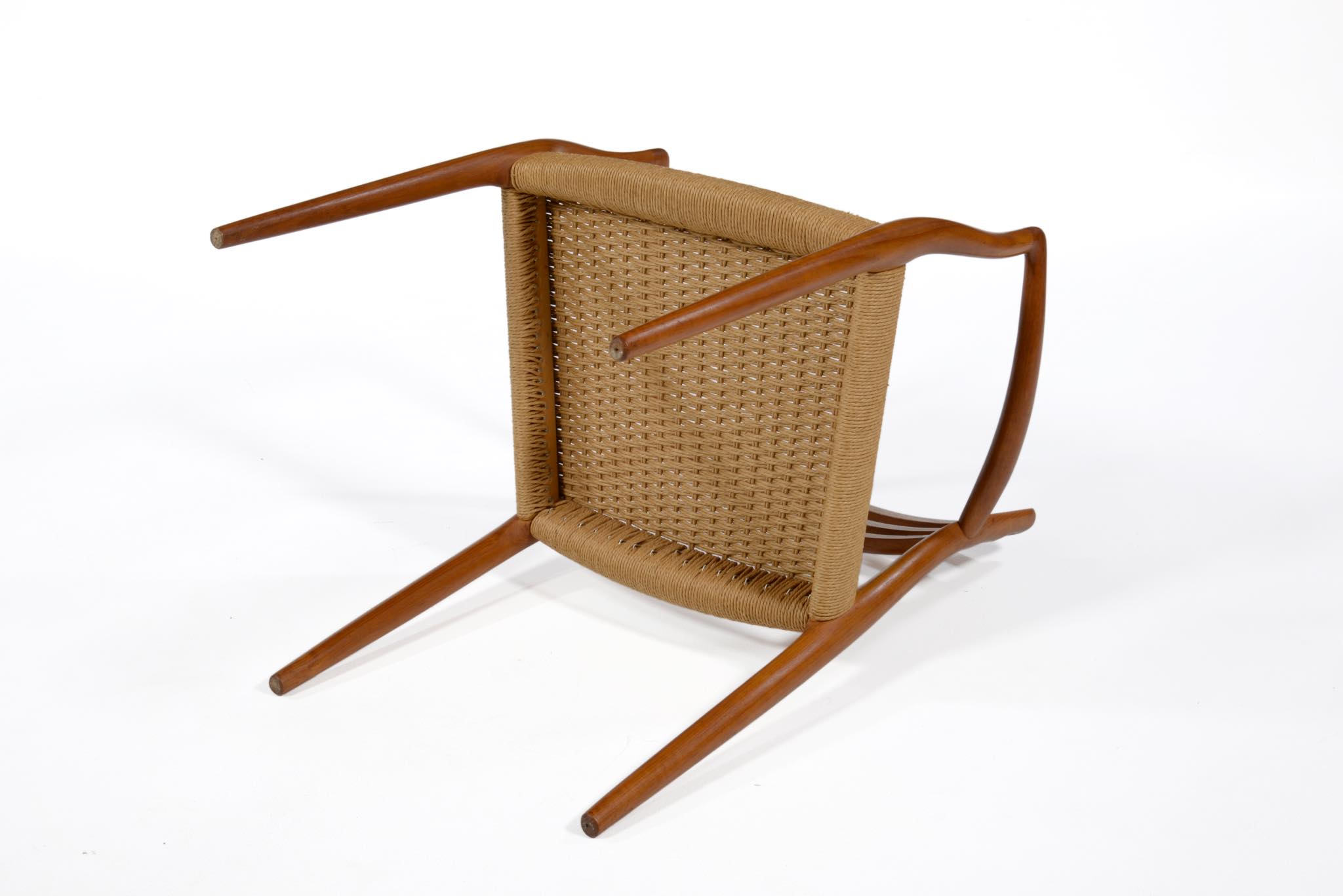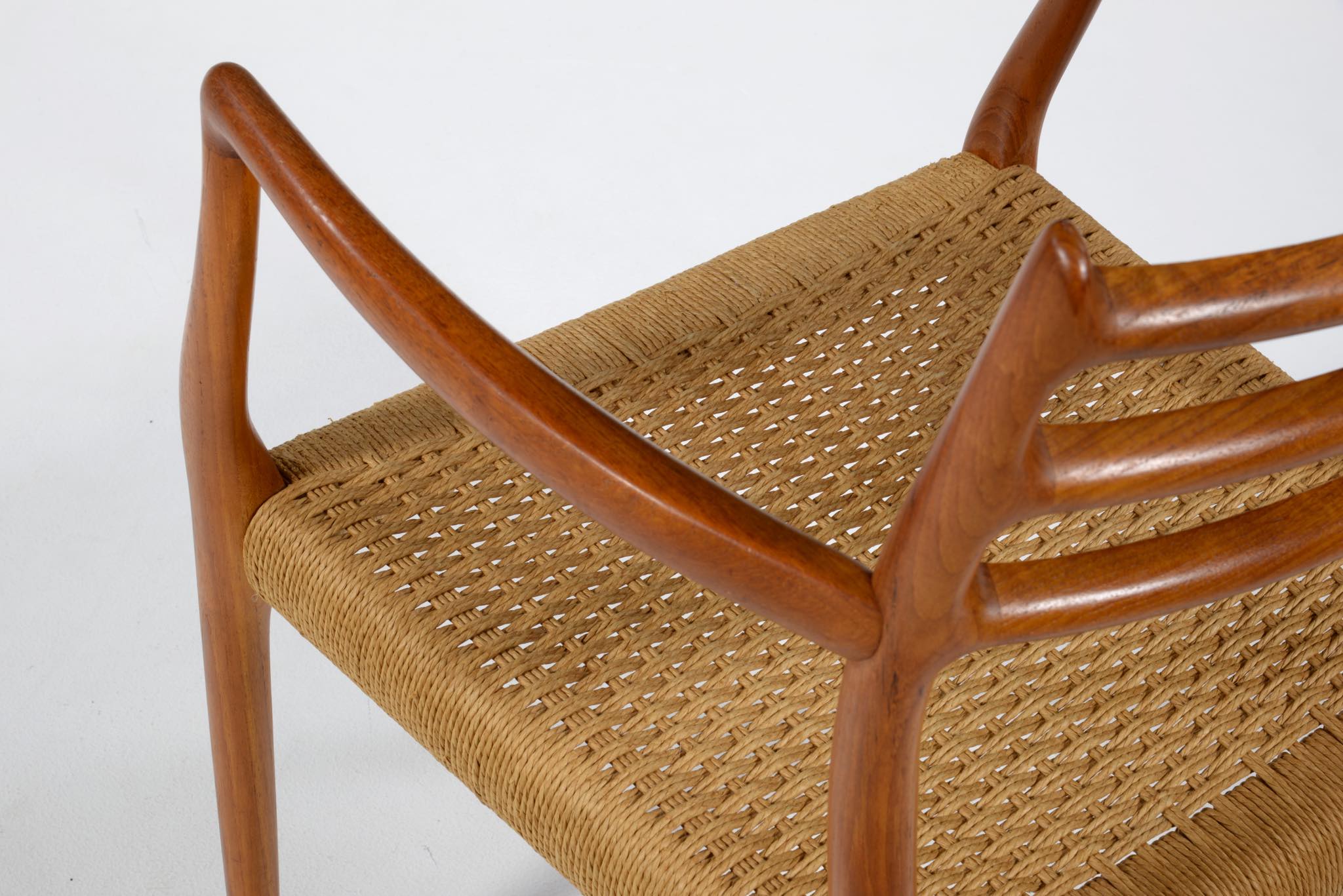 N.O. Møller/ニルス・モラーによる名作椅子 "Model 62" アームチェアです。チーク材のモデルで良い木取りが成されています。ペーパーコードに擦れや解れがありますが、このまま当面お使いいただけそうです。価格には将来的な張り替え費用を含みますので、いつでもお申し付けください。