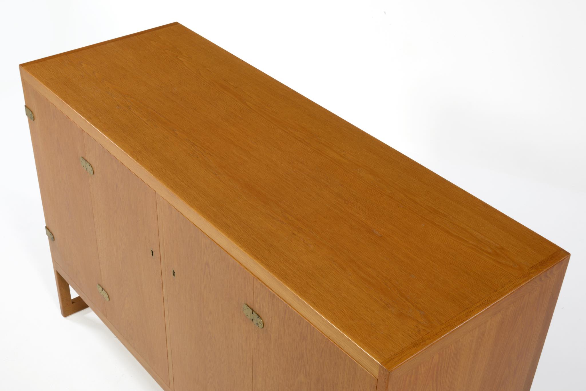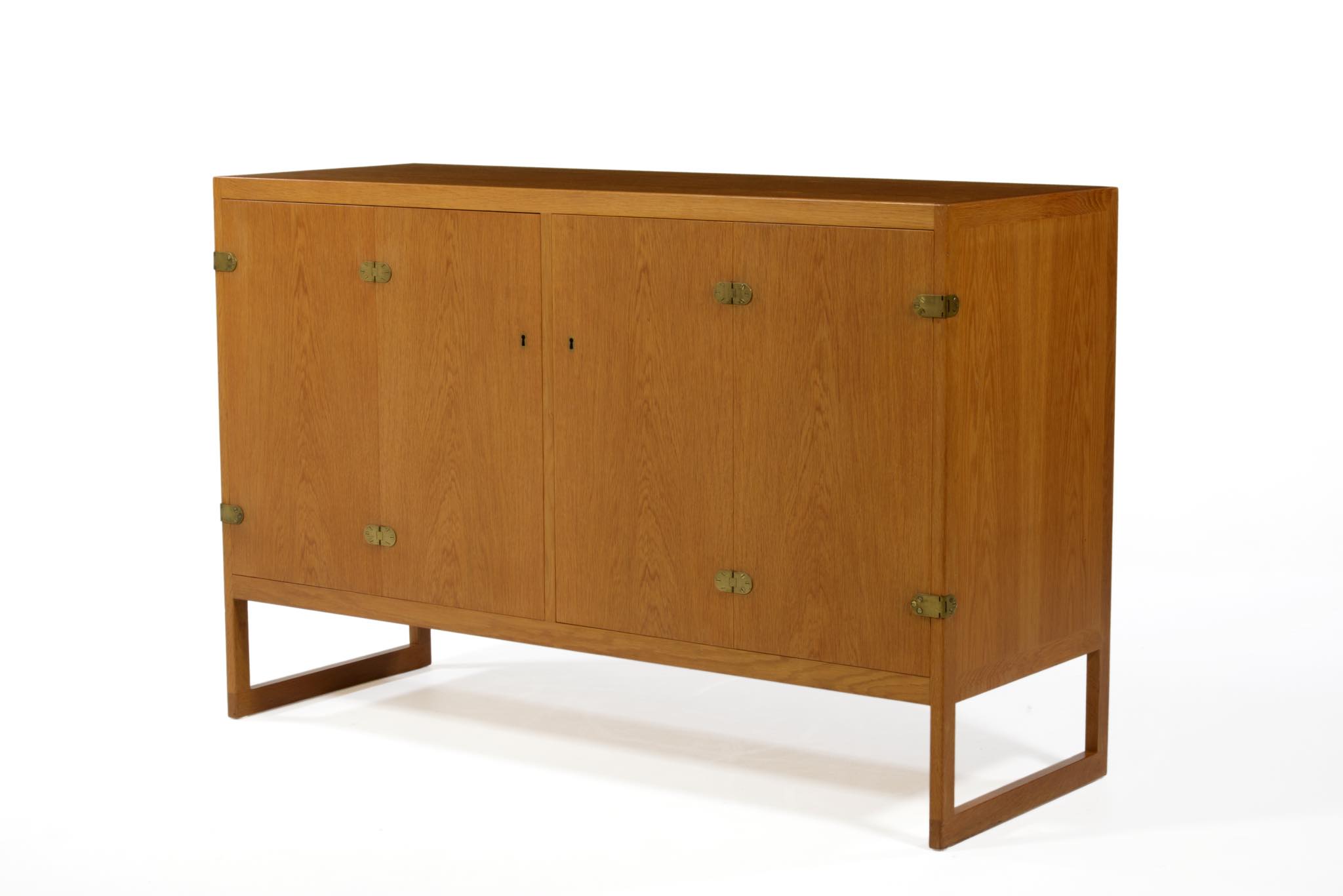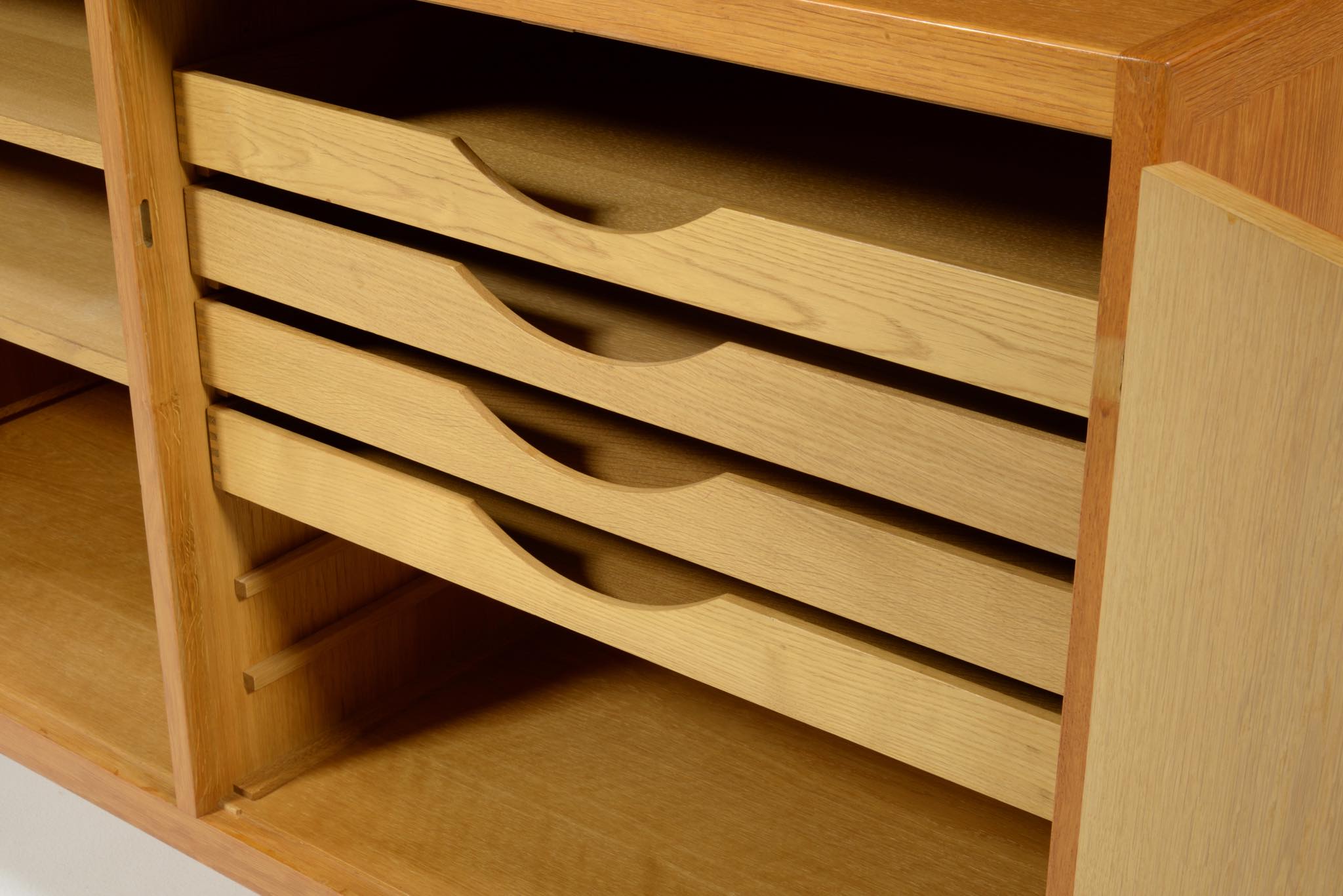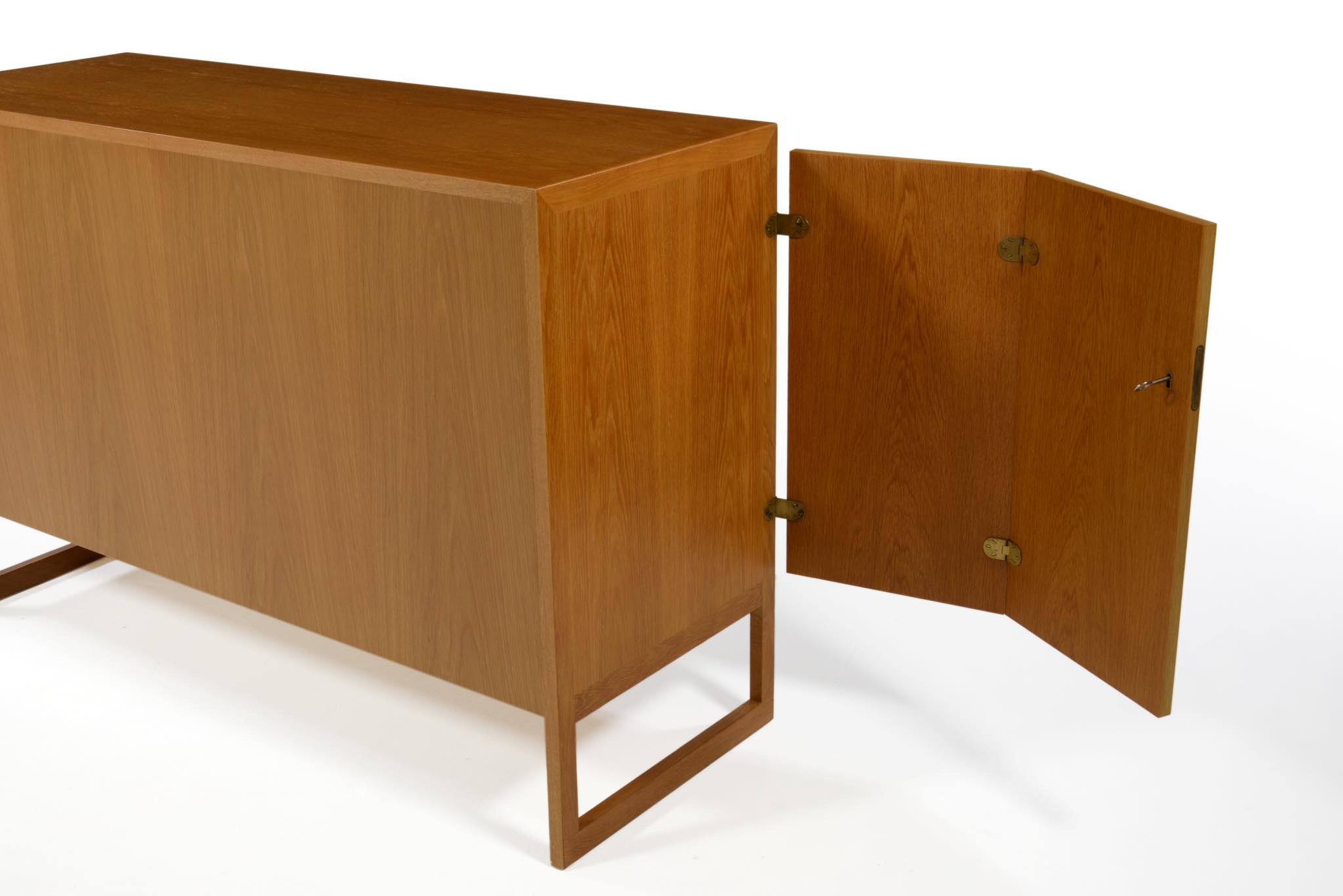 Børge Mogensen/ボーエ・ モーエンセンによる "BM57" サイドボードキャビネット、オーク材の仕様です。蝶番のついた折扉は使いやすく、扉を開く際に場所を取りません。背板は後年にオークの突き板が張られており、間仕切りとしての設置も可能です。全体に綺麗な状態です。