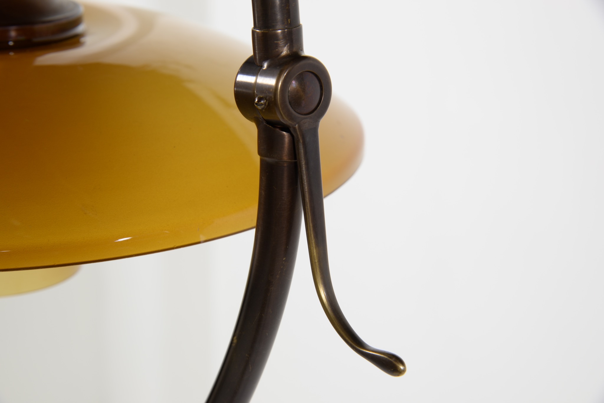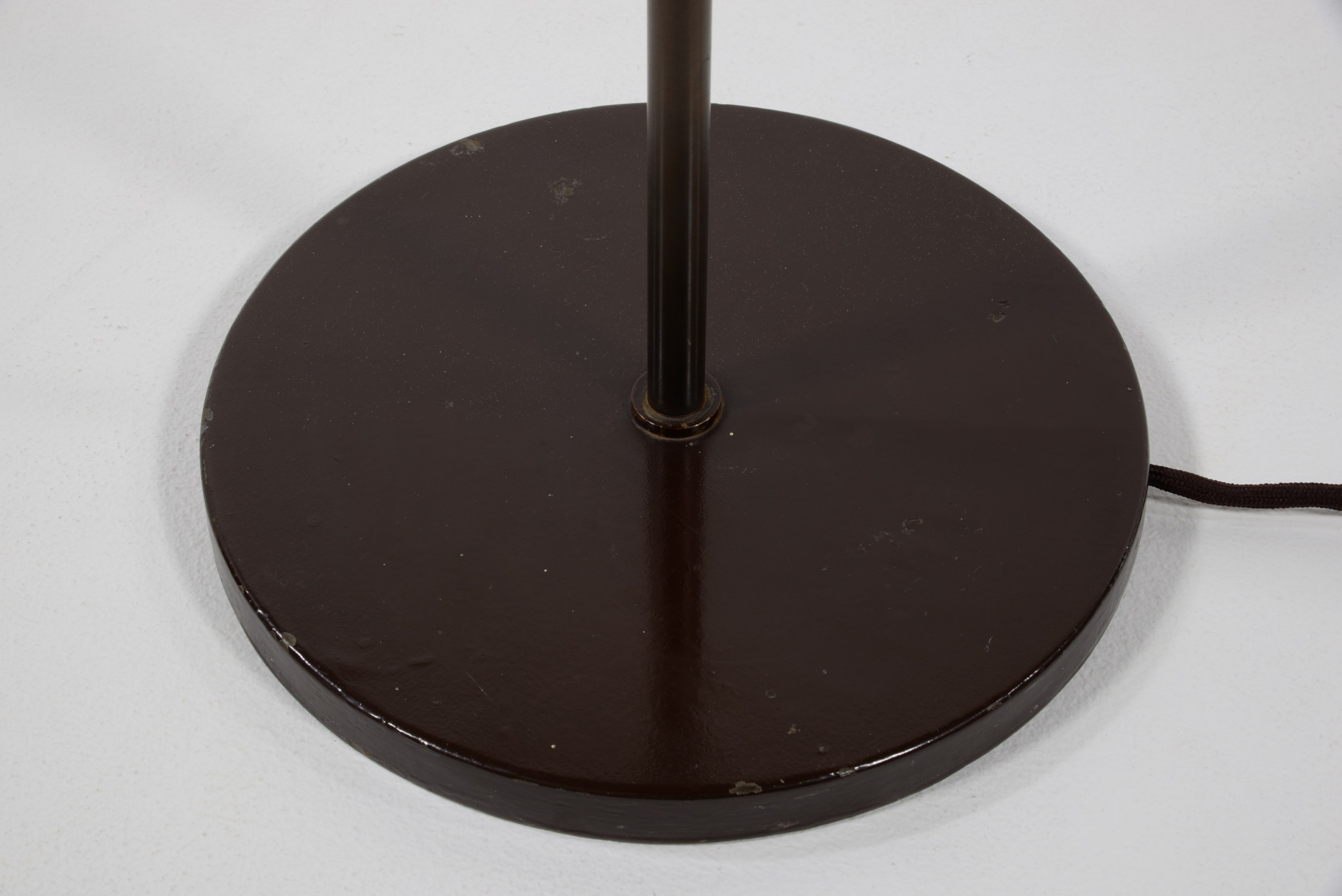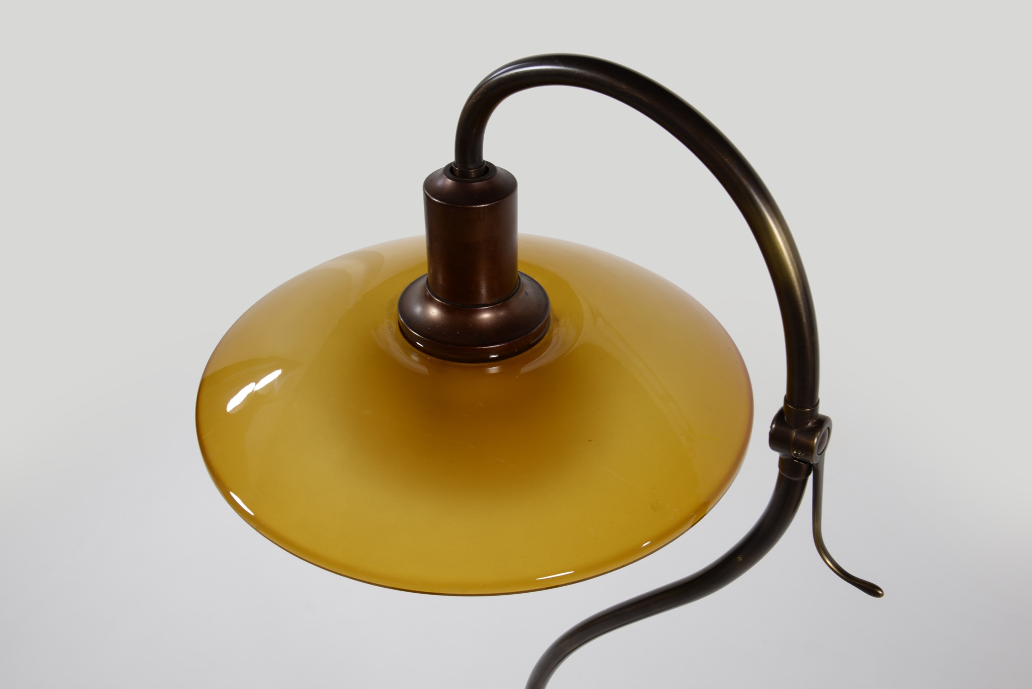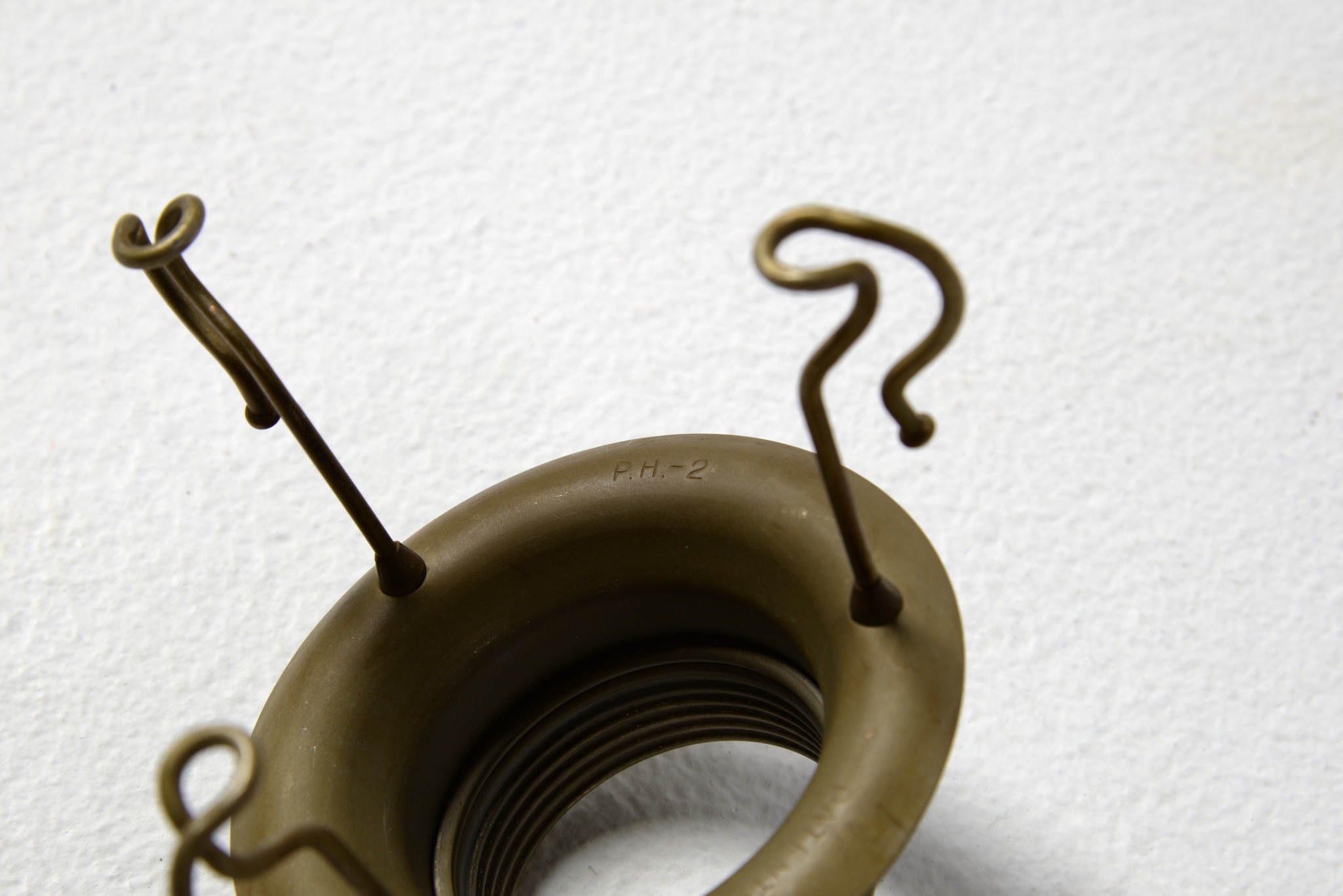 デンマークのデザイナー、Poul Henningsen/ポール・ヘニングセンによってデザインされたPH3/2フロアーランプです。通称”クエスチョンマーク”と呼ばれるモデルで、文字通り逆U字型のフレームにシェードを吊るデザインです。リーディングに使いやすいよう、首を左右に倒す事が可能です。シェードはボトムボウルを備えたオリジナルで、コンディションは良好です。