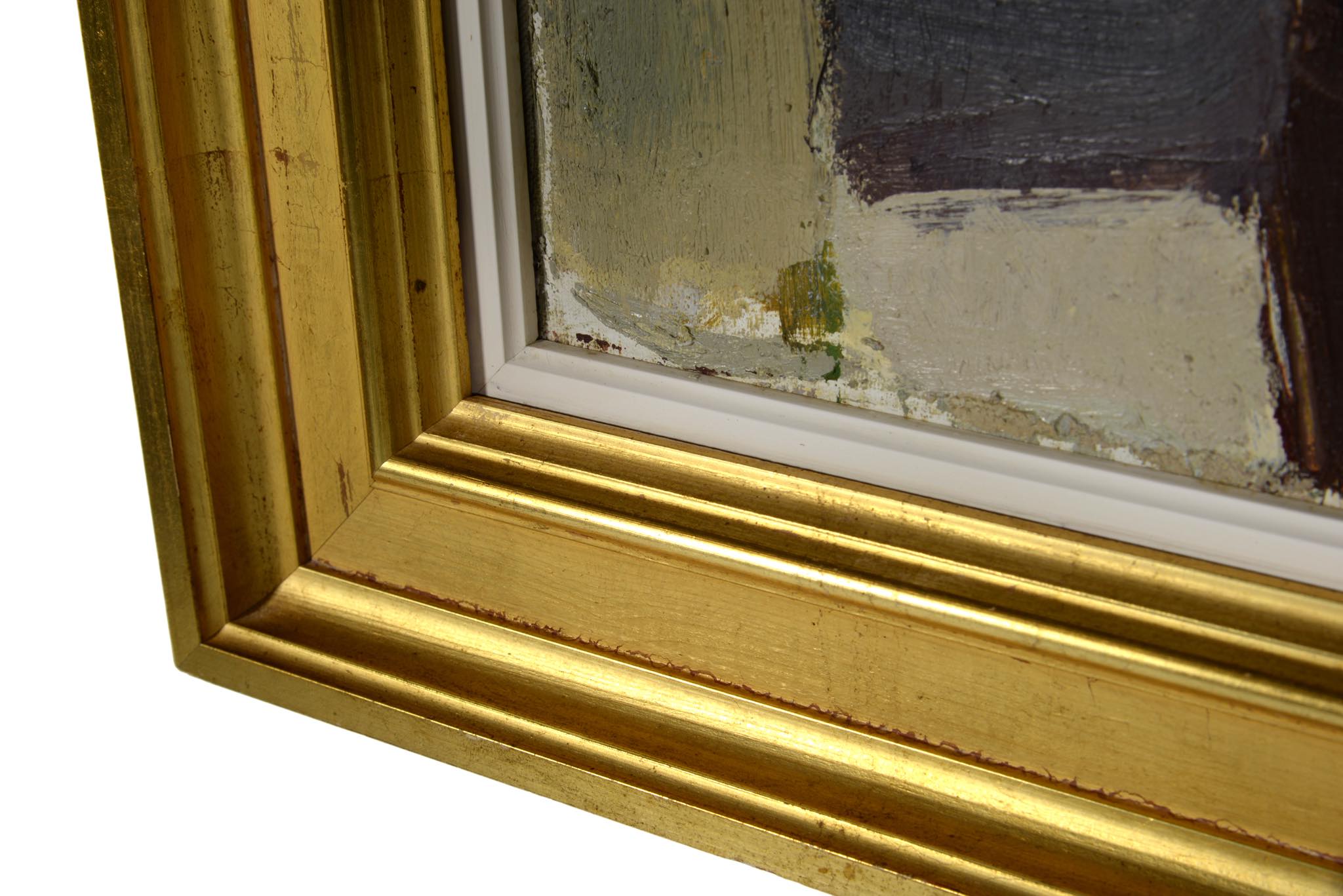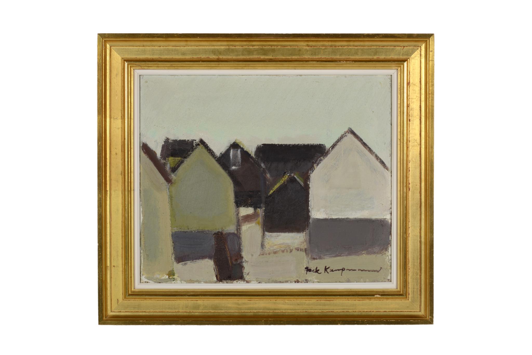 フェロー諸島の厳しい自然環境と対峙しながら生活する島民たちの家々や情景を、独自のタッチで描いた画家のジャック・カンプマンによる油彩作品です。フレームはオリジナルをそのまま使用しています。