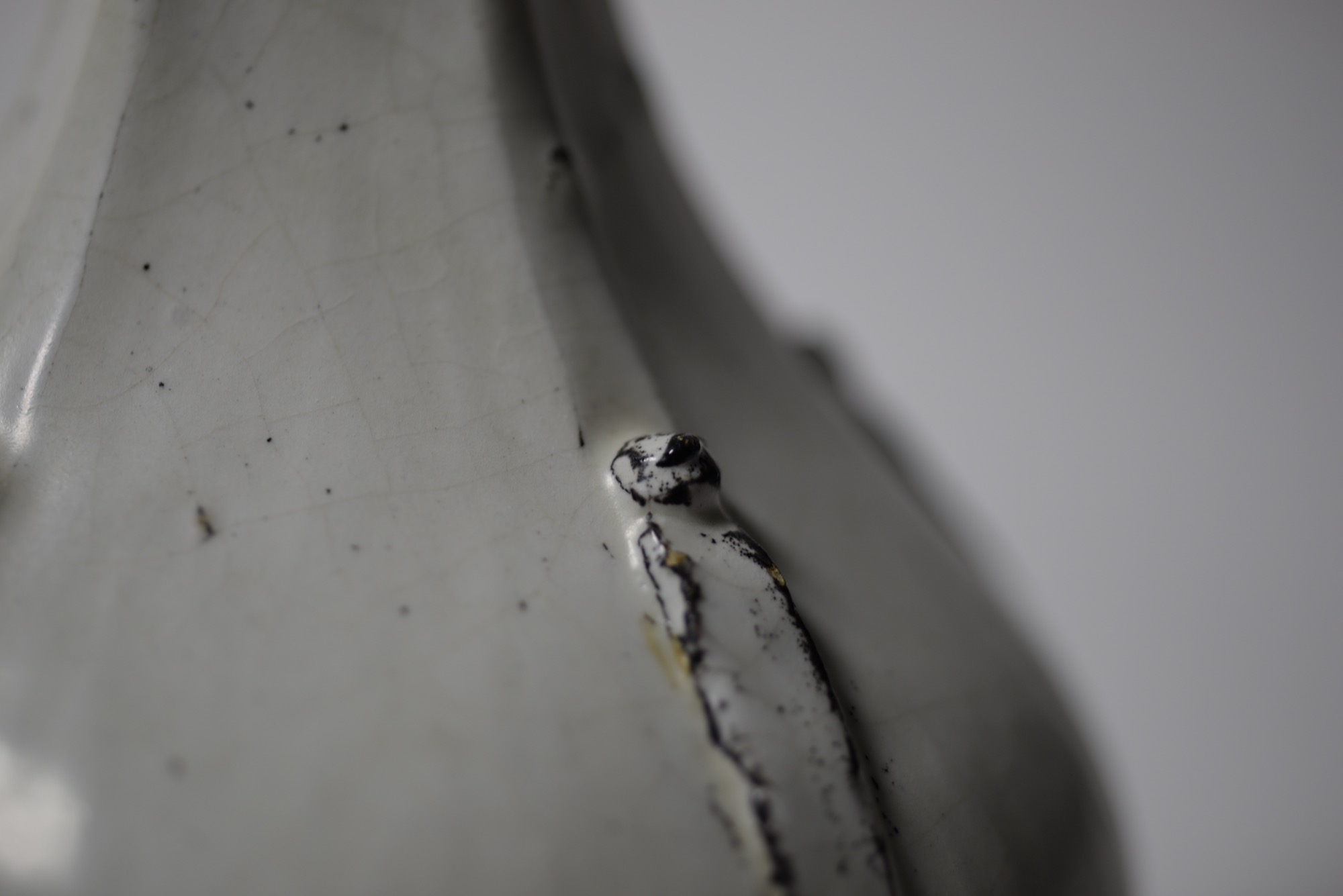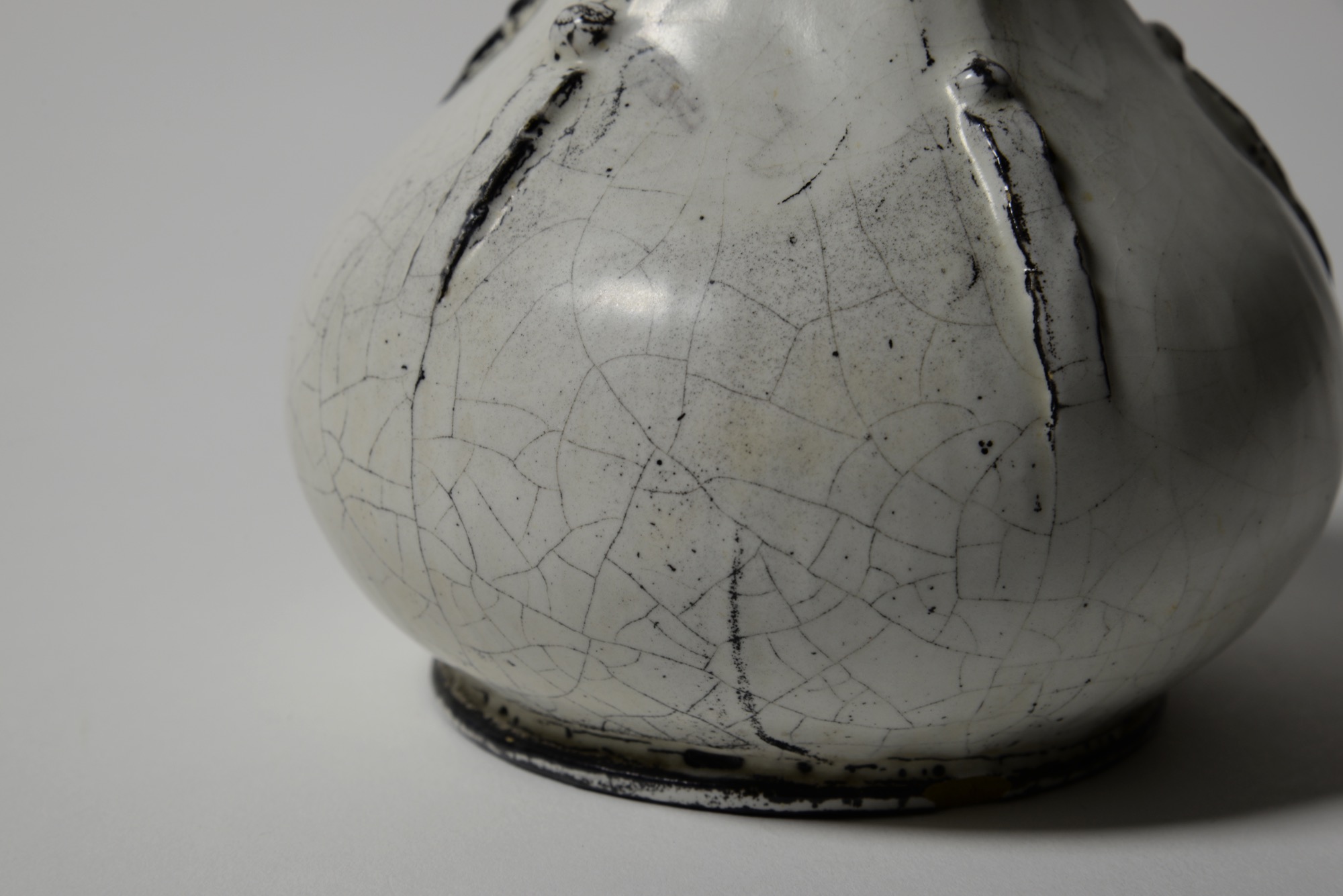 デンマーク人で世界的に有名な画家のヴィルヘルム・ハマスホイを兄に持ち、兄の影響で絵画を学びつつ、デンマークの高名なデザイナー、トルヴァルド・ビンデスボールに出会い陶芸に傾倒します。ビンデスボールの亡き後、渡仏。やがて自身の方向性を見出し、錫を主成分とするモノクロームの釉を使った立体物を作陶し始め、スヴェンの表現する個性的な作品が確立され、世間の評価を集めるようになります。スヴェンの得意としたモノクロームの釉は、戦前のものと思えぬほどモダンでクールな印象で、古っぽさ感じさせません。