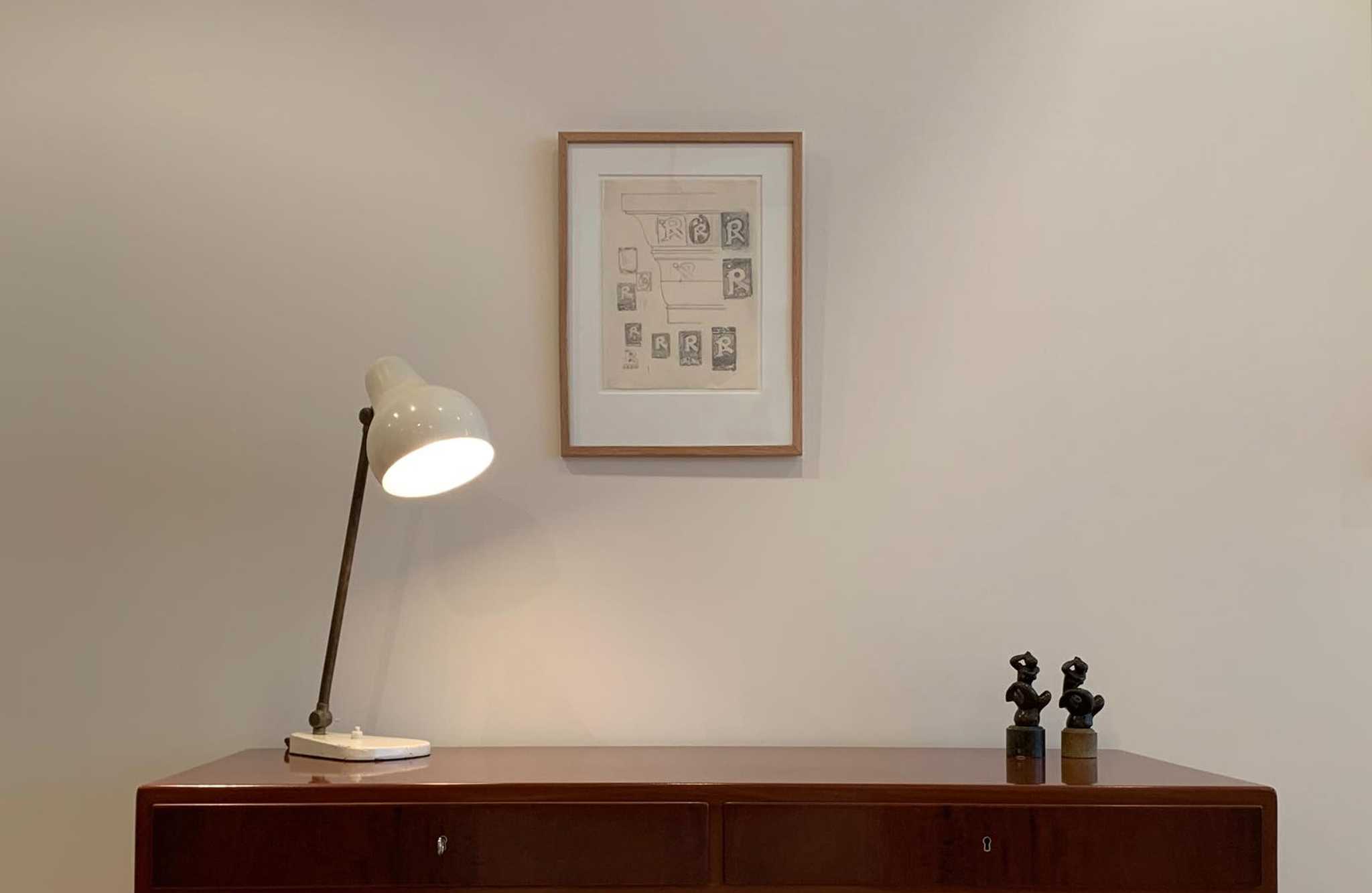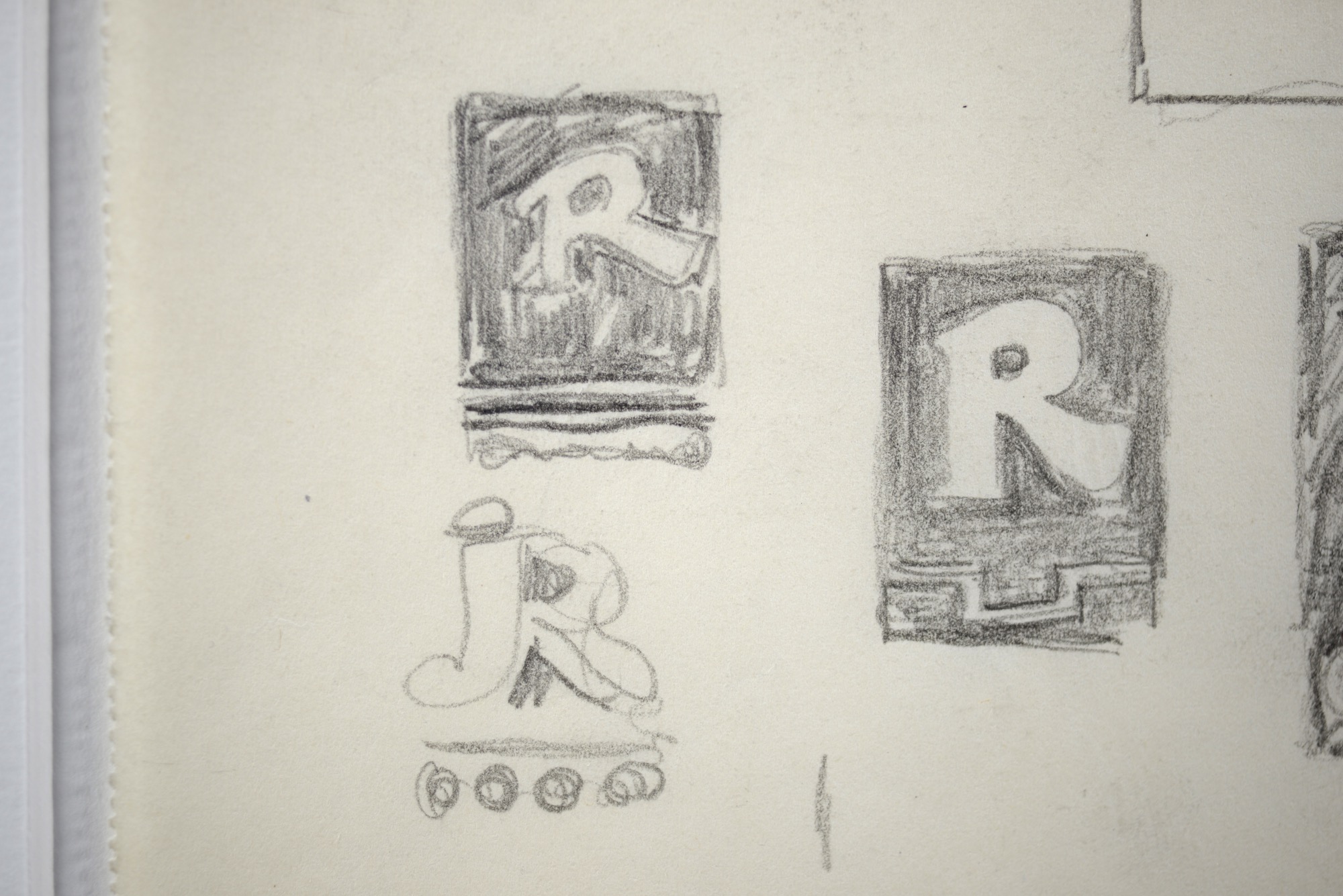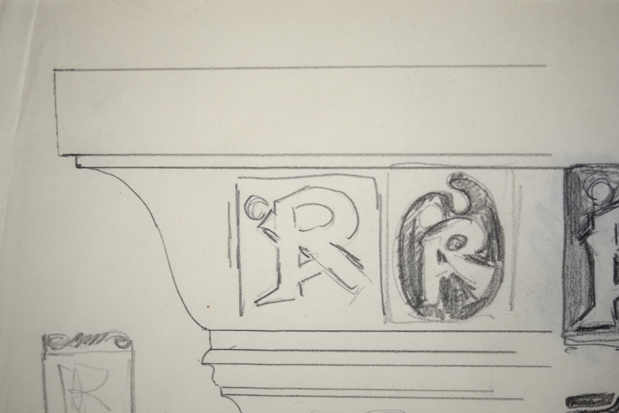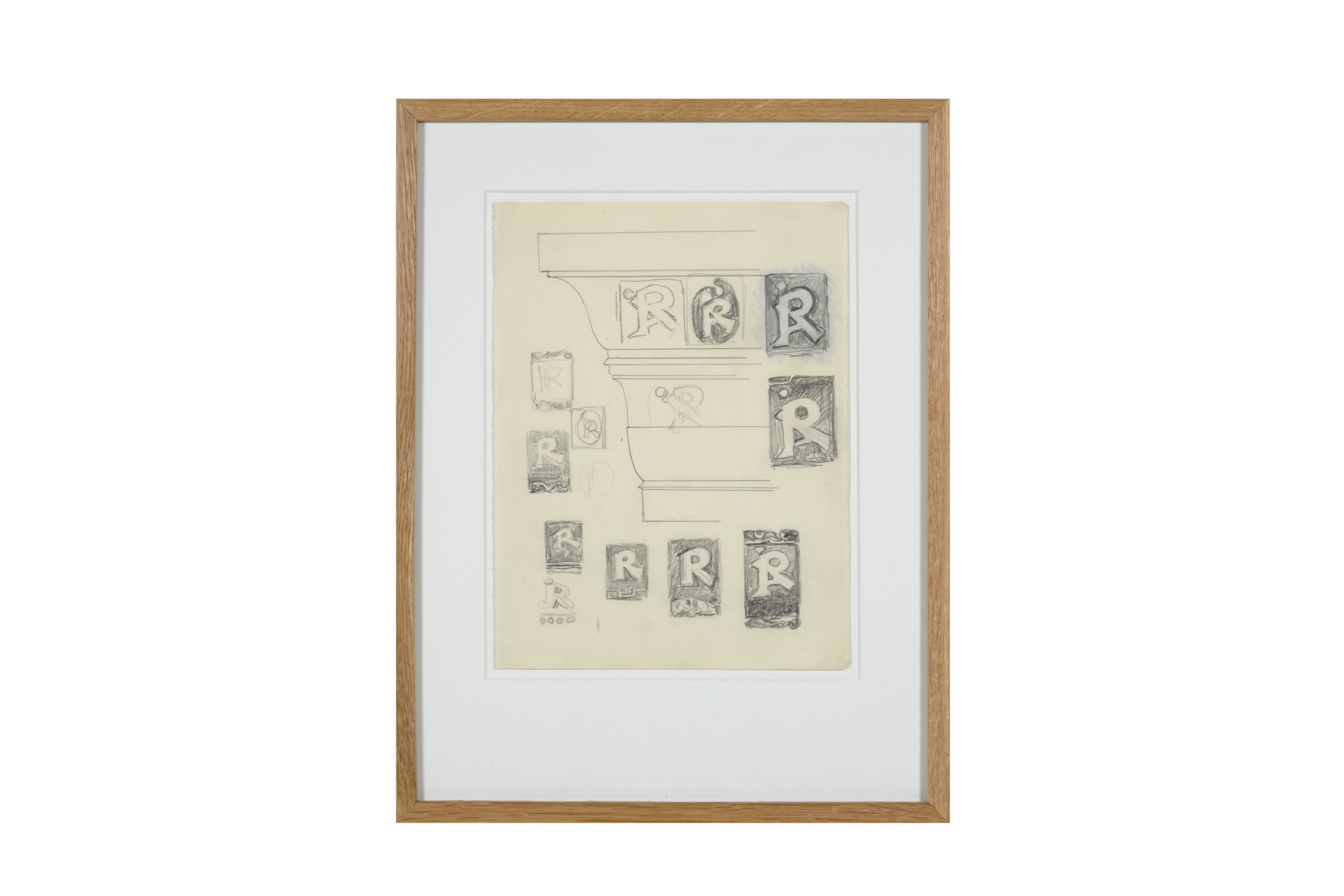 ジョージ・ジェンセンのカトラリーで知られるデンマークの芸術家でデザイナーの Johan Rohde/ヨハン・ローデ(ロード)による習作です。ロゴマークの考案でしょうか。紙に折れなど見られますが、オーク材のフレームに額装されており、綺麗な状態です。