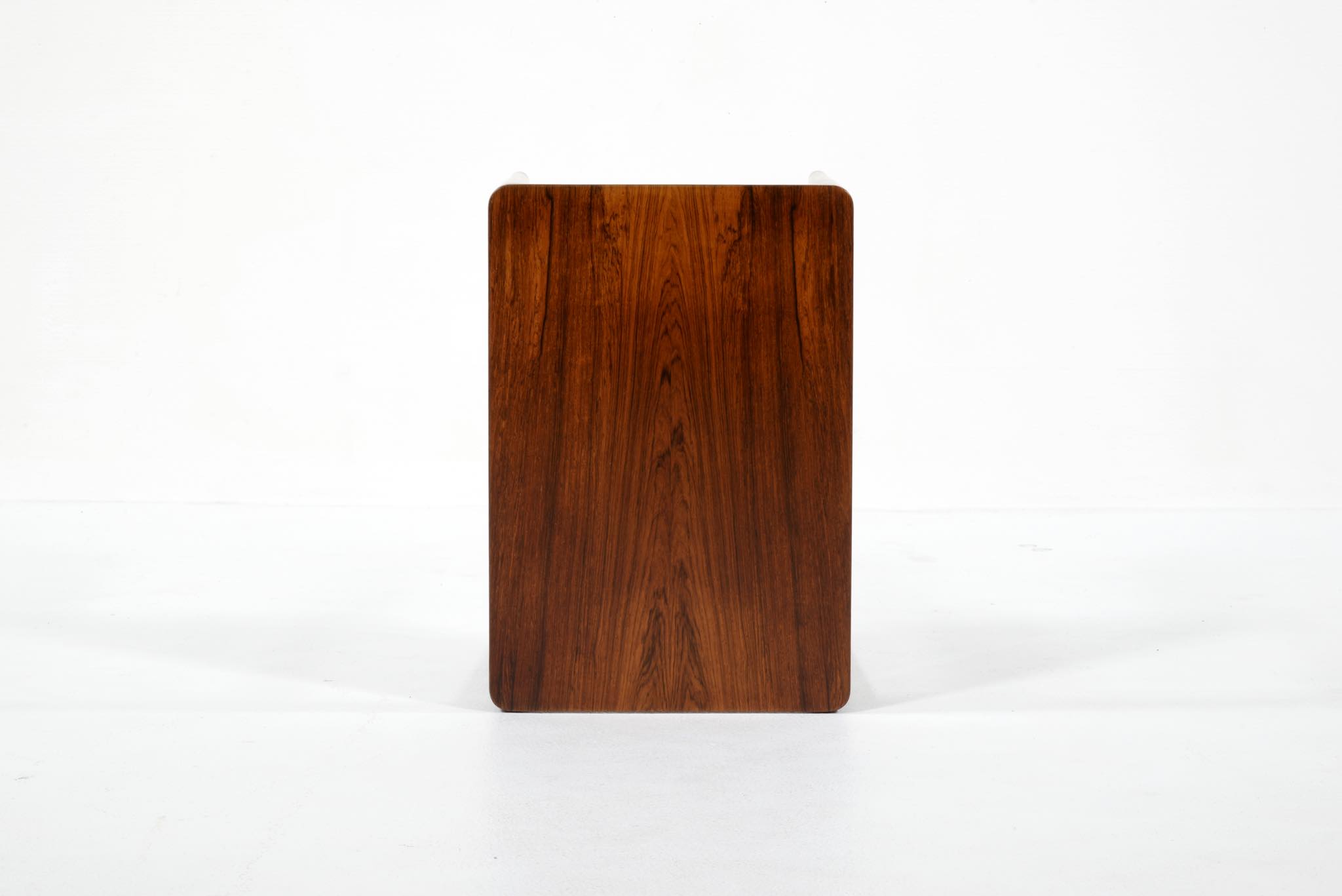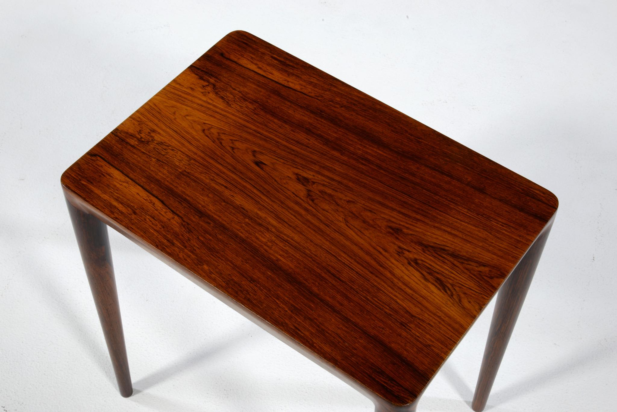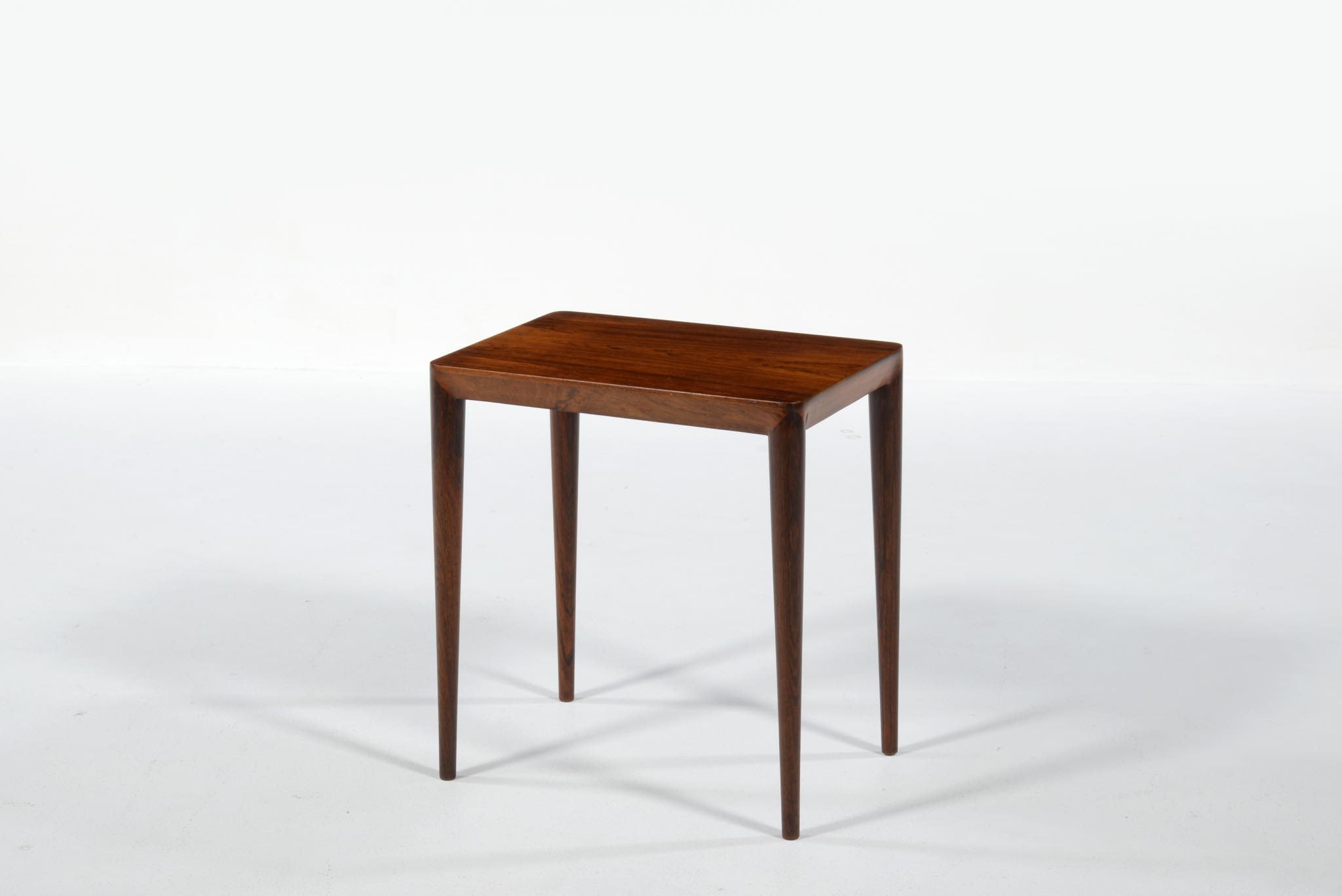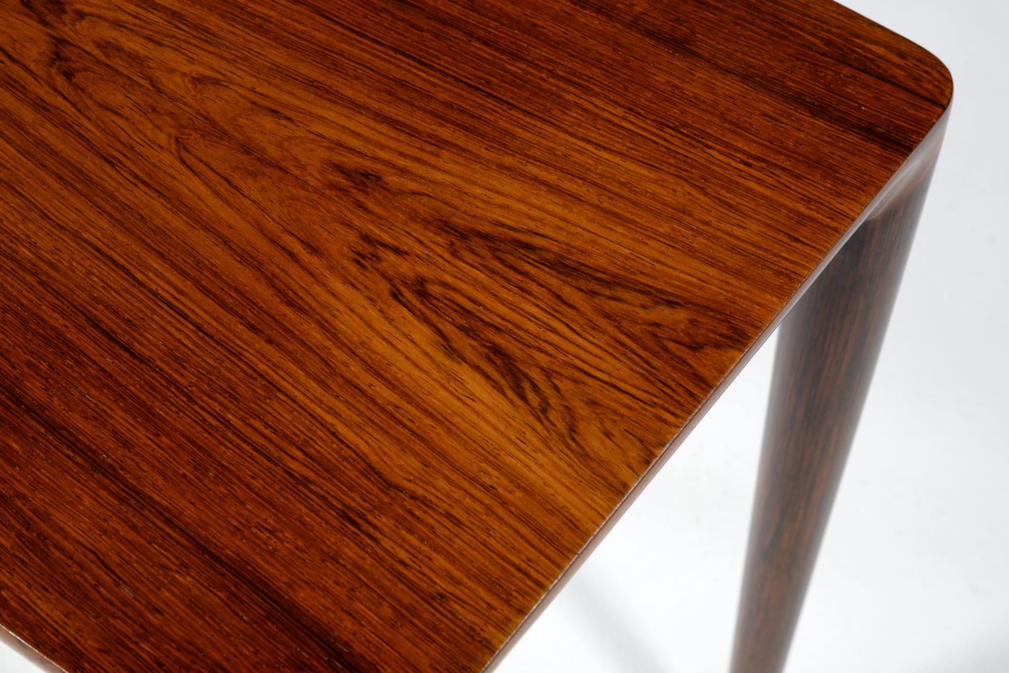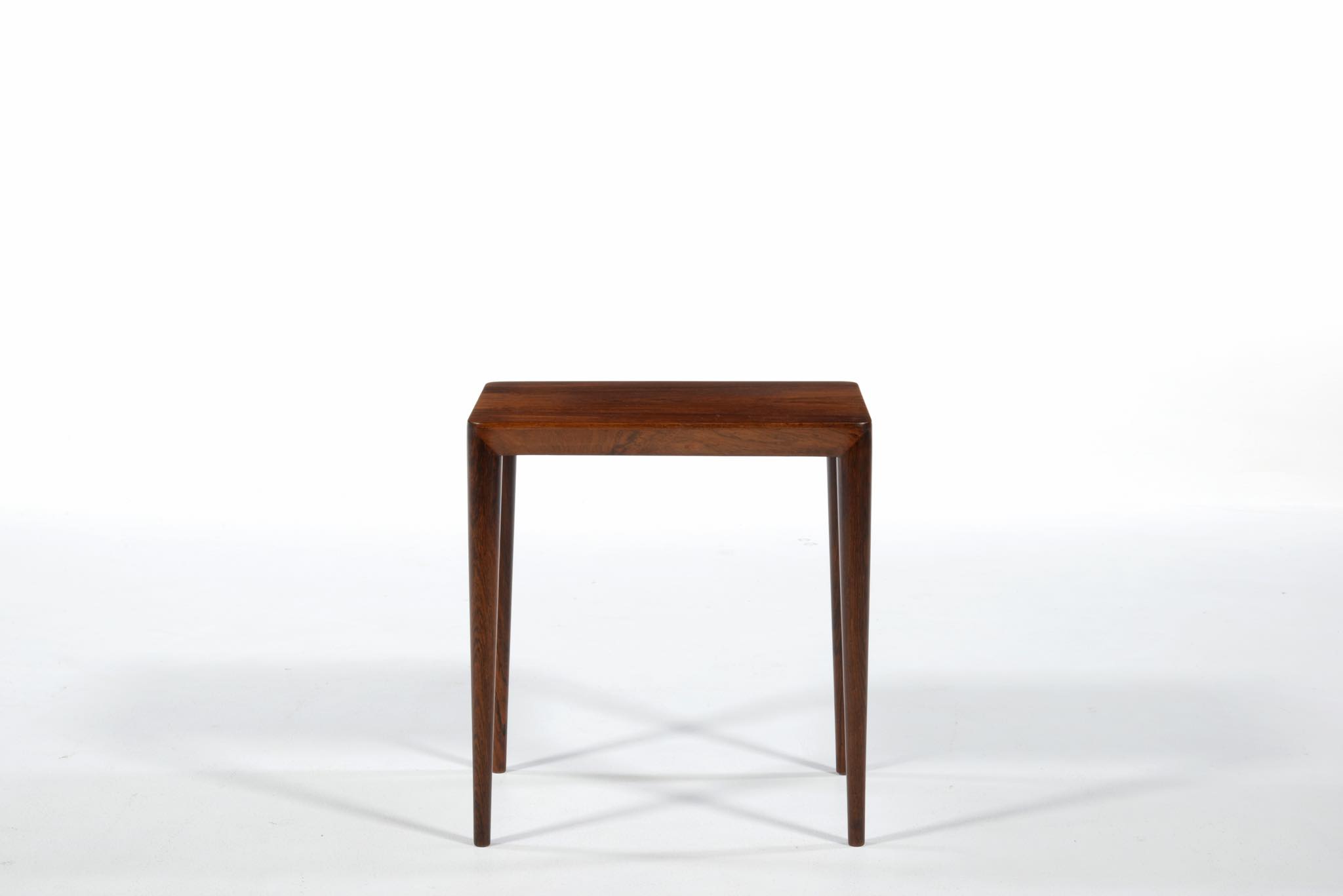ラウンド型ダイニングテーブルで知られる、Erik Riisager Hansen/エリック・リサガー・ハンセンによるサイドテーブルです。当時は単体で販売されたと思われますが、こちらはもともとネストテーブルだったものが離れたものかもしれません。ブラジル原産と思しき特有の木目の現れた材を用いて作られています。