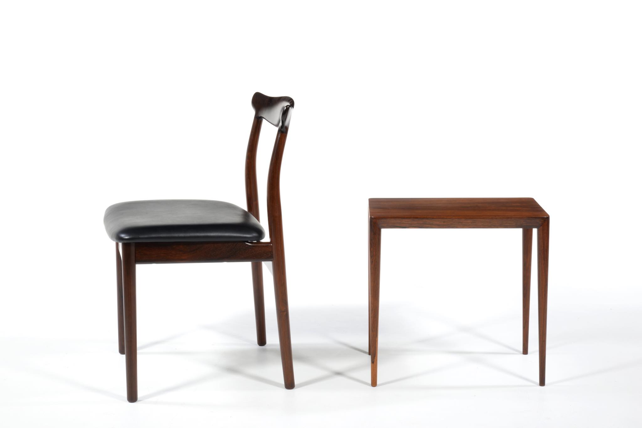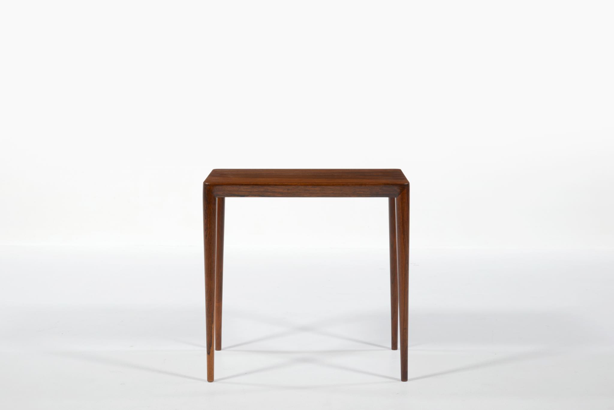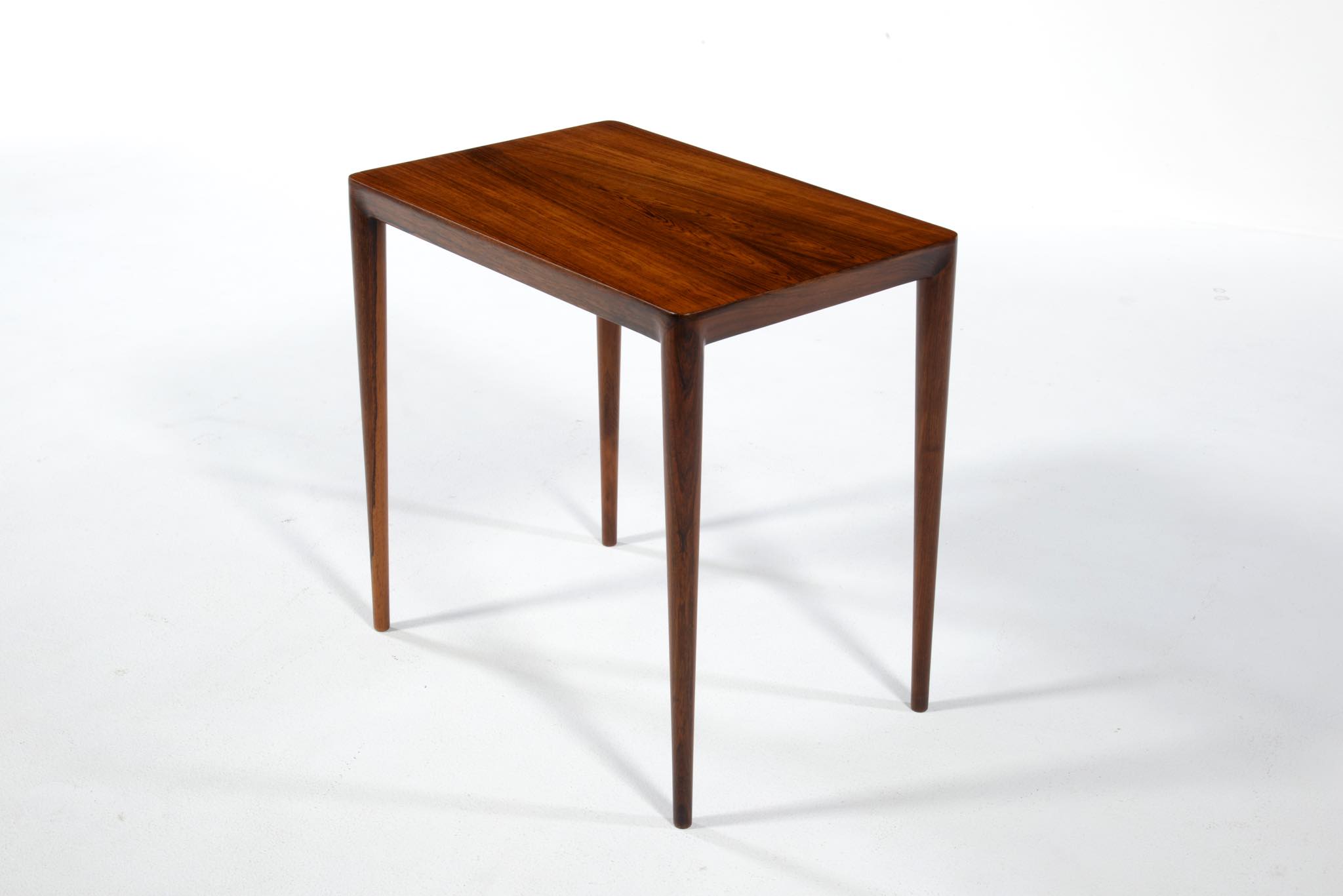 ラウンド型ダイニングテーブルで知られる、Erik Riisager Hansen/エリック・リサガー・ハンセンによるサイドテーブルです。当時は単体で販売されたと思われますが、こちらはもともとネストテーブルだったものが離れたものかもしれません。ブラジル原産と思しき特有の木目の現れた材を用いて作られています。