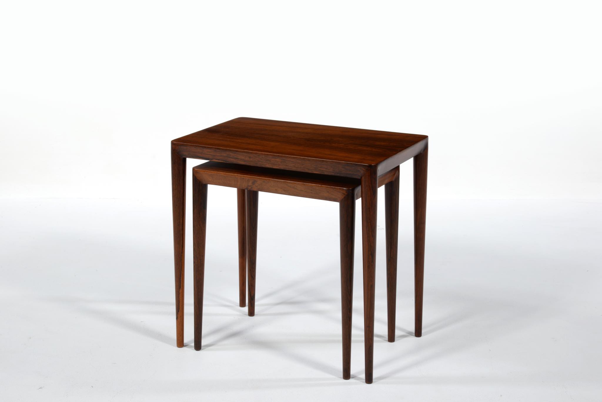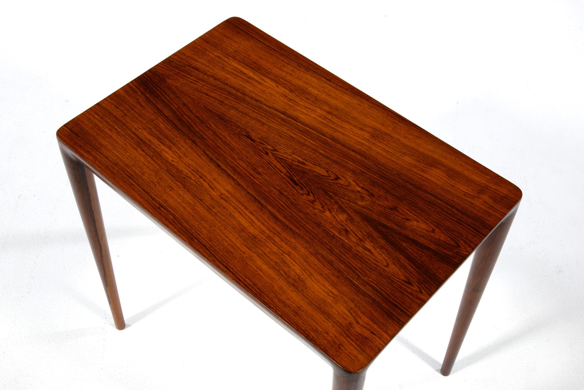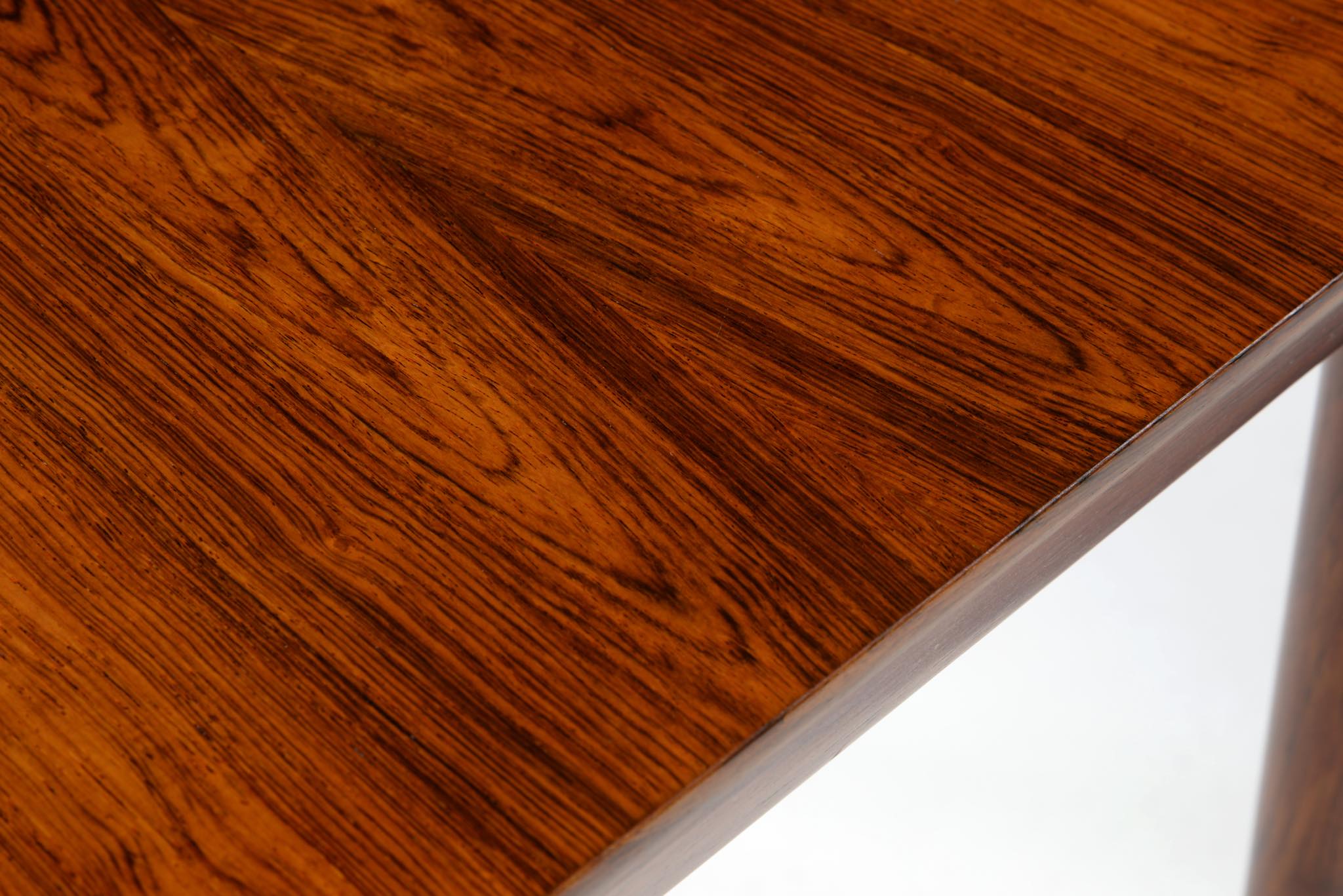 ラウンド型ダイニングテーブルで知られる、Erik Riisager Hansen/エリック・リサガー・ハンセンによるサイドテーブルです。当時は単体で販売されたと思われますが、こちらはもともとネストテーブルだったものが離れたものかもしれません。ブラジル原産と思しき特有の木目の現れた材を用いて作られています。