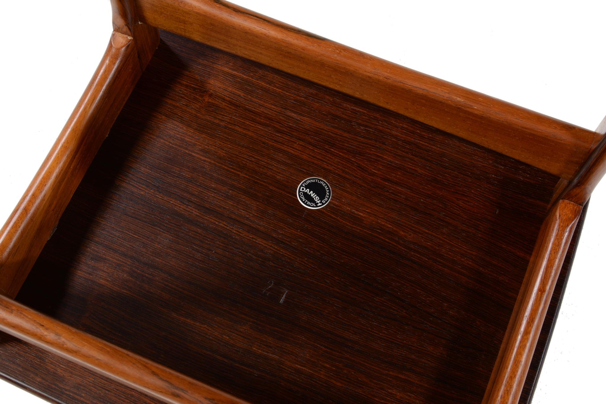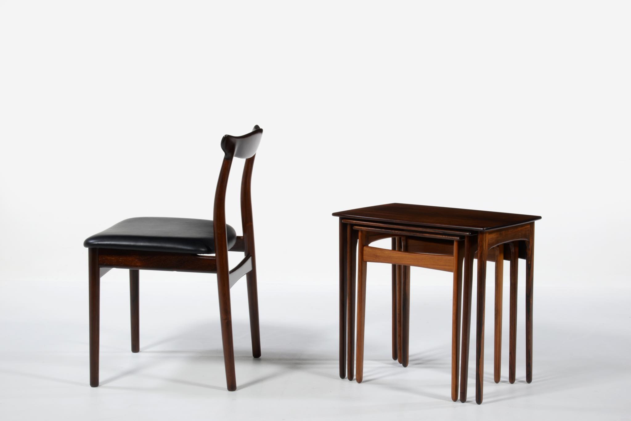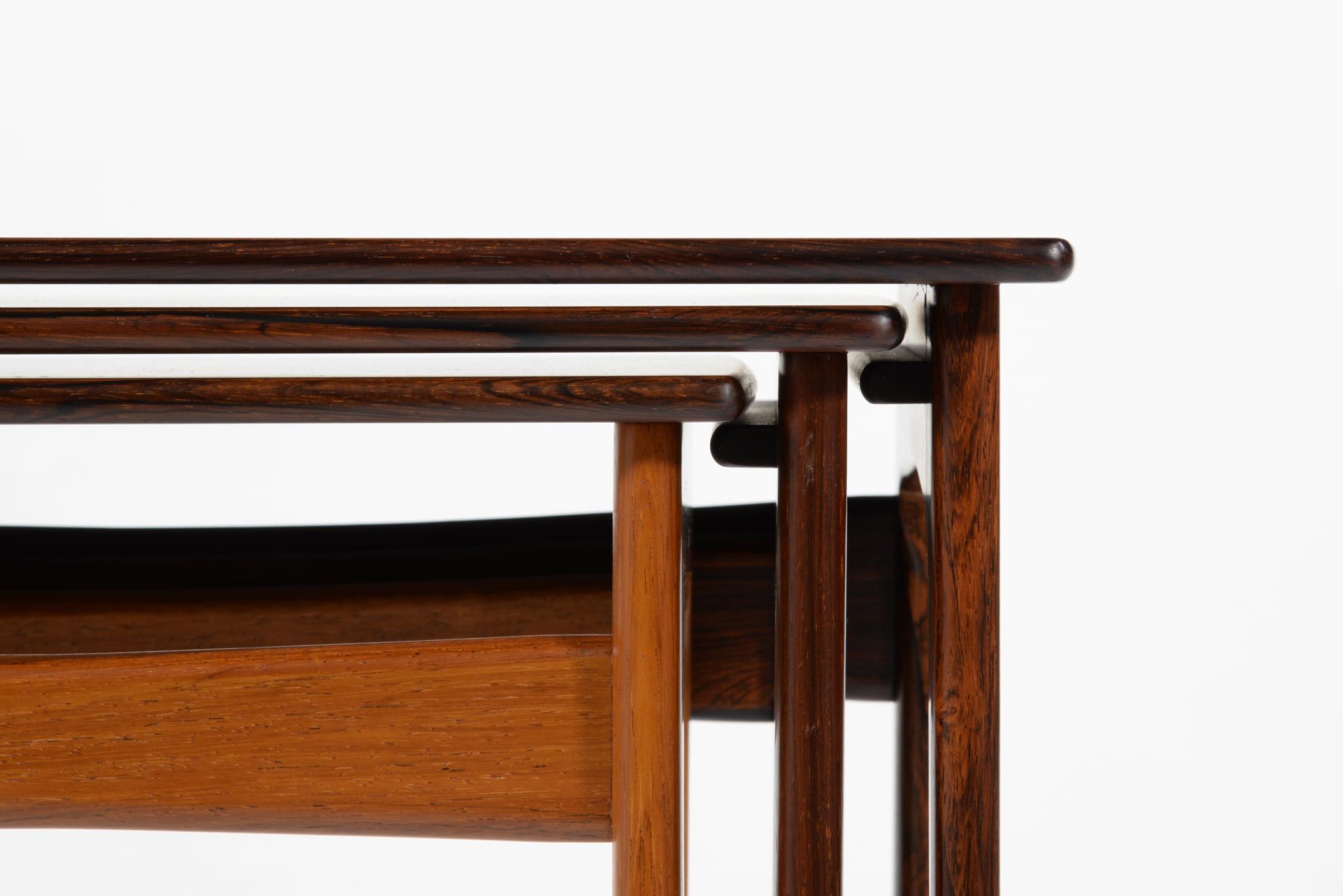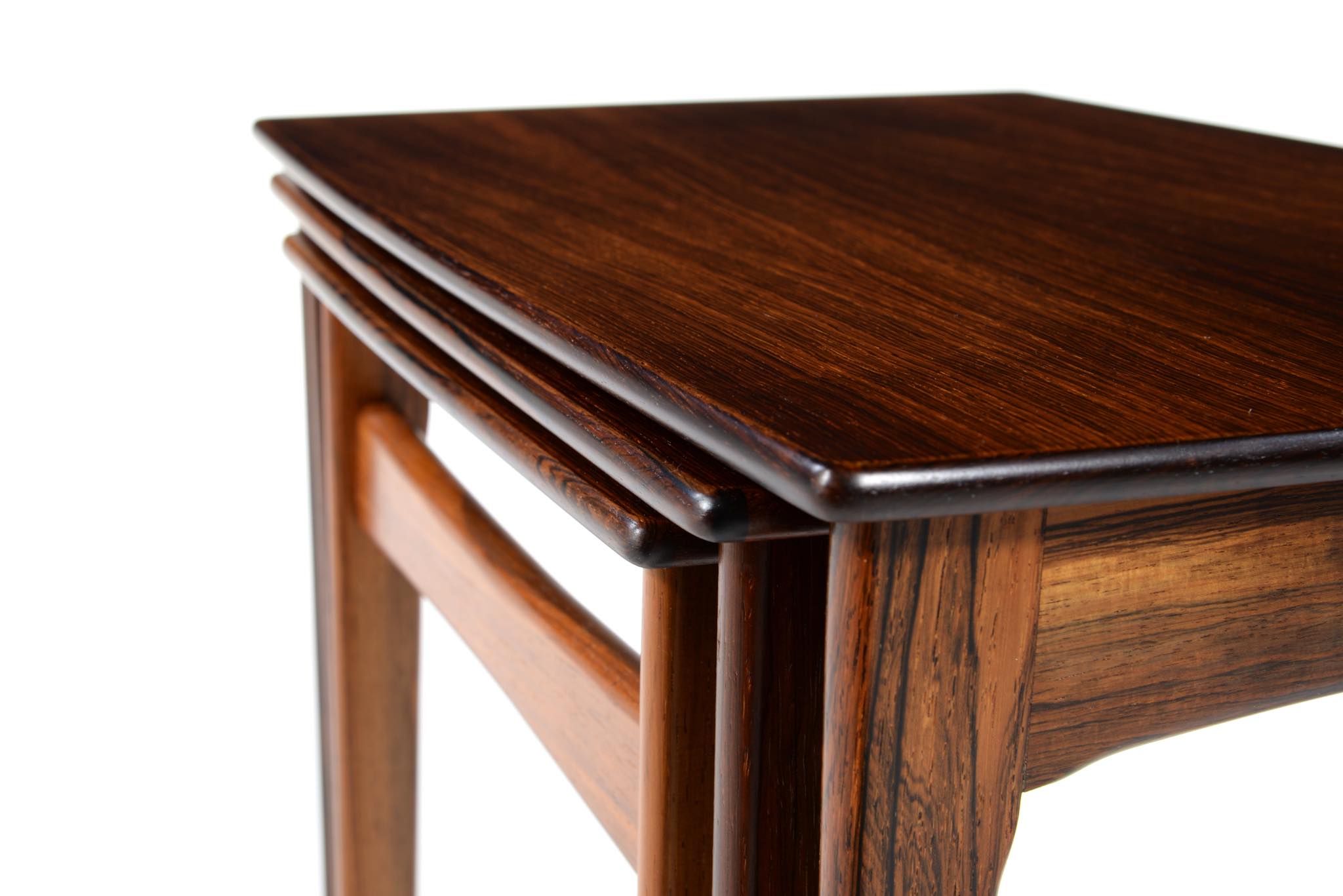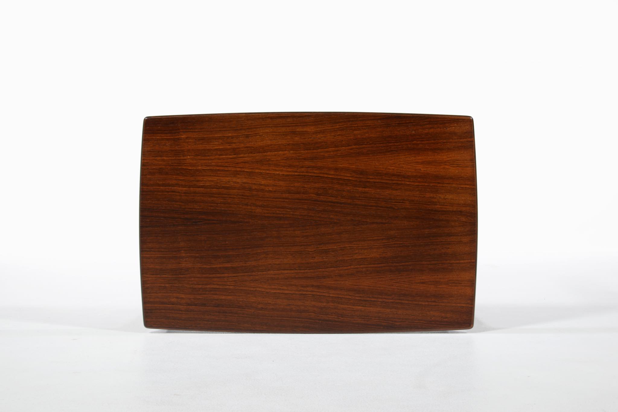 デンマークの家具工房にて1960年代頃に作られたネストテーブルです。詳しい事は判っておりませんが、丁寧に作られたもので、ブラジル原産と思しき特有の木目の現れた材を用いて作られています。