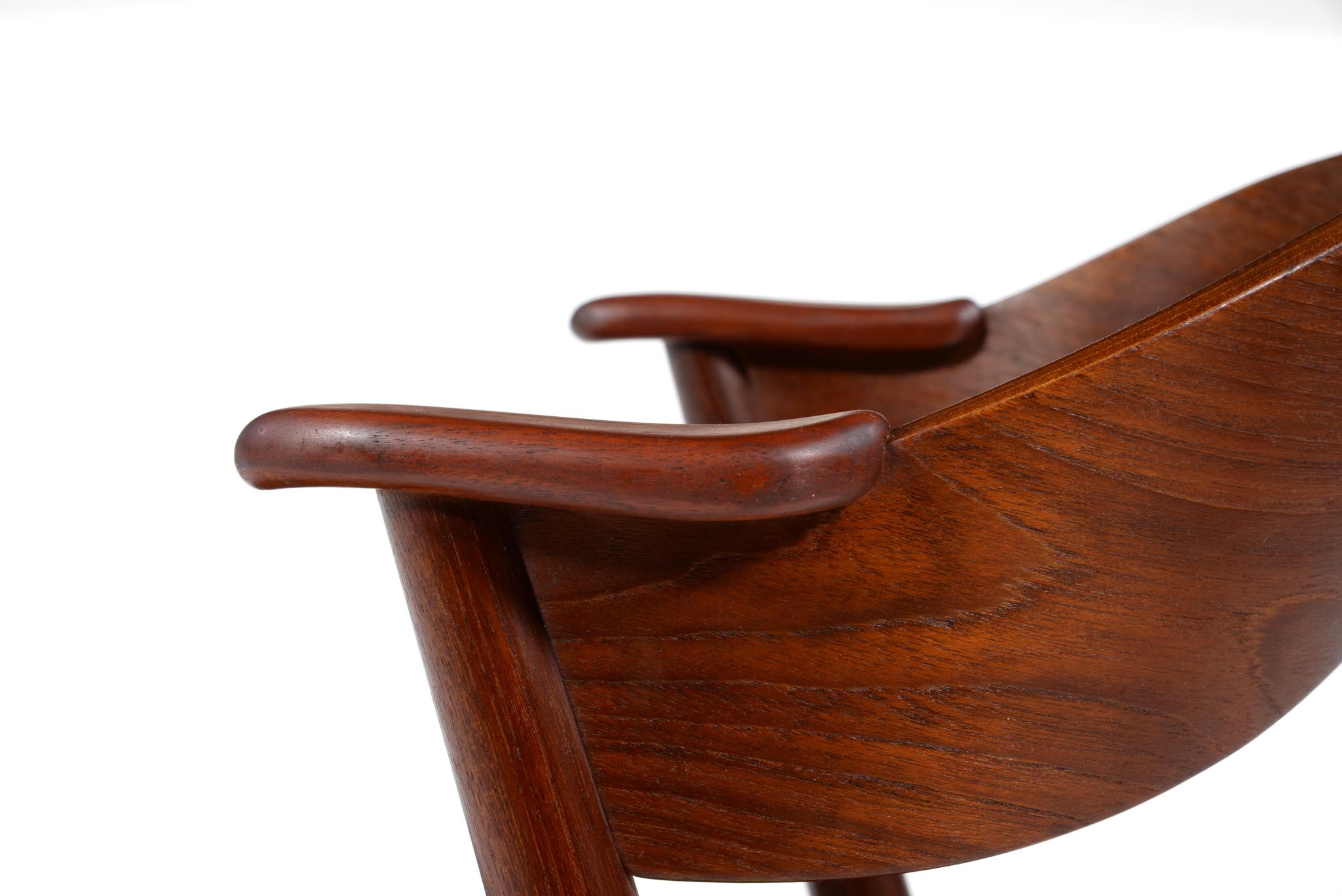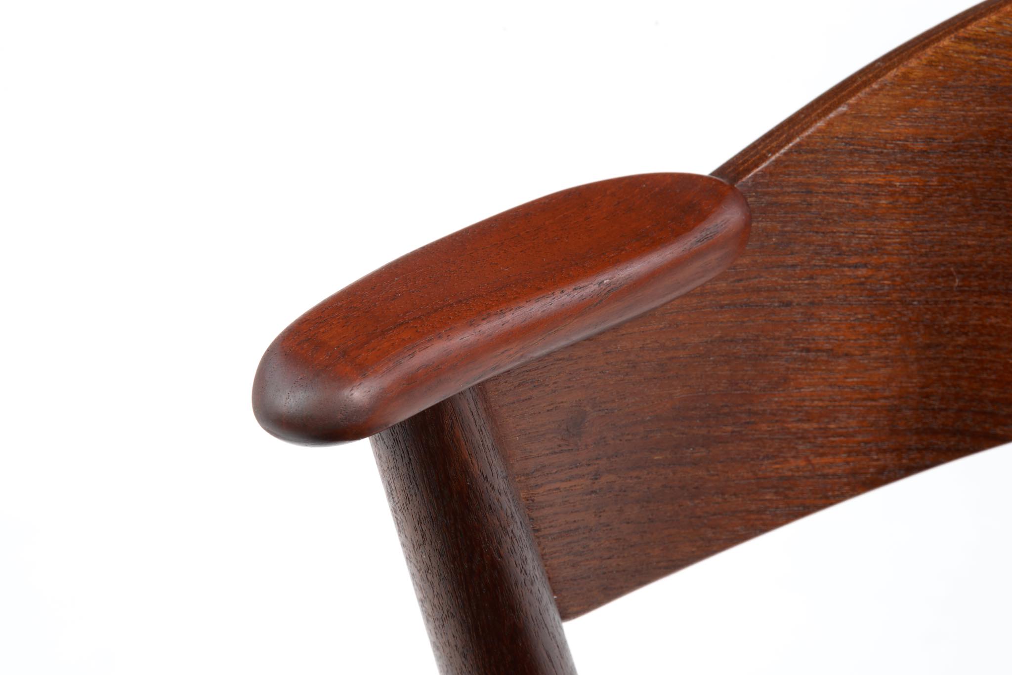 デンマークを代表する家具デザイナーのKai Kristiansen/カイ・クリスチャンセンによる"Model32"ダイニングチェアです。 通称”ネイルチェア" と呼ばれるモデルで、こちらは1950~60年代に作られたものでしょう。チーク材をまるで有機物のように削り出した「ハーフアーム」が備わり、肘を掛けることで腰部に掛かる体重の負担が軽減され、食後のひと時が快適に過ごせます。