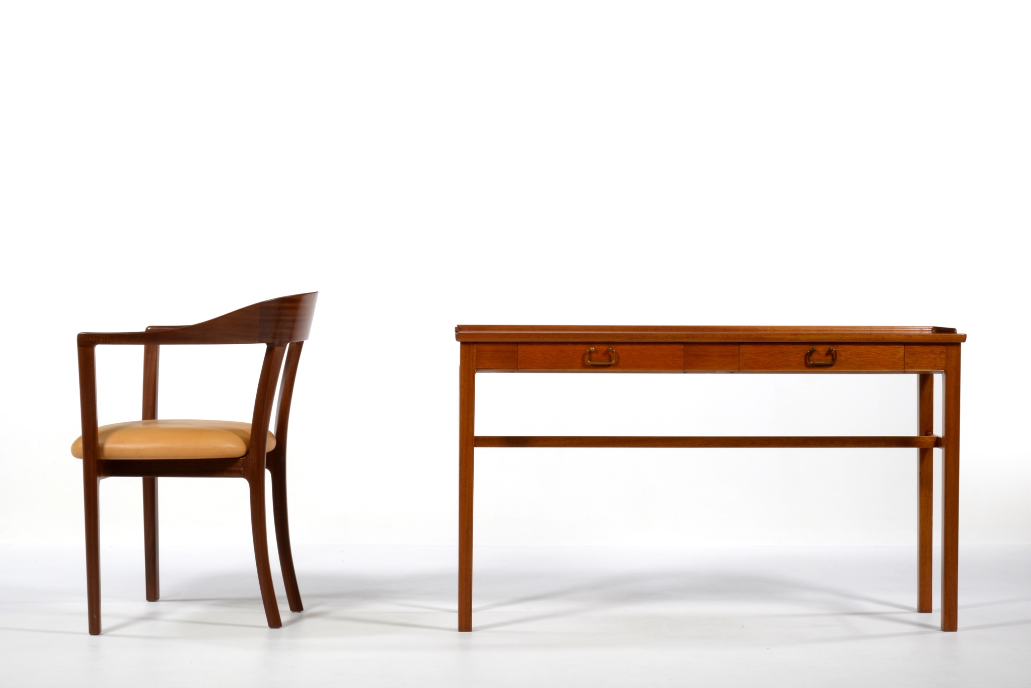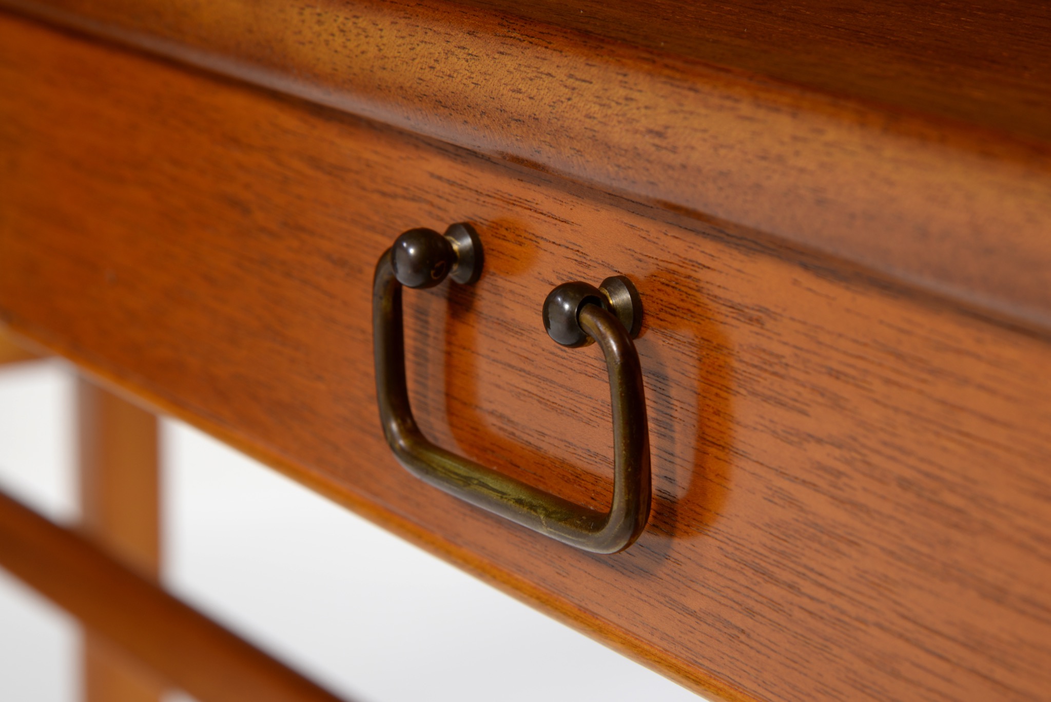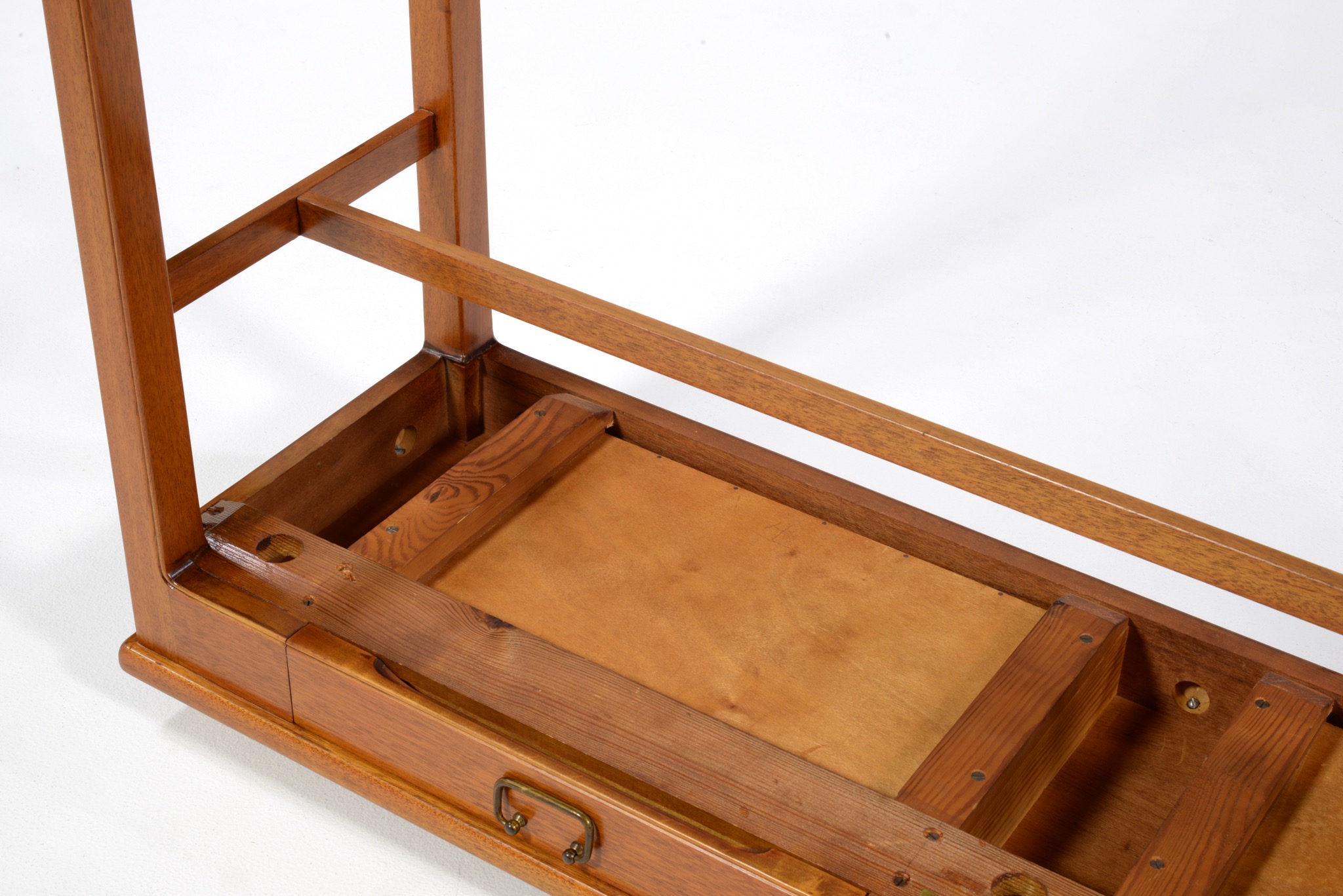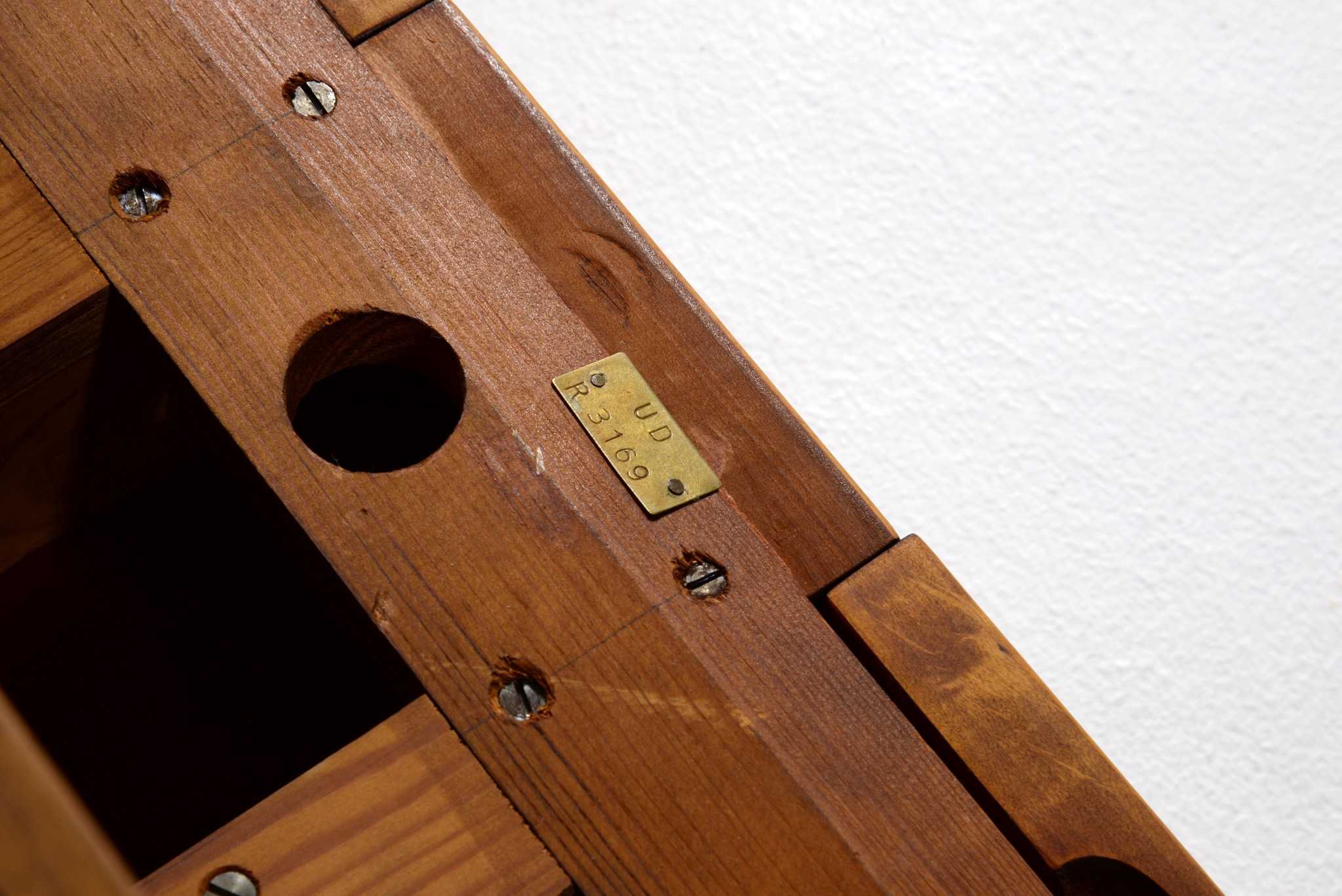 1940〜50年代のデンマークで作られたコンソールテーブルです。デザイナーや工房などは分かっておりませんが、丁寧に作られたもので、マホガニーの本体に真鍮の引手が備わりクラシックな趣です。奥行きが浅く、動線の確保にも有利です。背面に付けられたプレートの意味は分かっておりません。
