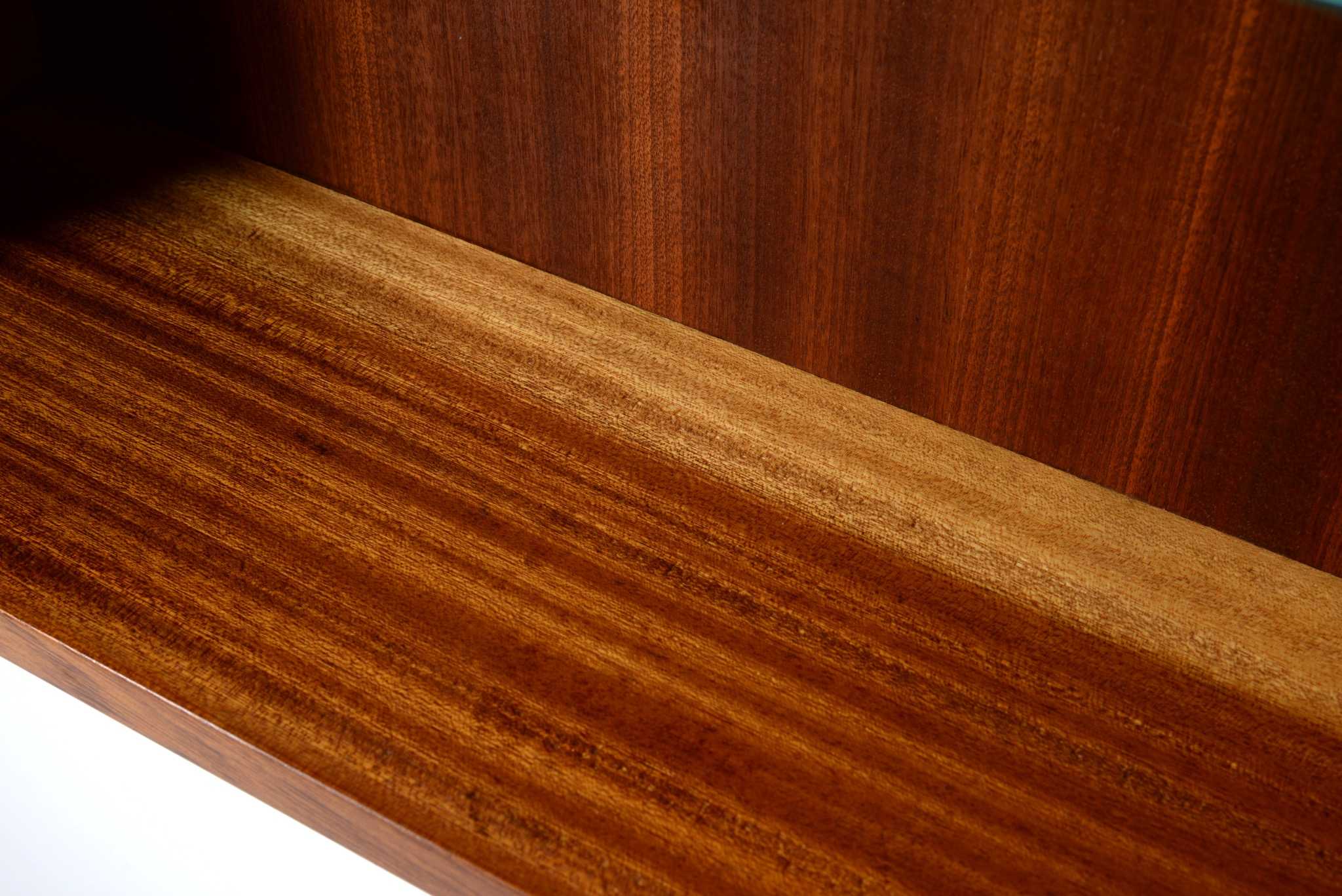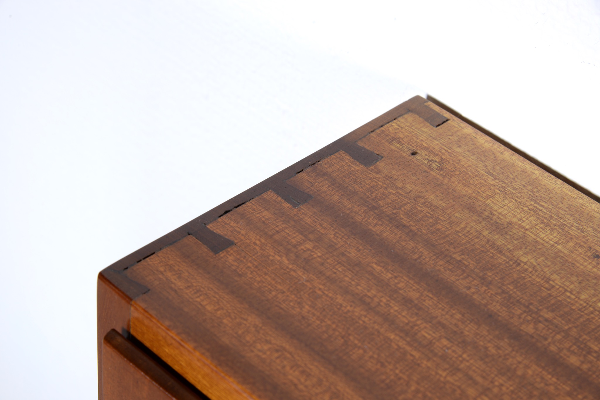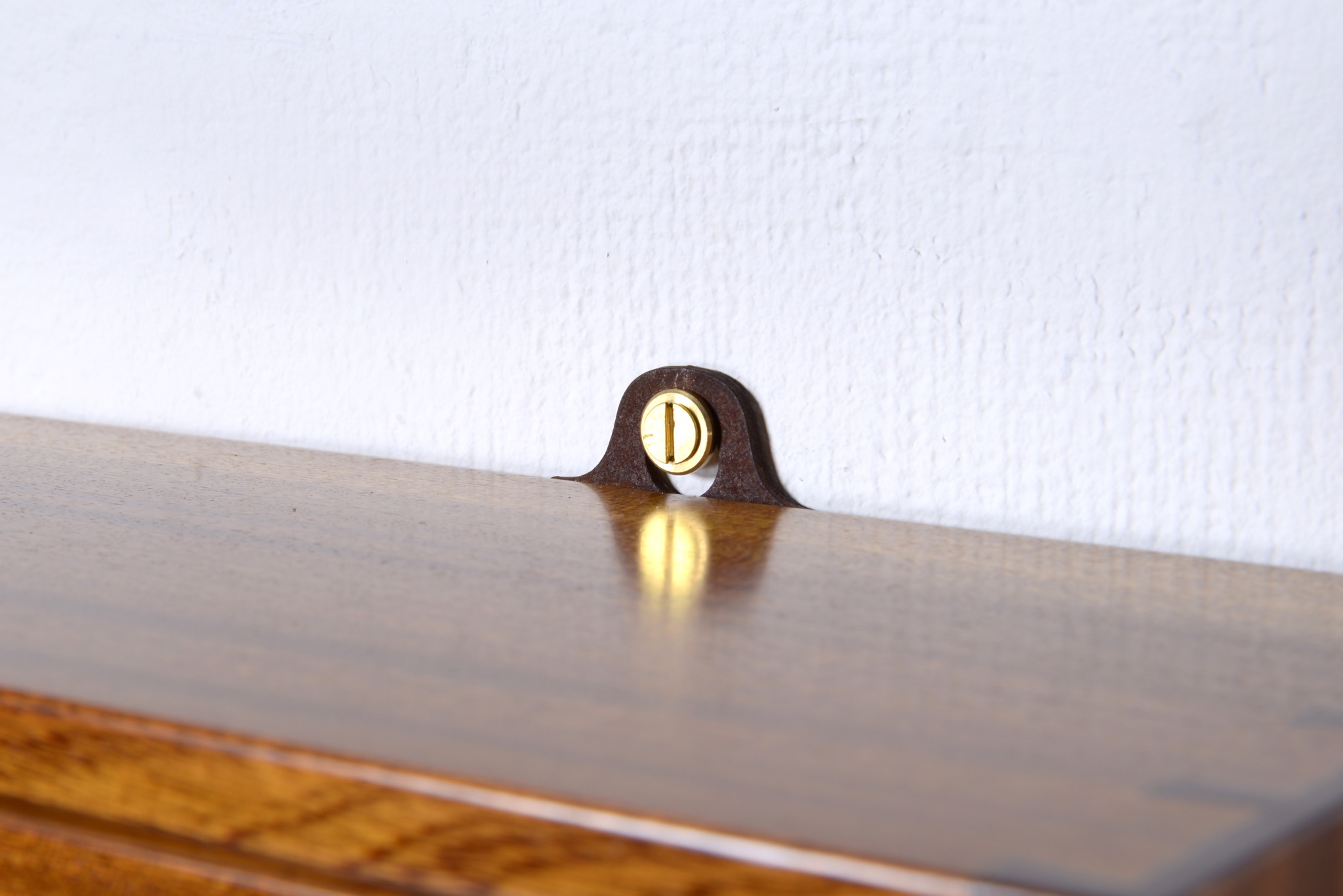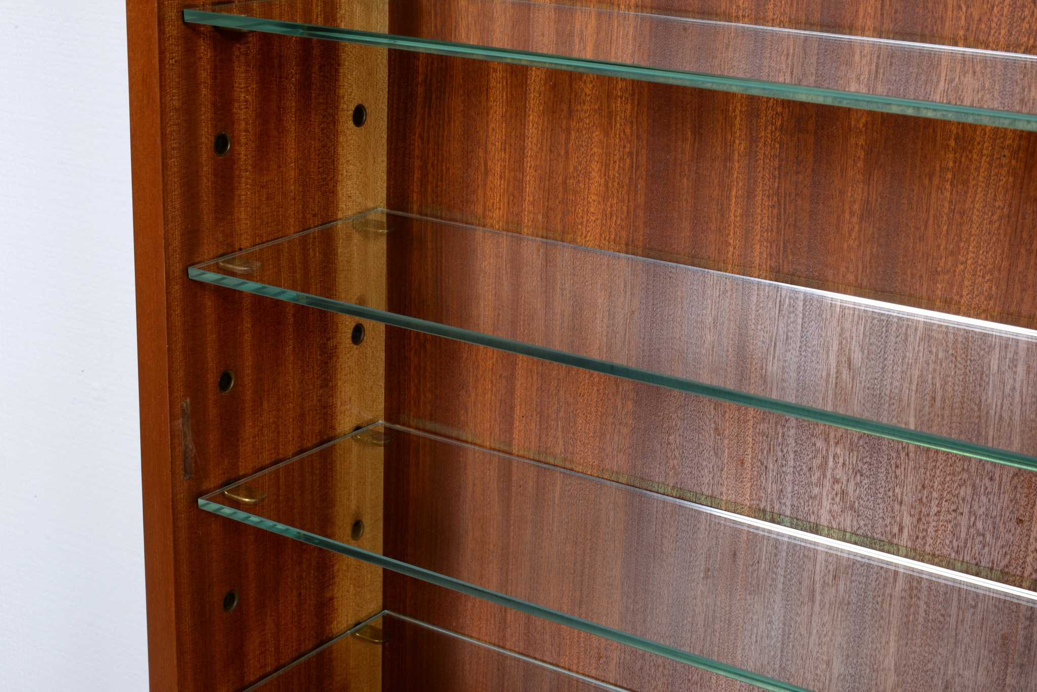 無垢のマホガニーを用いた壁掛け用キュリオケースです。工房などは分かっておりませんが、丁寧に作られたもので、1950年代頃に作られたものでしょう。ガラスの棚板は新たに作りました。壁付けの方法は二種類ございますので詳しくはお問い合わせください。