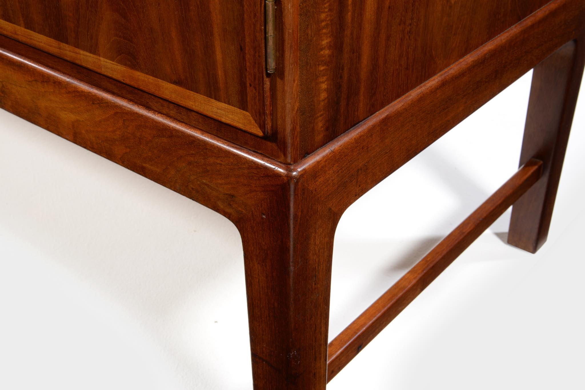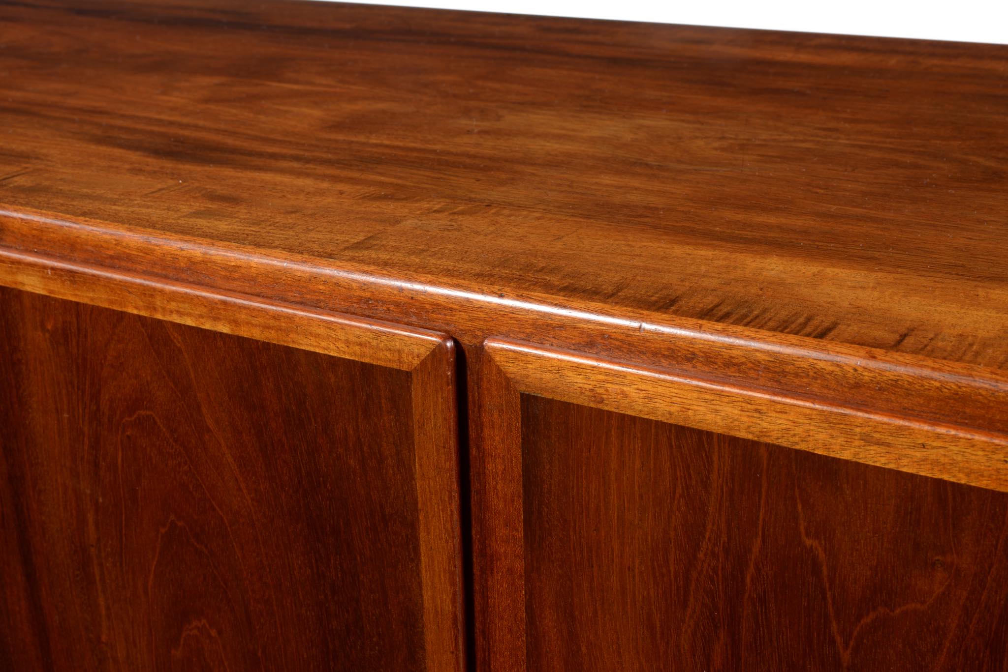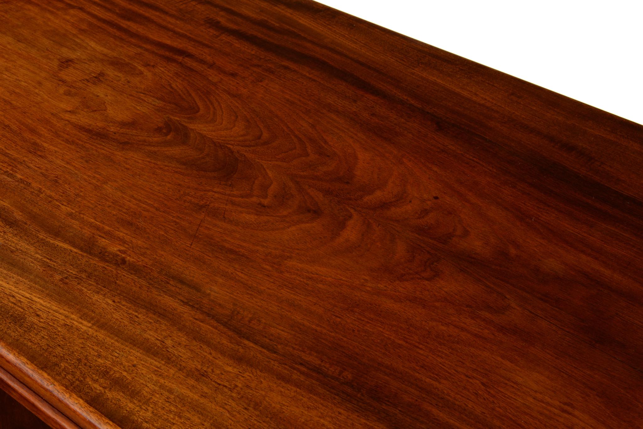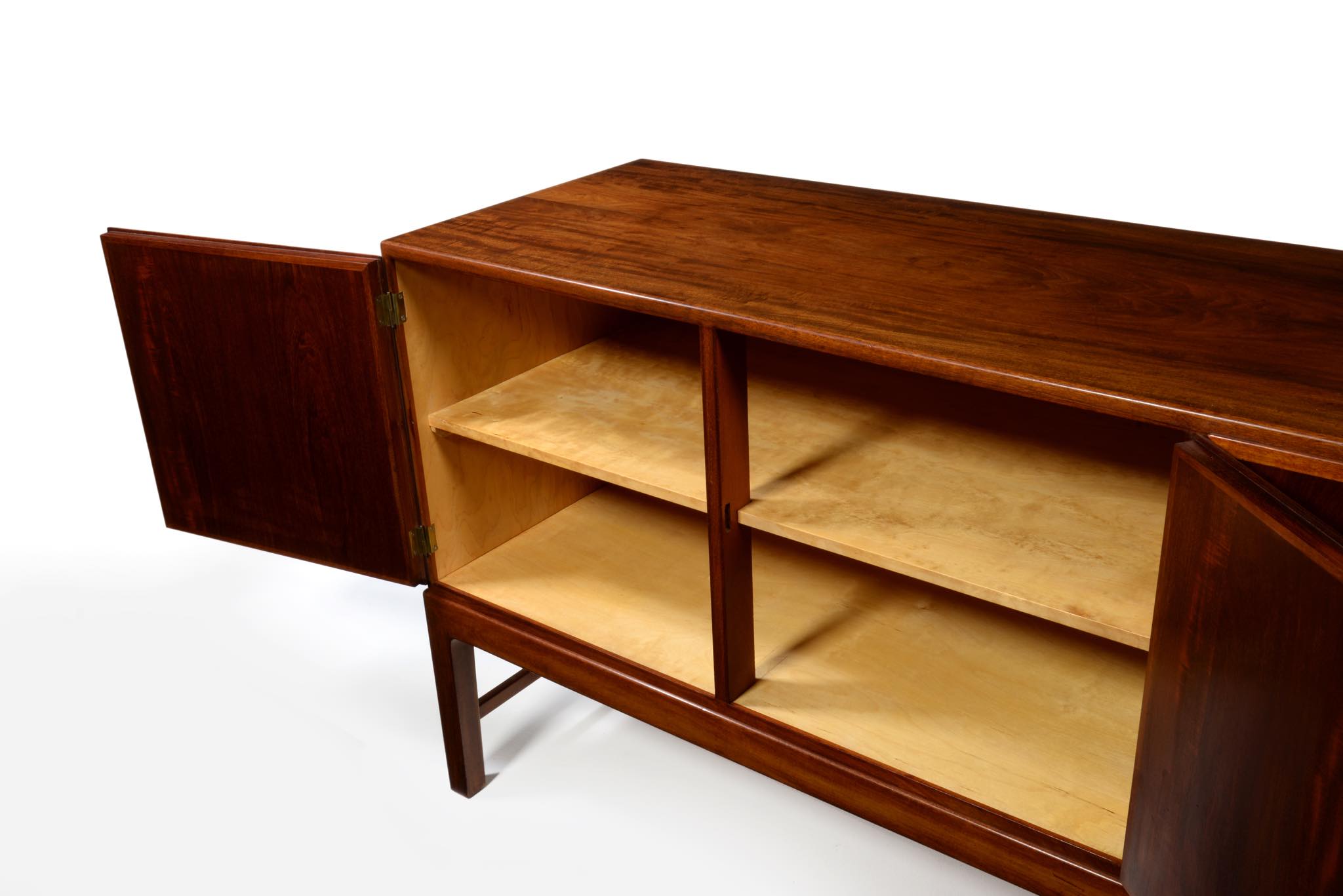 デンマークの家具工房にて作られたサイドボードキャビネットです。後掲のカップボードと同じ工房で作られたもので、1940年代頃の製作品でしょう。材はマホガニーと思われます。収納力があり、しっかりとした作りのものです。内部の棚板は取り外すことは可能ですが、位置を変えることができません。ご購入時であれば当店にて棚板位置を調整することも可能ですので、ご希望の際にはお申し付けください。天板などにわずかな擦り傷などが見られますが、きれいな状態です。