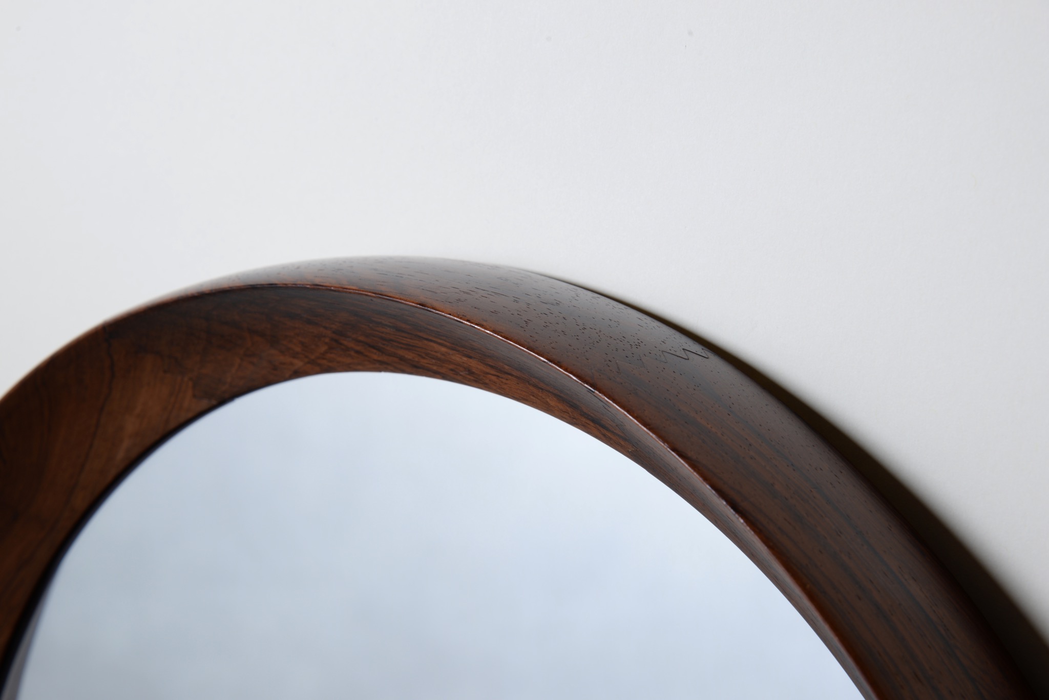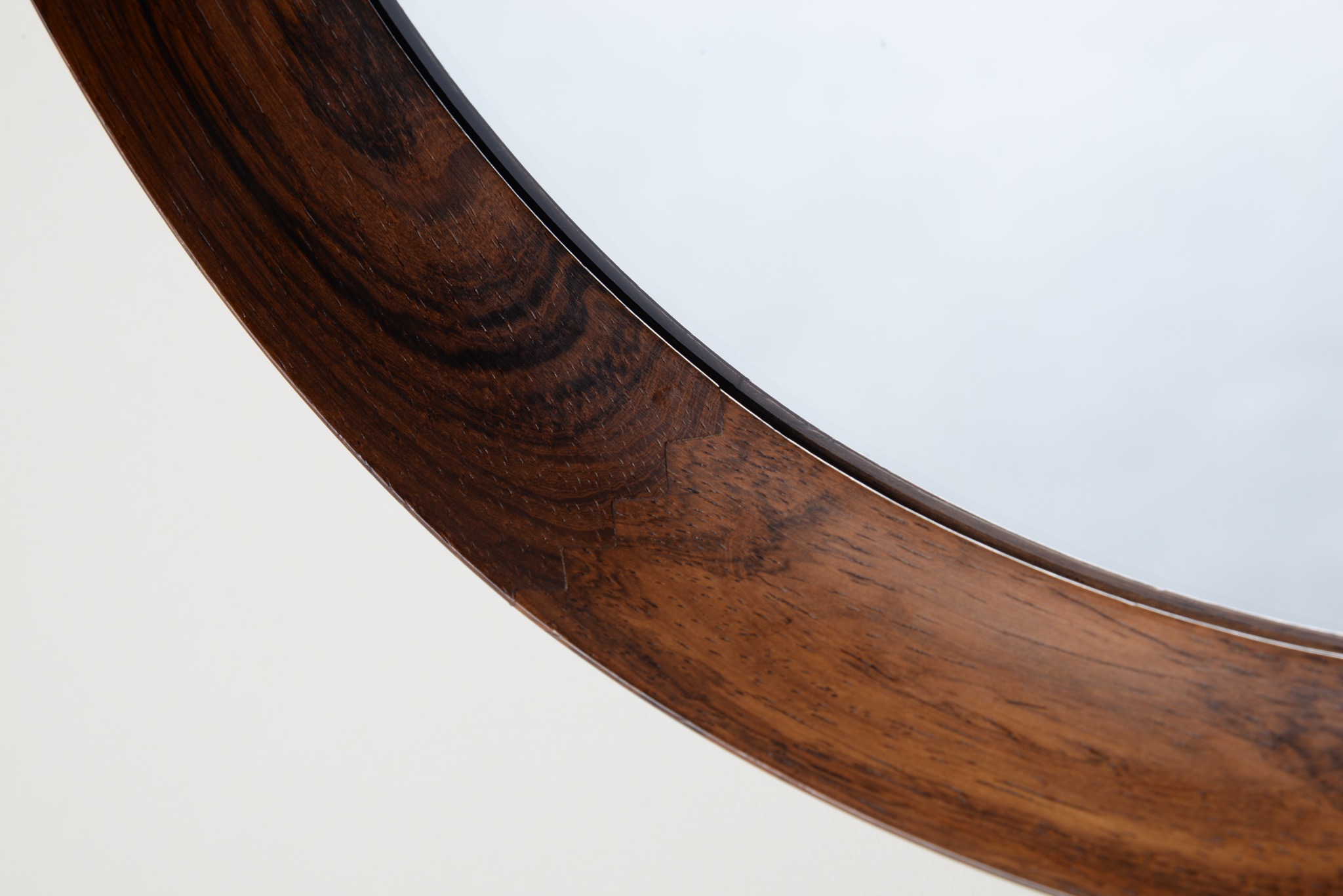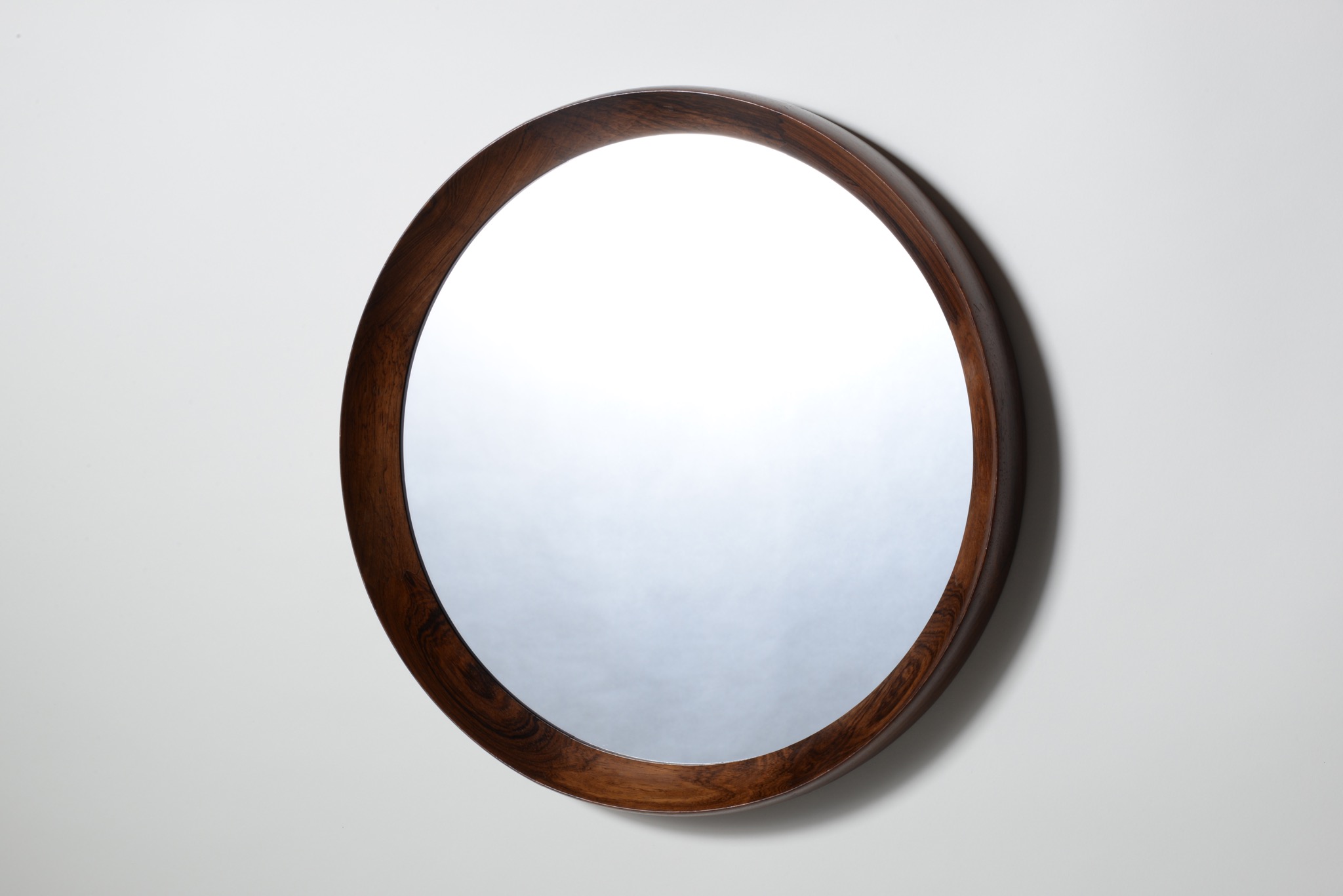 デンマークの家具工房で1960年代頃に作られた壁掛け用ミラーです。詳しいことはわかっておりませんが、フレームは無垢のローズウッド材を組み合わせて作られており、とても丁寧な仕事のものです。フレームに目立たぬ程度の小傷などございますので、詳しくはお問い合わせください。