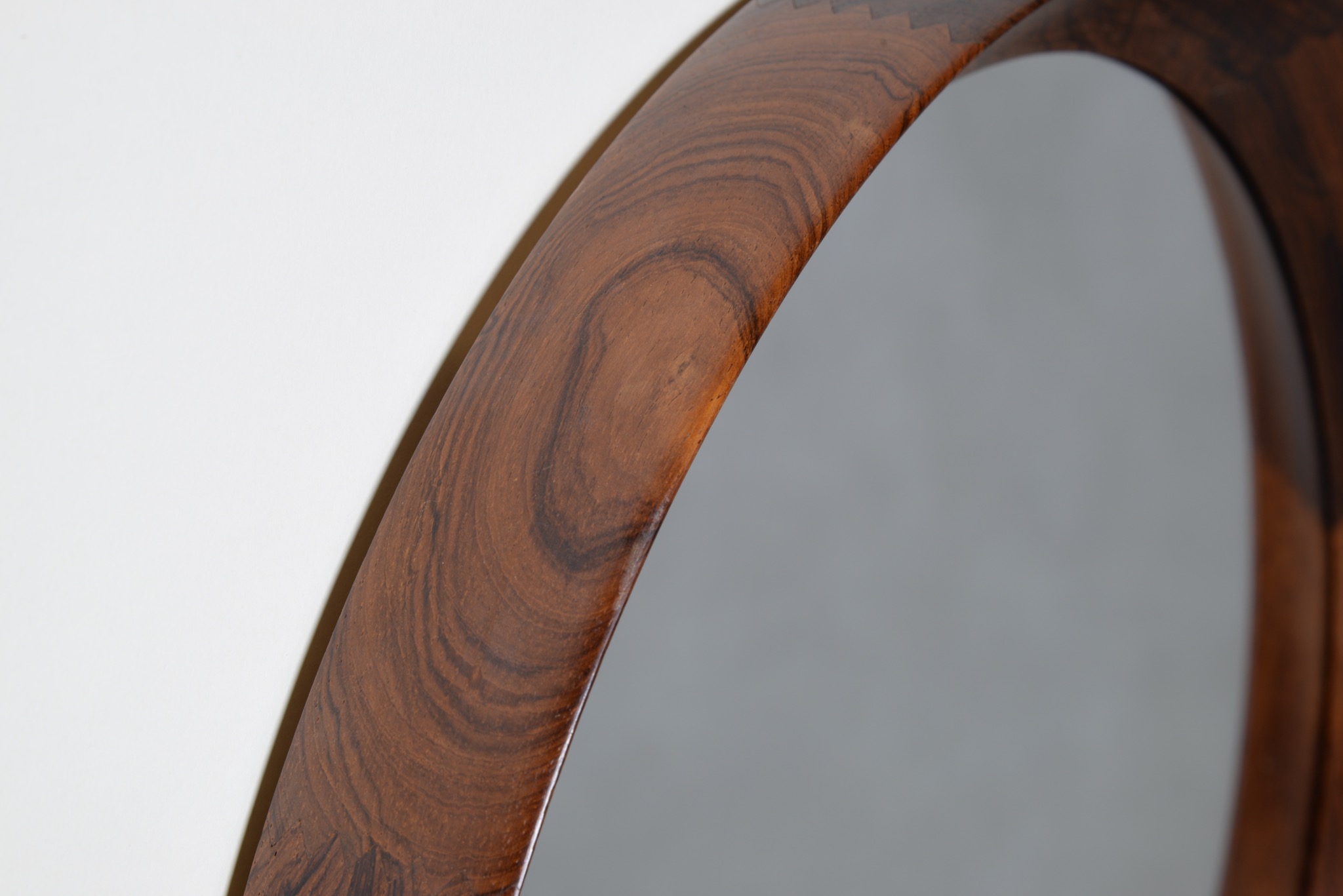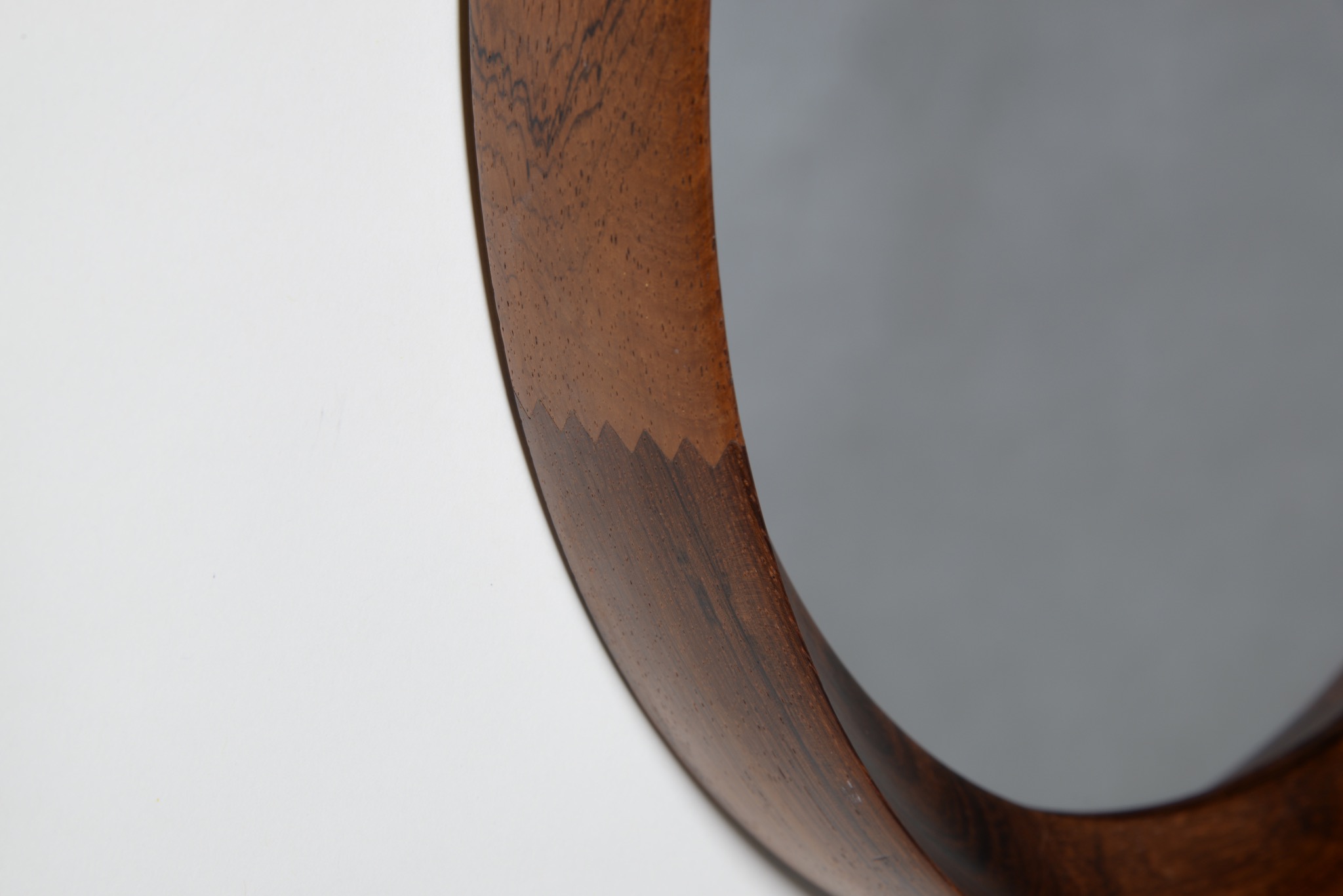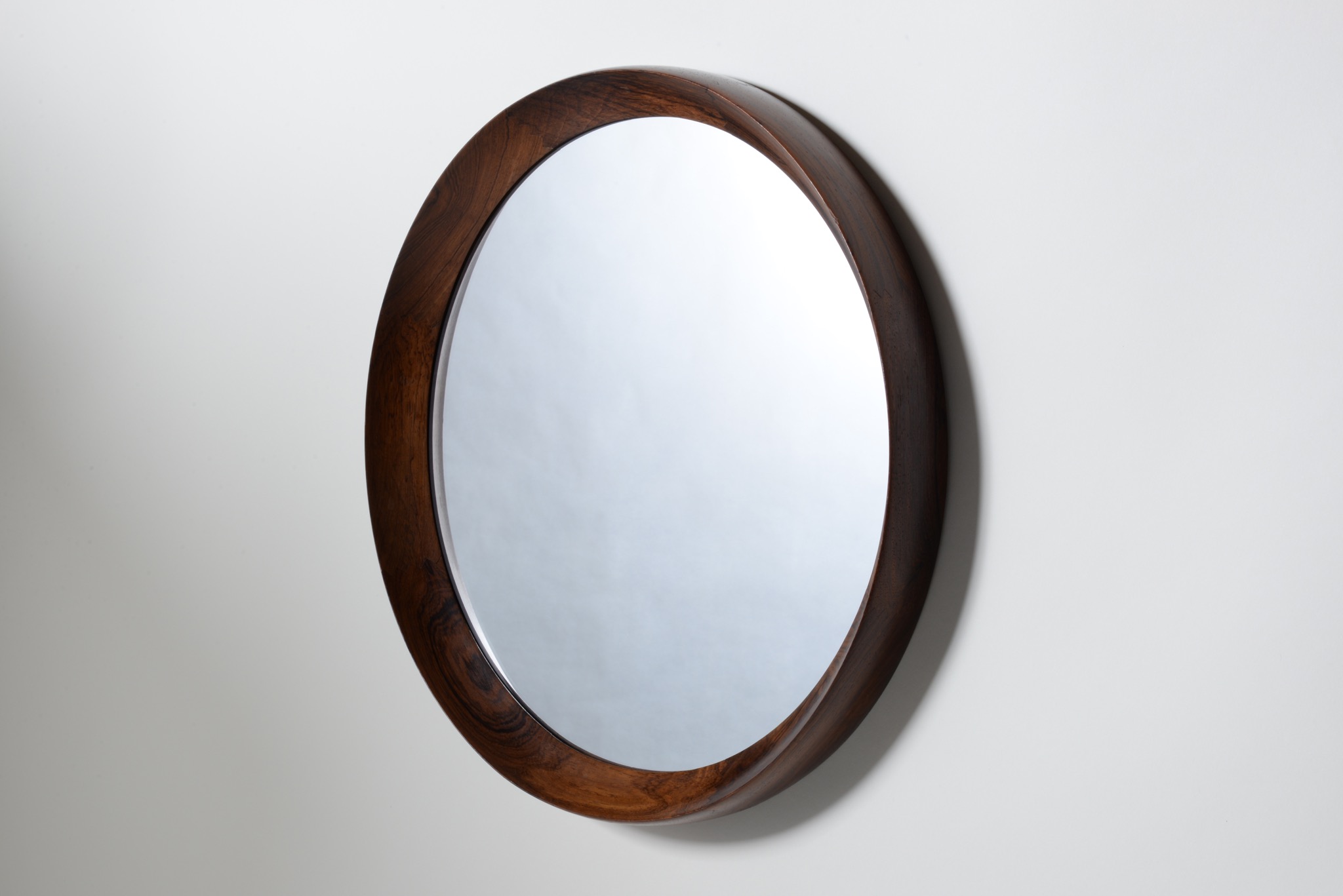 デンマークの家具工房で1960年代頃に作られた壁掛け用ミラーです。詳しいことはわかっておりませんが、フレームは無垢のローズウッド材を組み合わせて作られており、とても丁寧な仕事のものです。フレームに目立たぬ程度の小傷などございますので、詳しくはお問い合わせください。