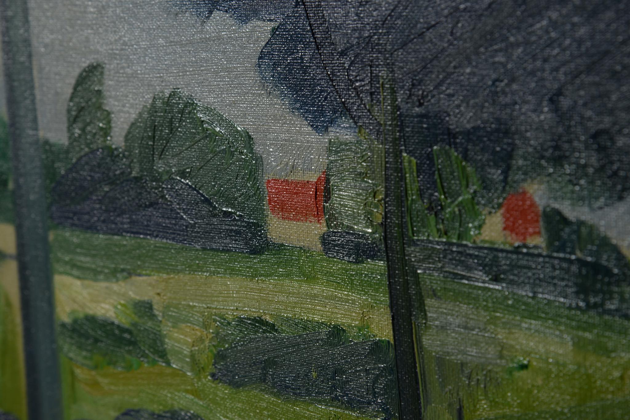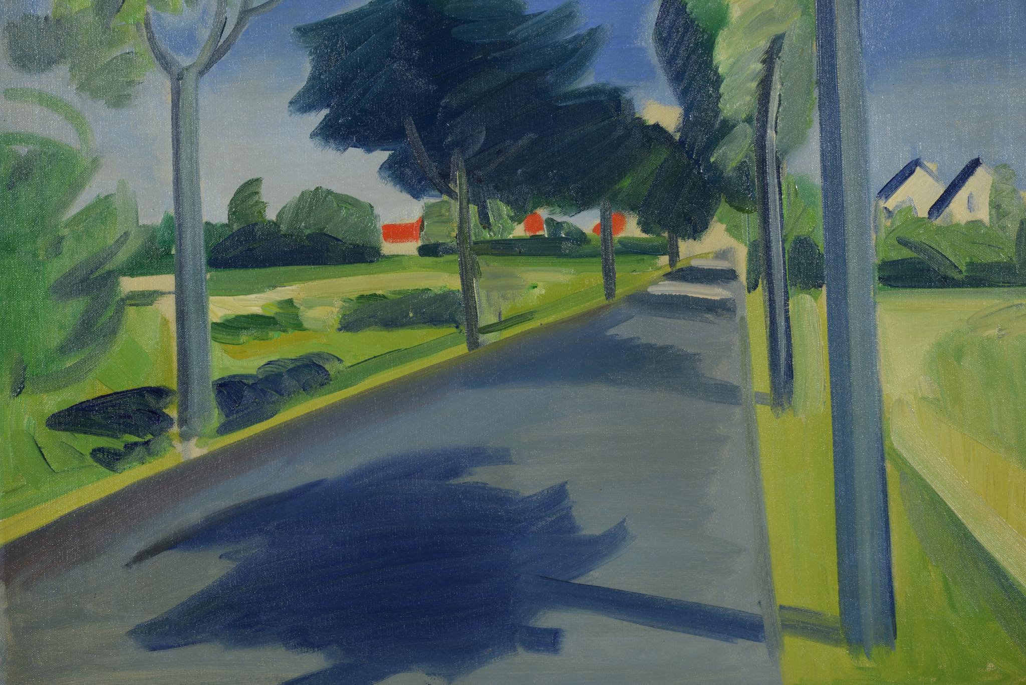 戦前〜戦後頃にかけて活躍したデンマークの画家、Axel Bentzen/アクセル・ベンツェンによる風景画油彩作品です。爽やかな季節の街道が描かれています。額はオリジナルで、額に小傷や補修などが見られますが、鑑賞の妨げにはならない程度です。