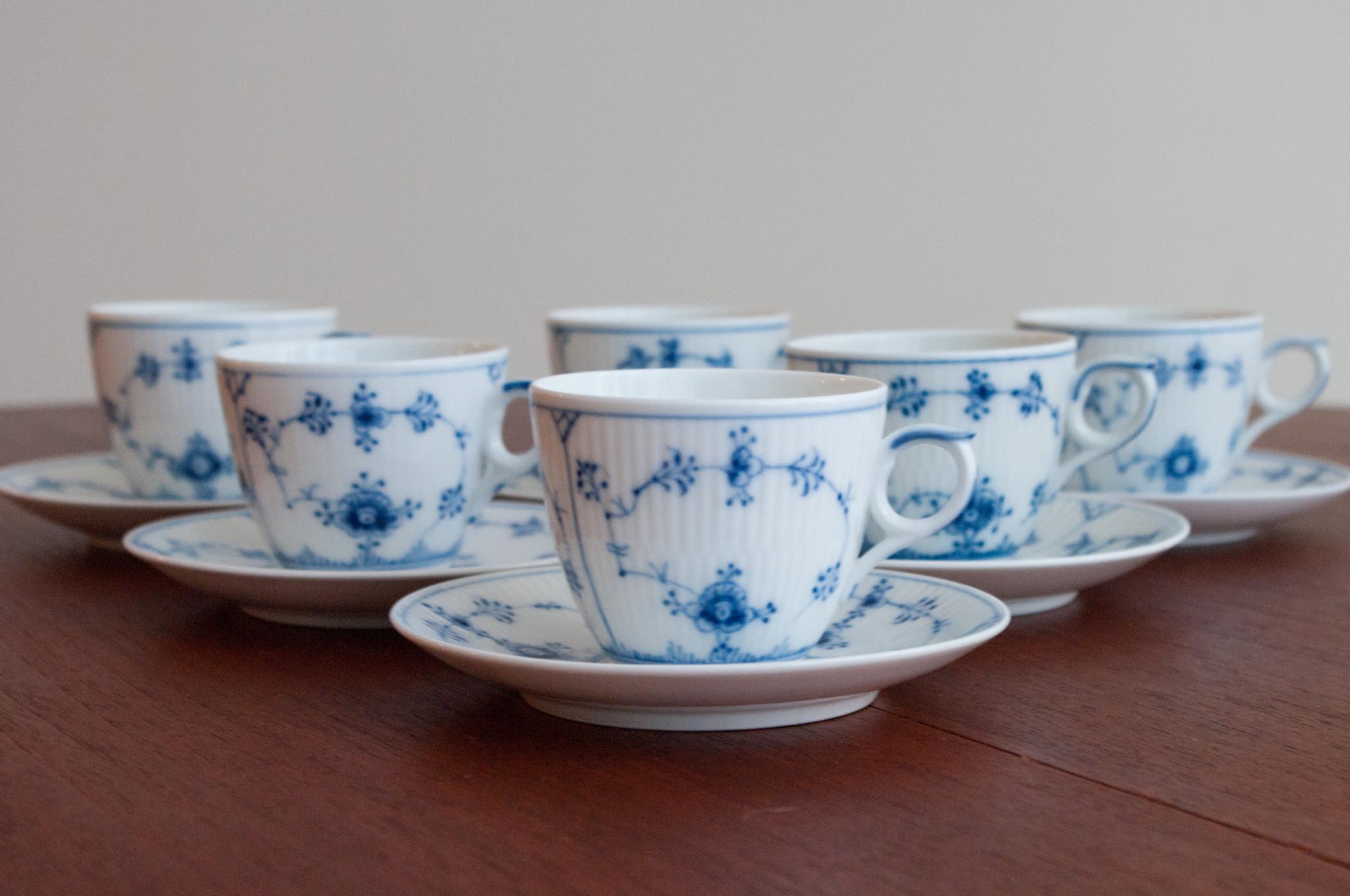 Royal Copenhagen/ロイヤル・コペンハーゲン窯、Blue fluted/ブルーフルーテッドシリーズ、Plain/プレインのカップアンドソーサー"No.2162" です。前掲の"No.80"よりひと回り大きさなサイズのものです。製造年は品物によって異なりますが、1960年代頃につくられたものでしょう。ソーサーとカップで年号が合わないものがありますので、前オーナーさんがどちらか割ってしまって買い足して、セットとして使っていたのでしょう。