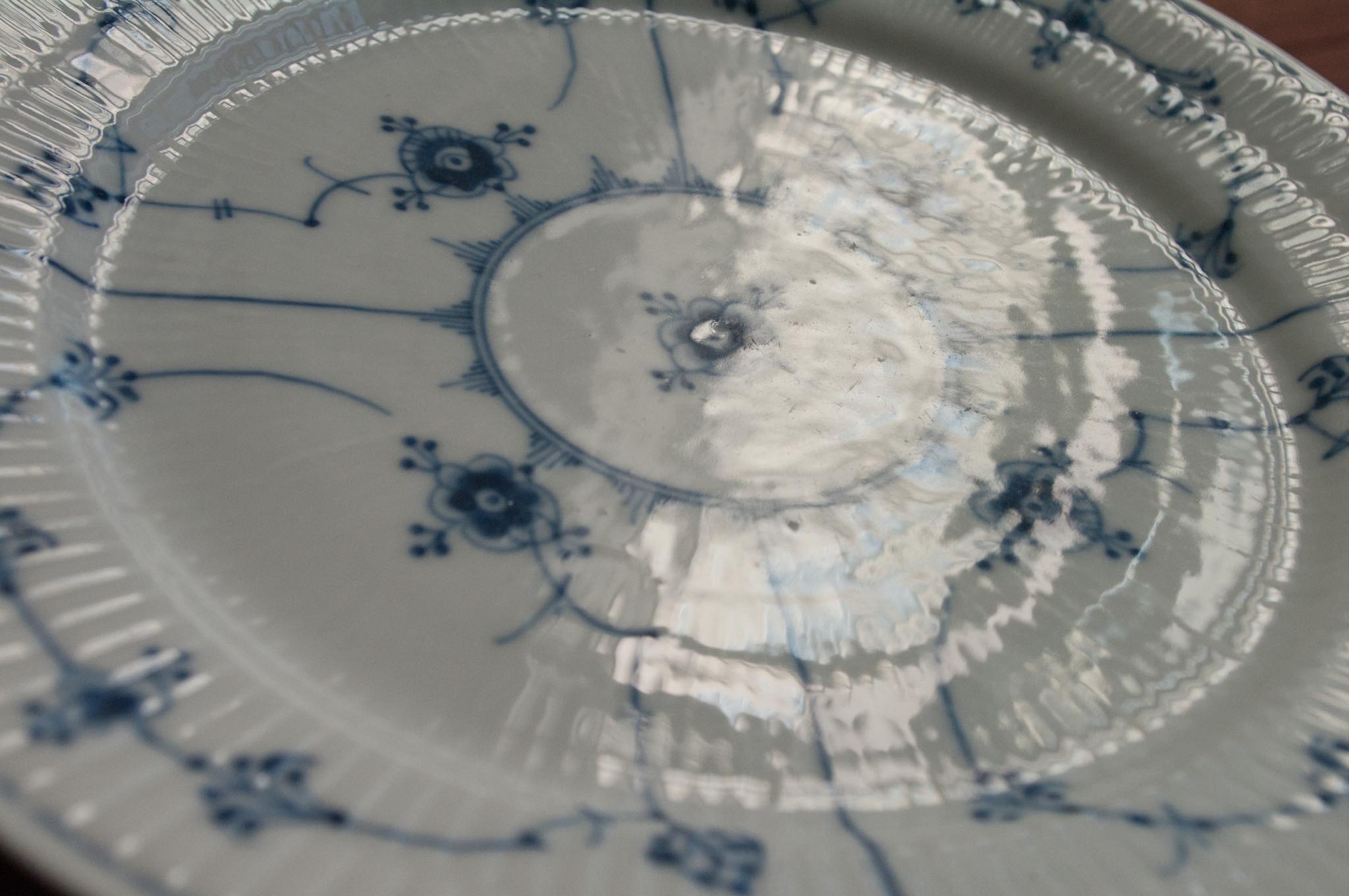 Royal Copenhagen/ロイヤル・コペンハーゲン窯、Blue fluted/ブルーフルーテッドシリーズ、Plain/プレインの平皿(1)ランチプレートです。およそ100年ほど前に焼成されたもので、きれいに焼けています。