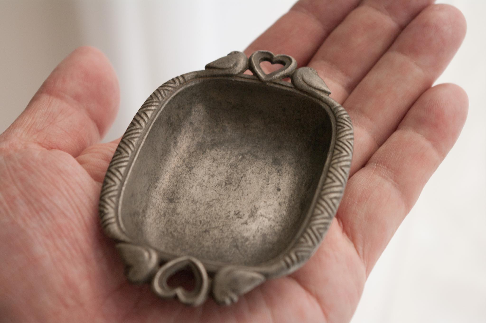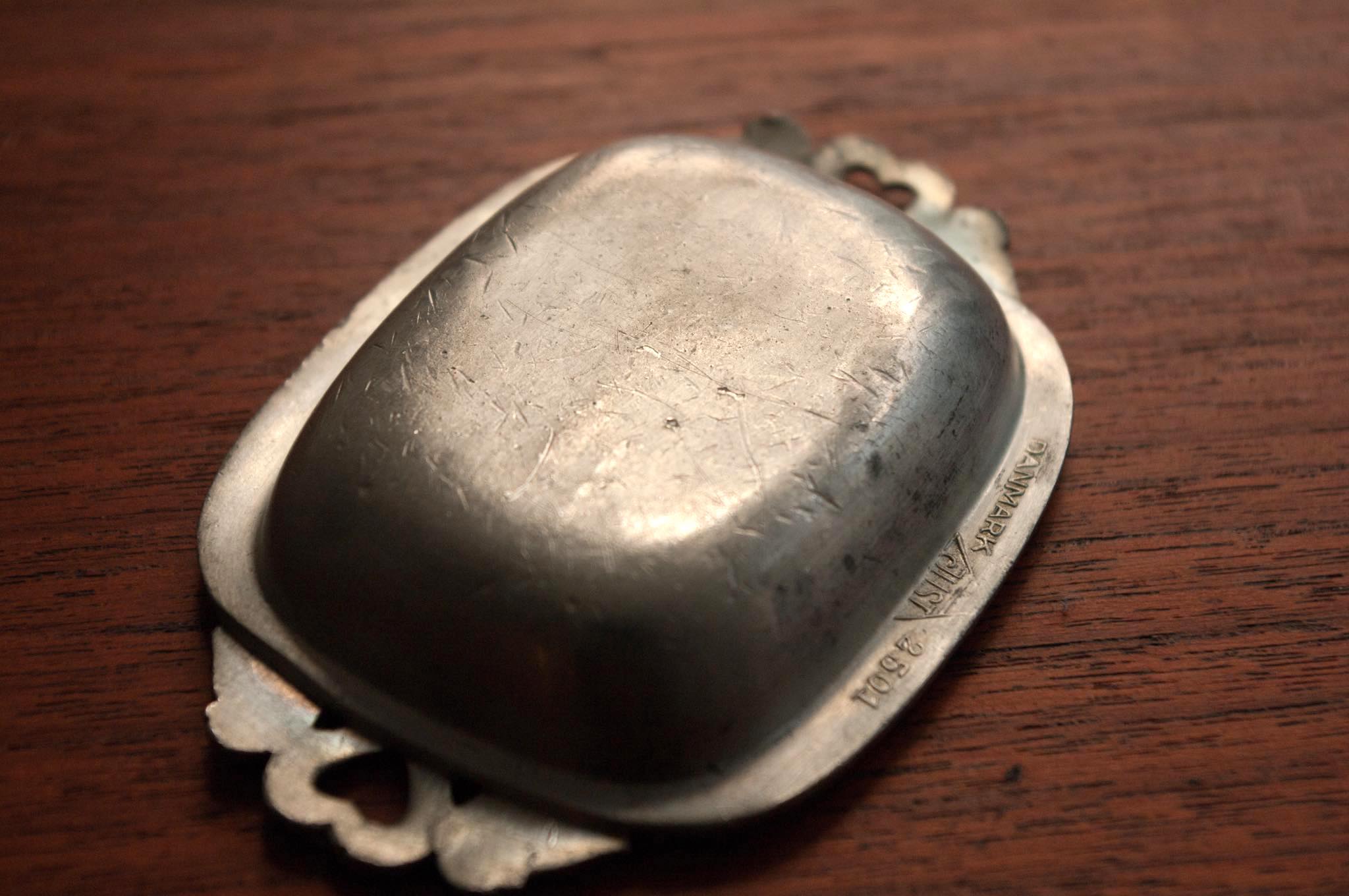 デンマークの金工家、ユスト・アナセンによる錫のスモールボウル。手のひらサイズで、「耳」に施されたハートの透かしが微笑ましい作品です。 Just Andersen/ユスト・アナセン 1884-1943