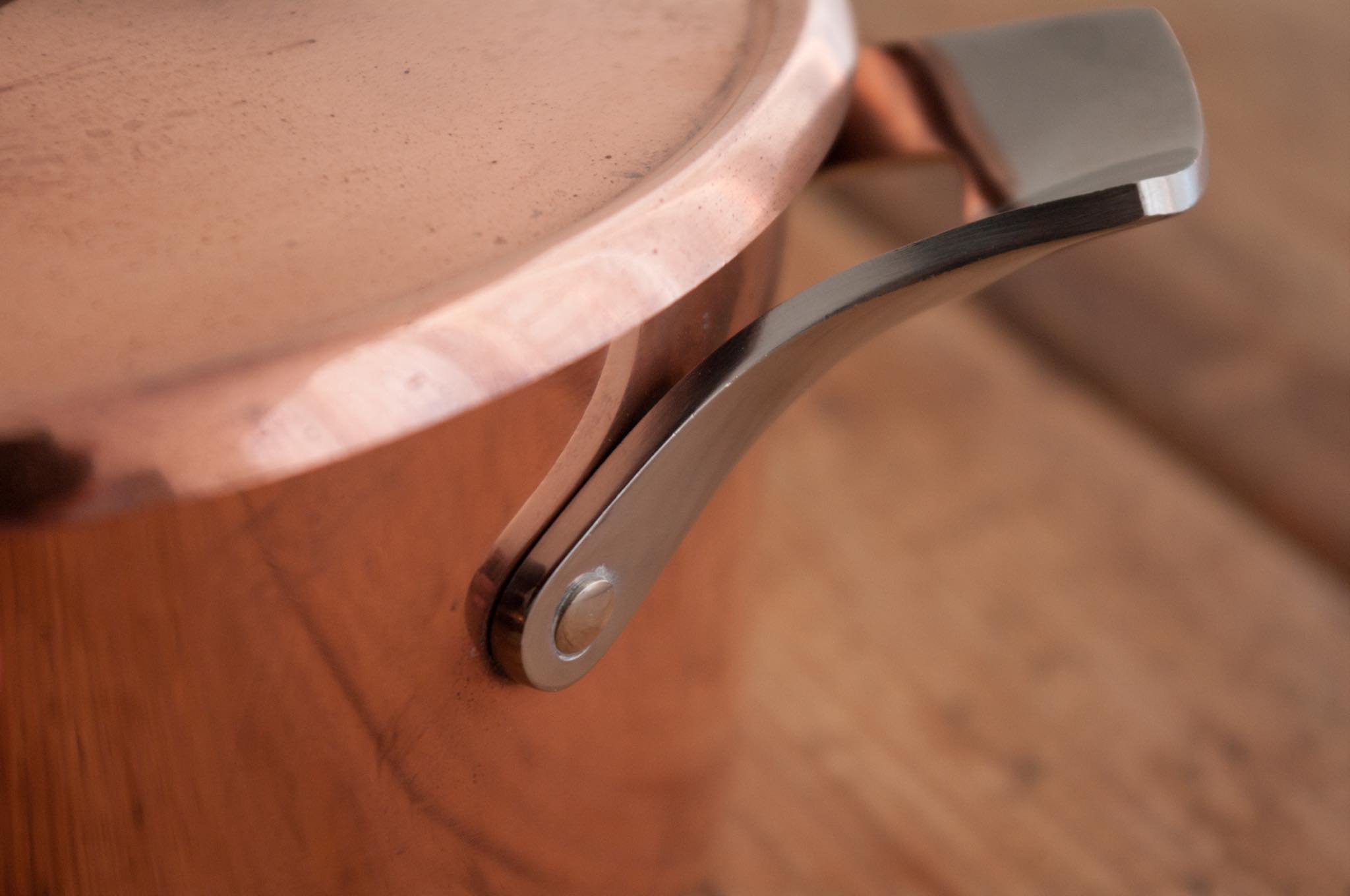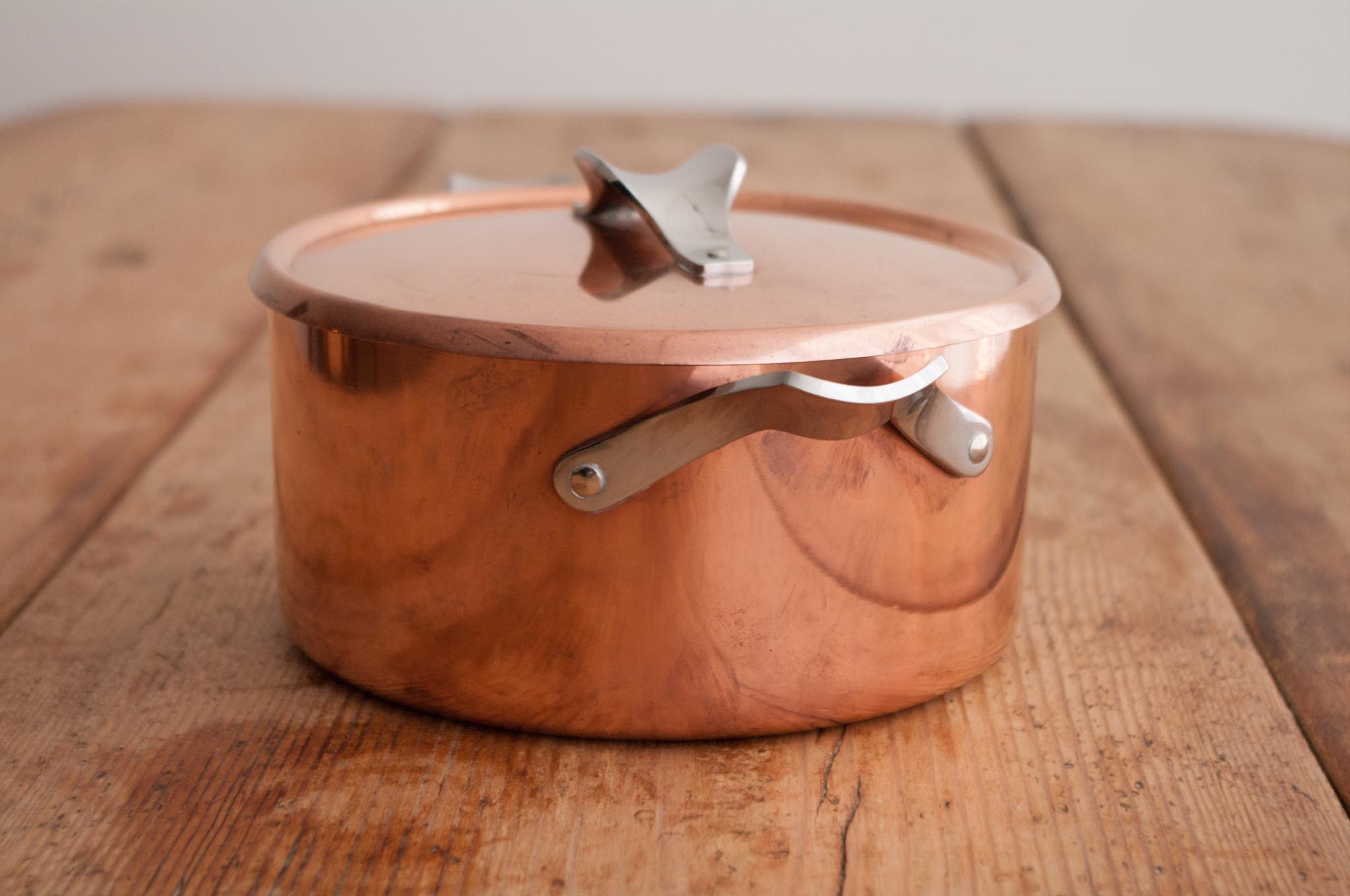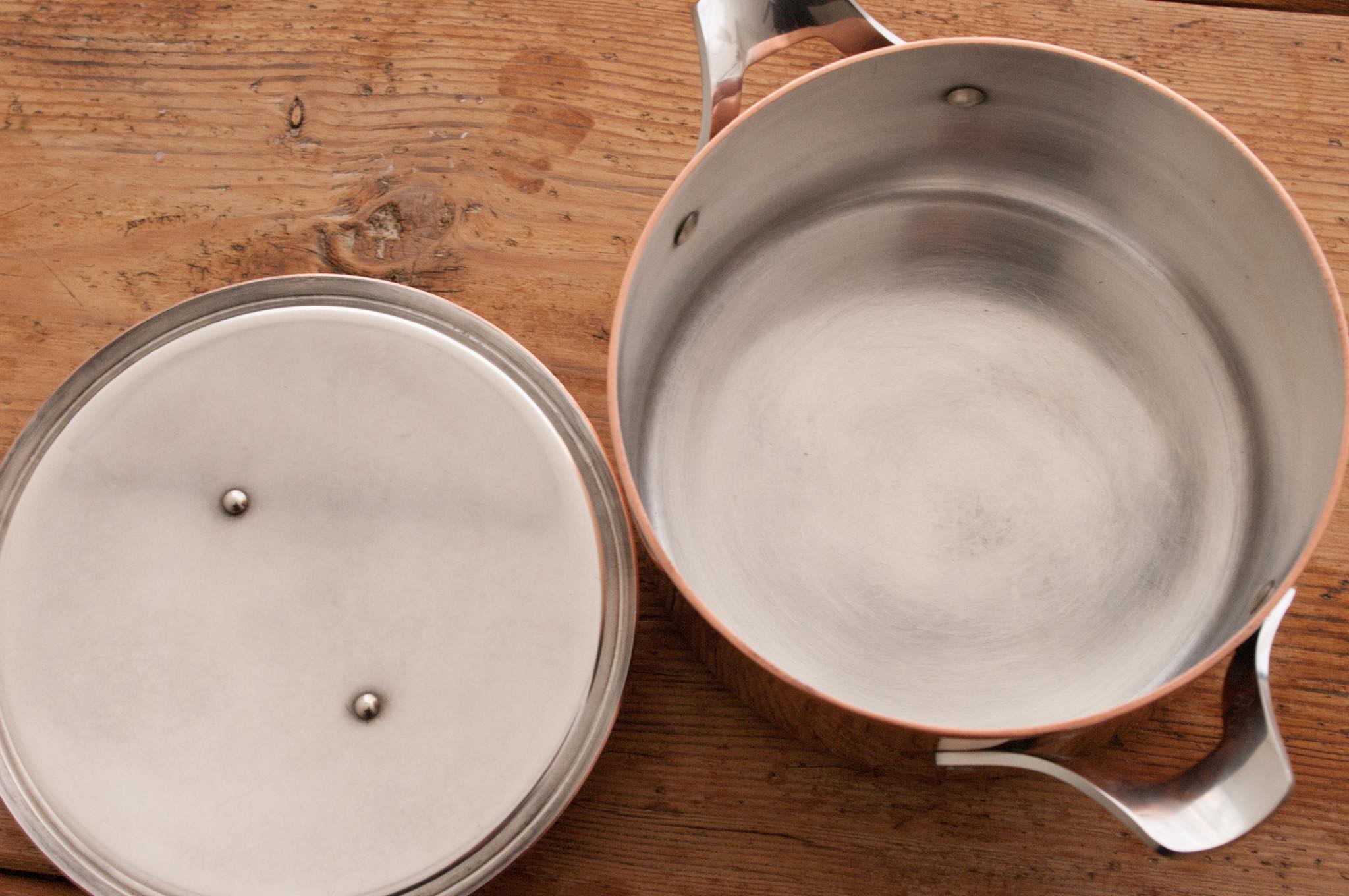 デンマークを代表するシルバースミスのGeorg Jensen/ジョージ・ジェンセンによる「Taverna」シリーズの蓋付き鍋、小ぶりなサイズです。1946年よりジョージ・ジェンセンのプロダクトを手掛けたデザイナー、Henning Koppel/ヘニング・コッペルによるデザインで、持ち手にステンレス、鍋部分には熱伝導に優れた銅が用いられています。重量はありますが、銅鍋の佇まいは格別です。