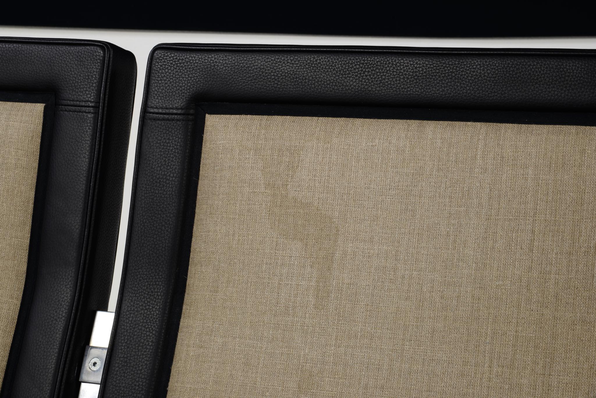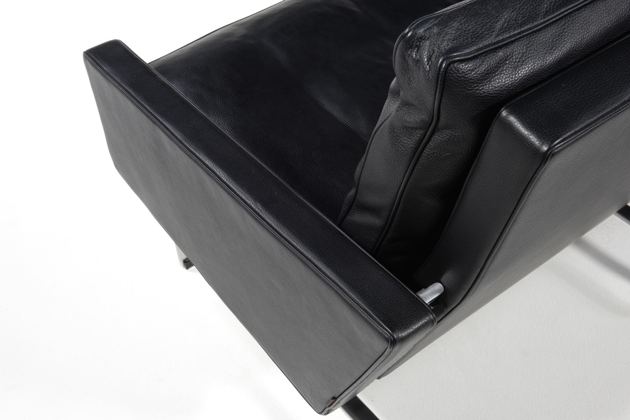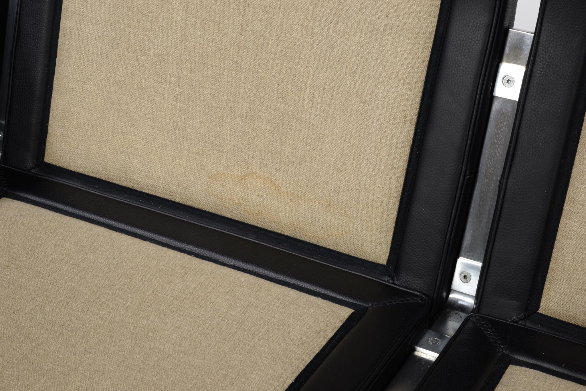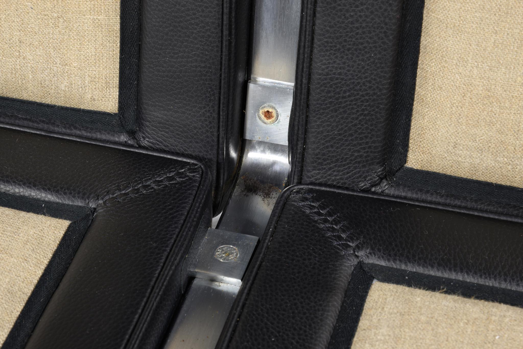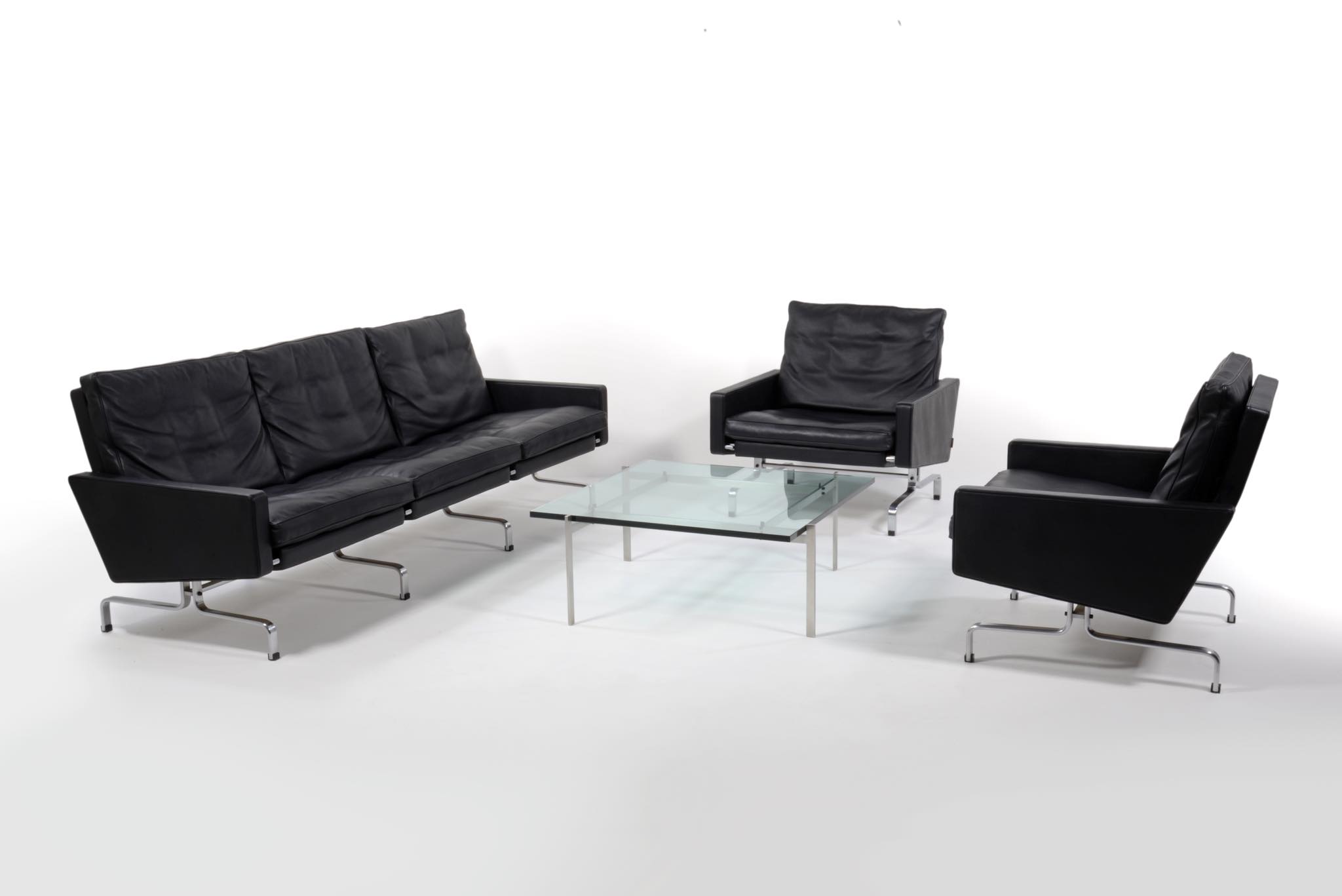 Poul Kjærholm/ポール・ケアホルムによる "PK31" ソファです。Fritz Hansen社によって2011年に作られたものですが、使用頻度はそれほど多くはなかったようです。皮革は黒色のレザー、SØRENSEN leather社の"CLASSIC" が張られています。コンディションにつきまして、本体座面と背もたれのリネン部分に染みが見られます。また、クッション下のスチール部分に若干の錆が見られます。全体にとても綺麗な状態です。