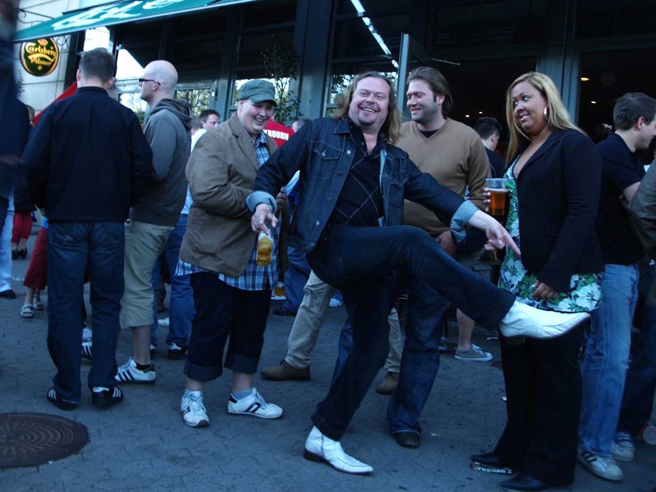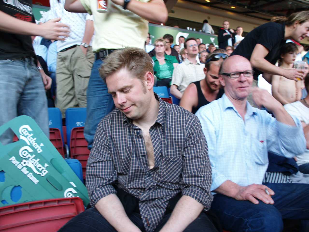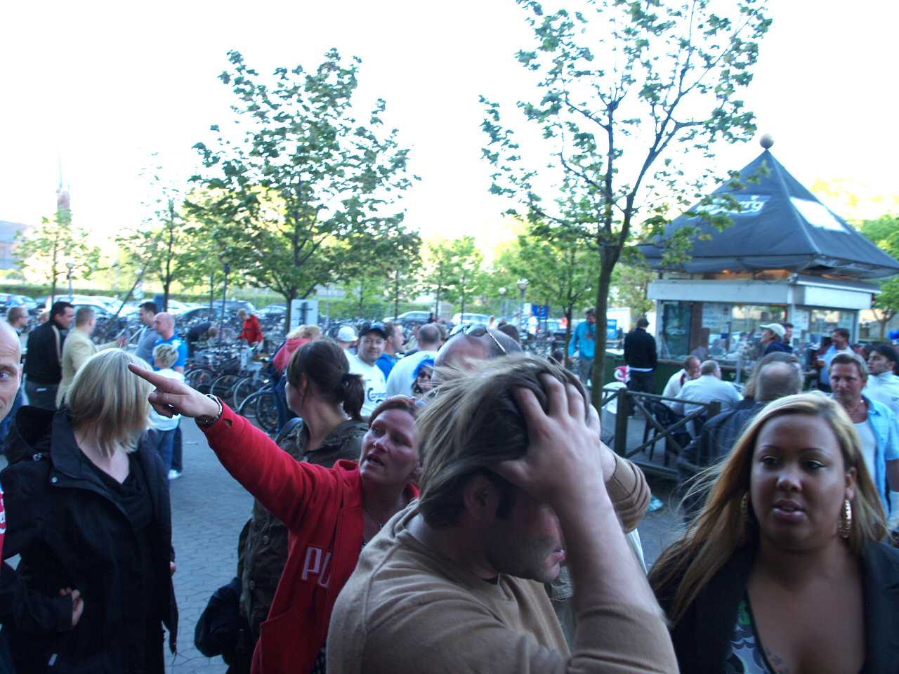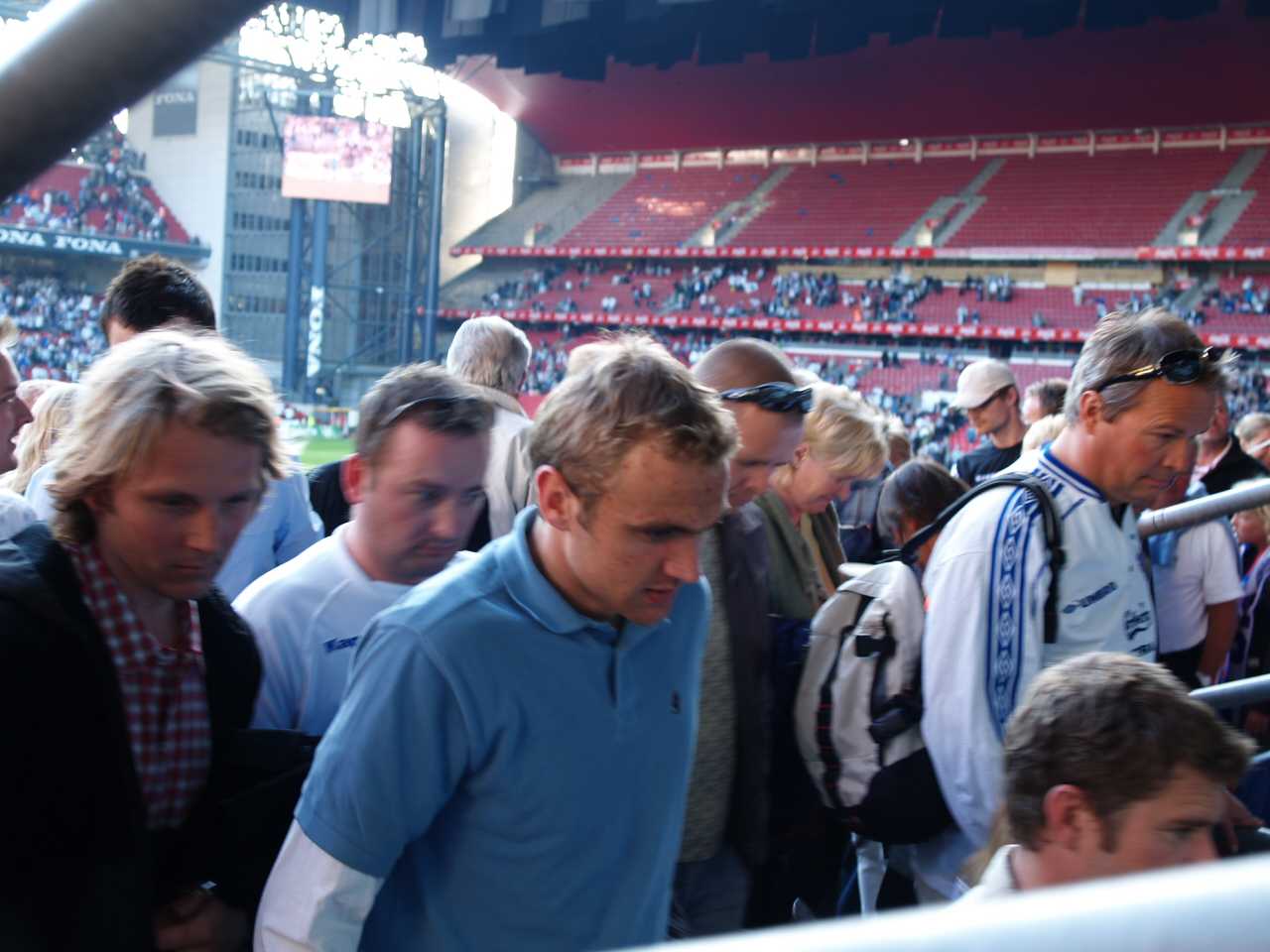 この日はアンティークディーラーのクリスチャン達に誘われて、F.C.コペンハーゲンvsオールボーBKのリーグ戦を観戦しました。コペンハーゲンの人達は地元F.C.Kを応援、ストライカーがボールを蹴り見事先制点を決めると会場は一気に盛り上がります。がしかし、やがて同点に追いつかれ、とうとう逆転されると観衆の表情からは笑顔が消え、盛り上がりは沈黙へと変わり、結果ロスゲームとなった暁には落胆の表情がはっきりと見て取れるほどでした。スタンドを後にし帰路に就く観衆は誰も笑っていません。笑っていたのはこの日のために買ったばかりの白い革靴を履いてきたアンティークディーラーのモーテン氏だけでした。観衆は場外のBARへなだれ込み、応援歌を歌い、ヤケ酒をあおり、怒鳴り散らし、あちこちで喧嘩が勃発し、酔いつぶれ、やがて夜も更けました。