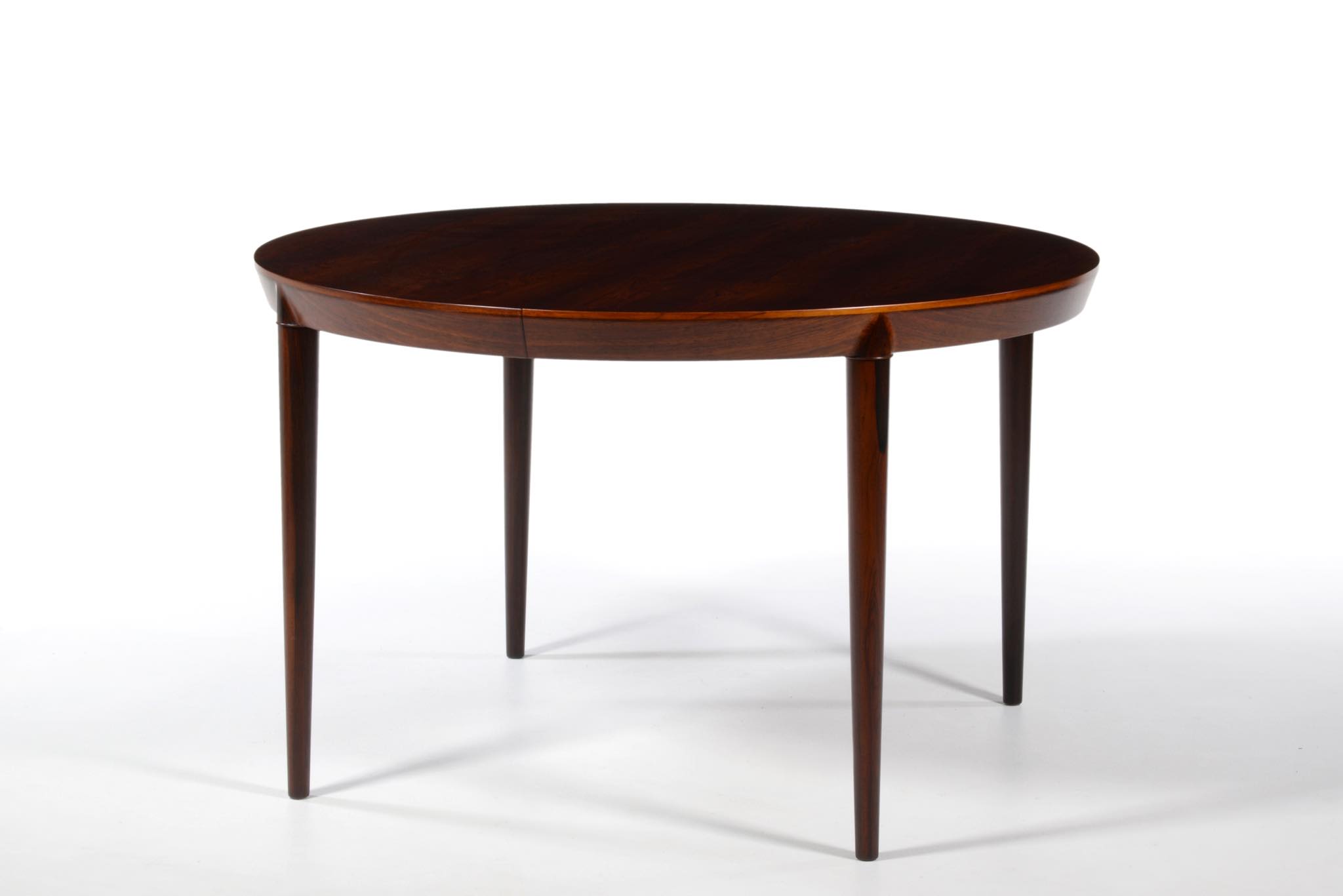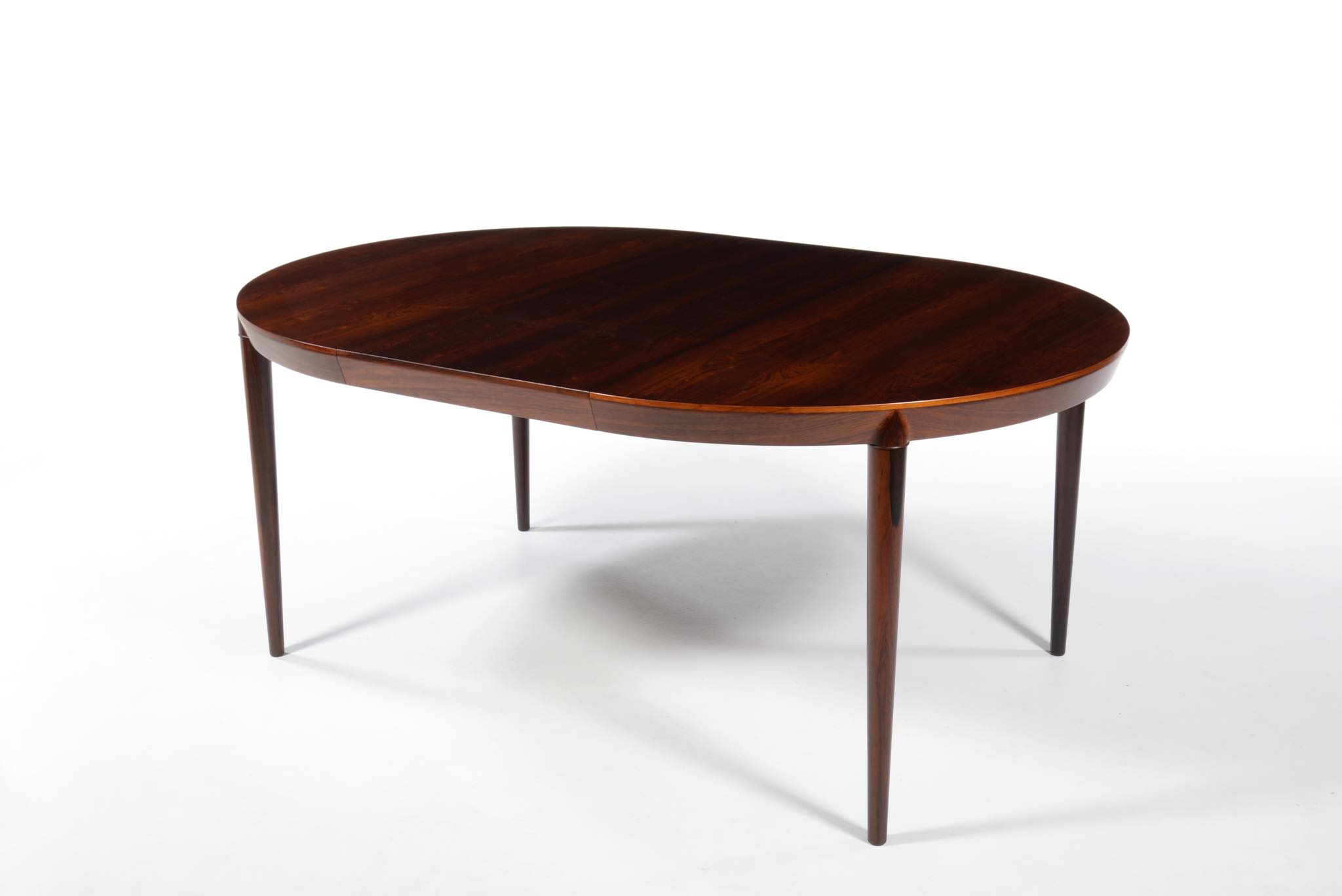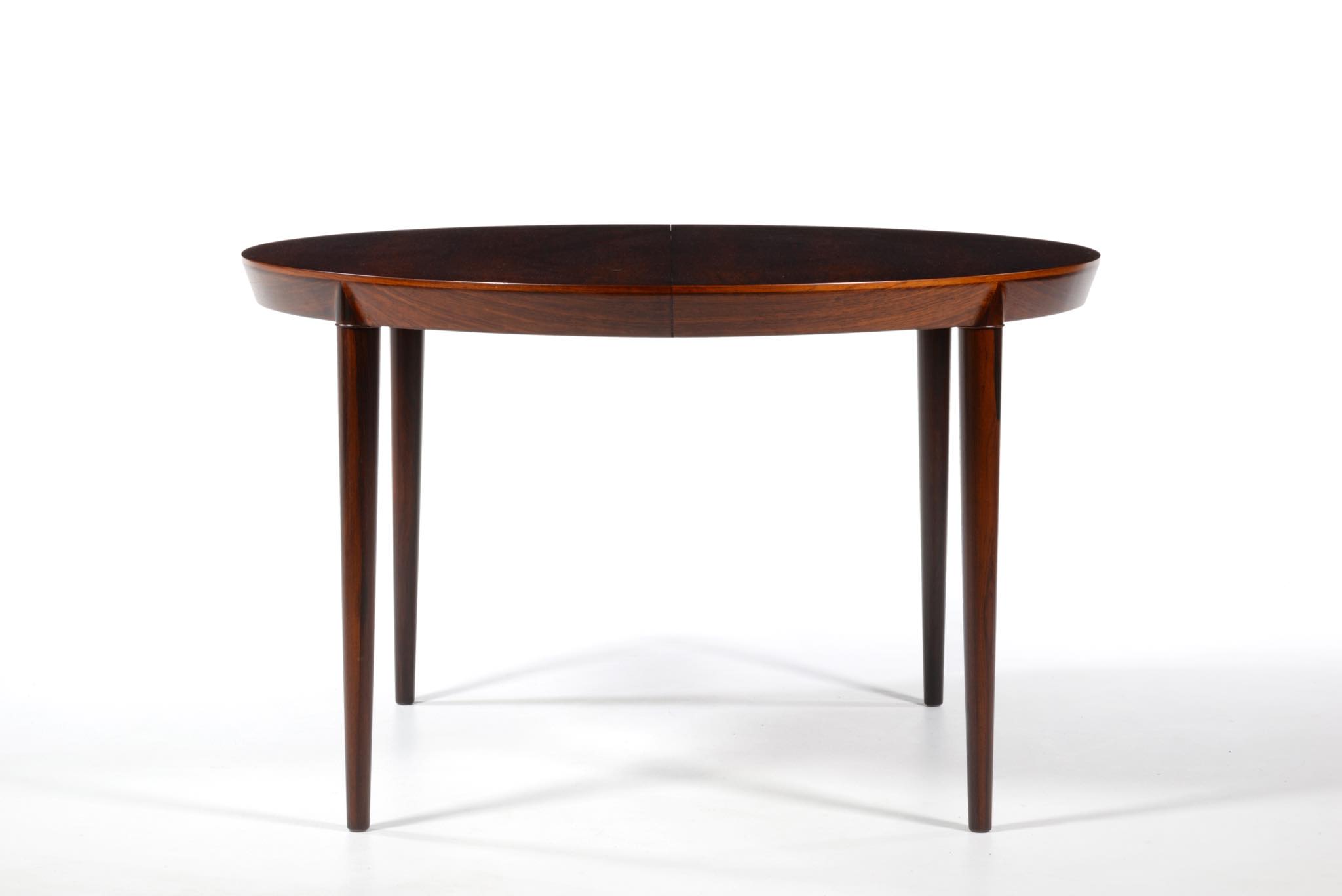 デンマークの家具デザイナー、Erik Riisager Hansen/エリック・リサガー・ハンセンによるダイニングテーブルです。天板と脚との接合に特徴のあるモデルで、工芸的であり、線の細い佇まいに定評があります。素材はブラジル原産と思しきローズウッド材が用いられており、エクステンションリーフは一枚付属します。コンディションは良好です。
